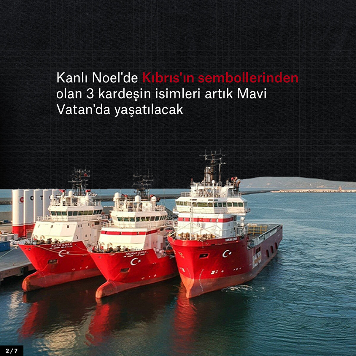 Kanlı Noel'de Kıbrıs'ın sembollerinden olan 3 kardeşin isimleri artık Mavi Vatan'da yaşatılacak. Doğu Akdeniz'de görevine başlayan Abdülhamid Han sondaj gemisine destek olacak gemilere Kıbrıs'ta şehit edilen Tabip Binbaşı Nihat İlhan'ın