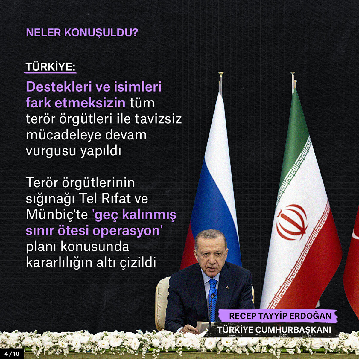 Astana Garantörleri Zirvesi'ne ev sahipliği yapan Tahran'da Türkiye-İran-Rusya ortak bildirisi yayınlandı. Peki, üçlü zirvede neler konuşuldu?