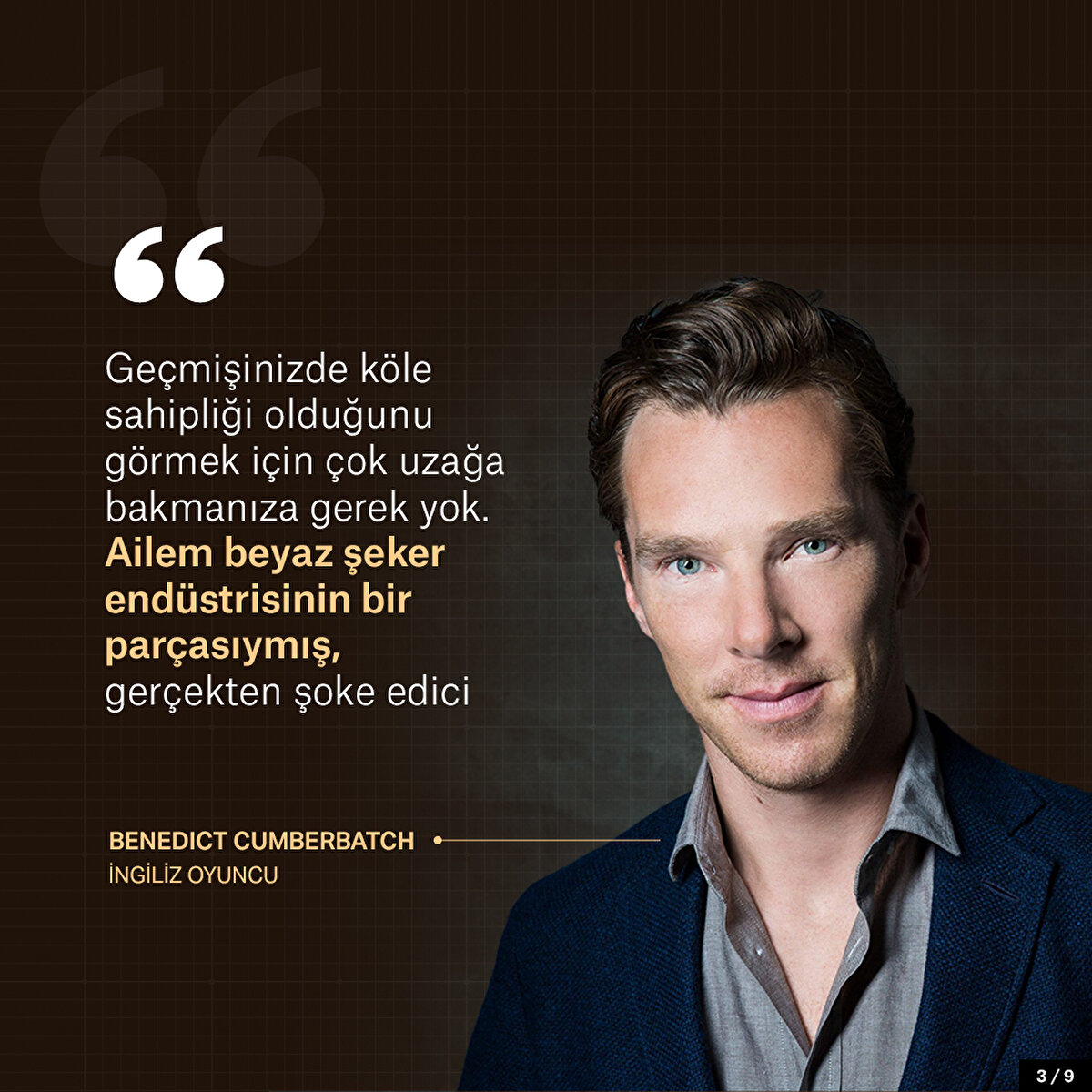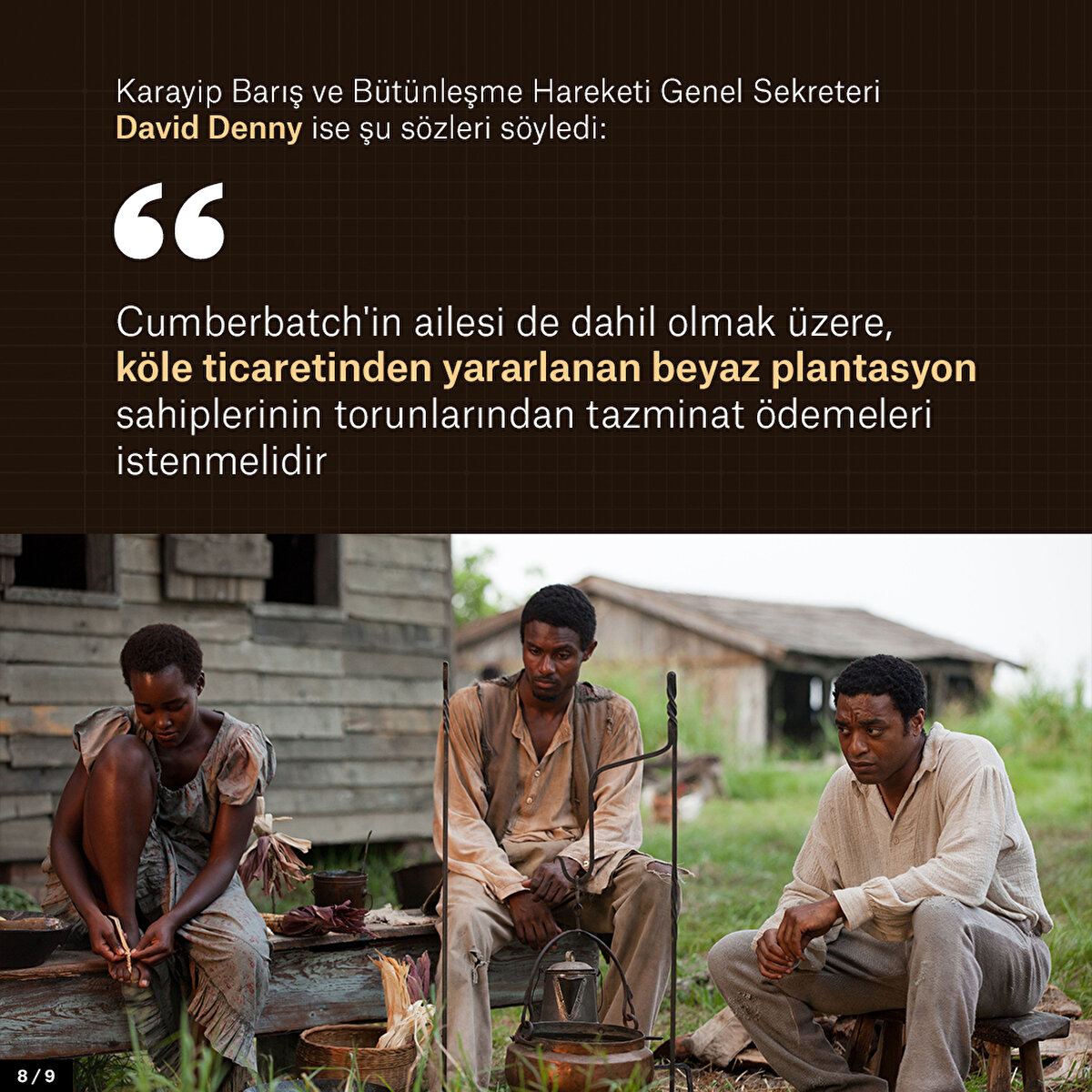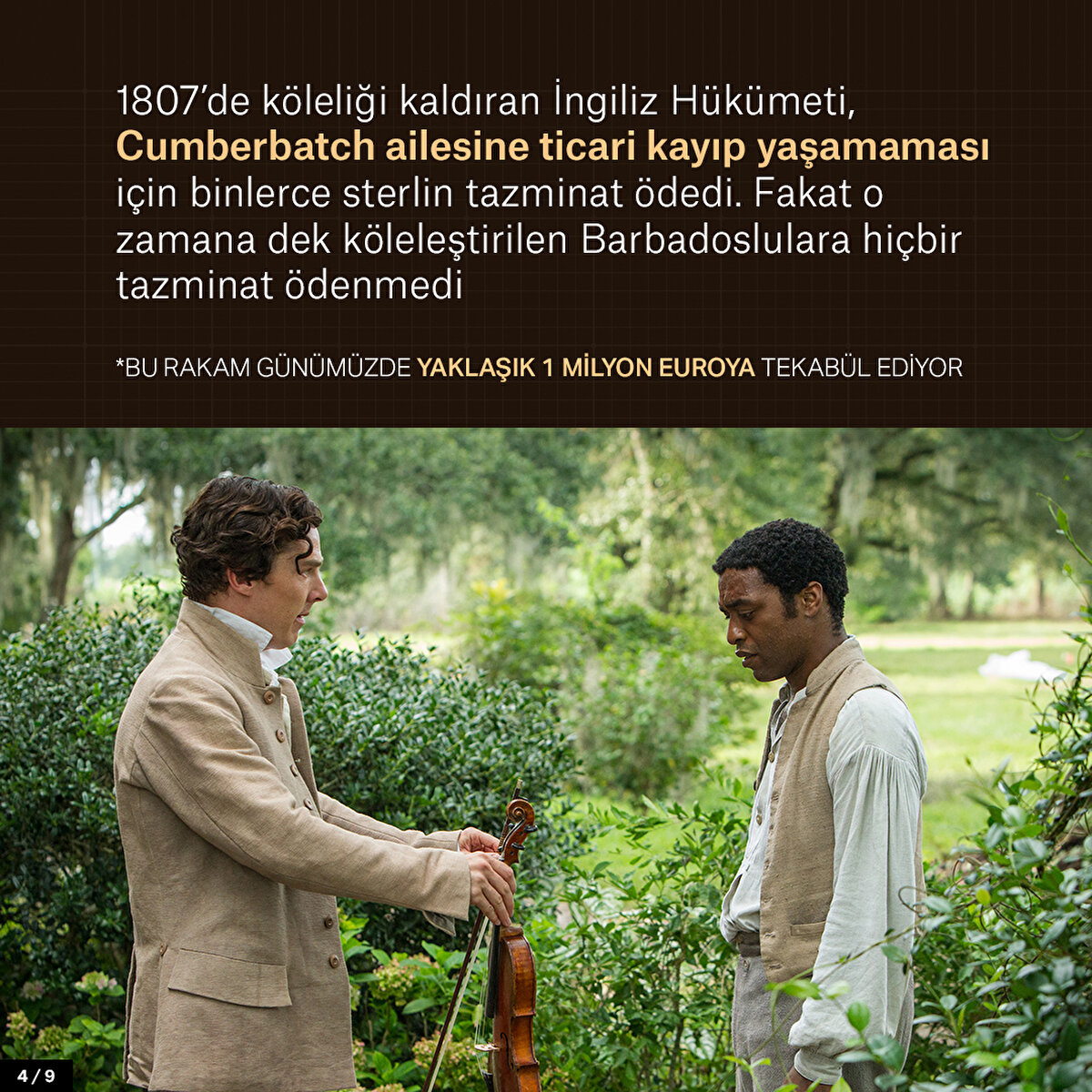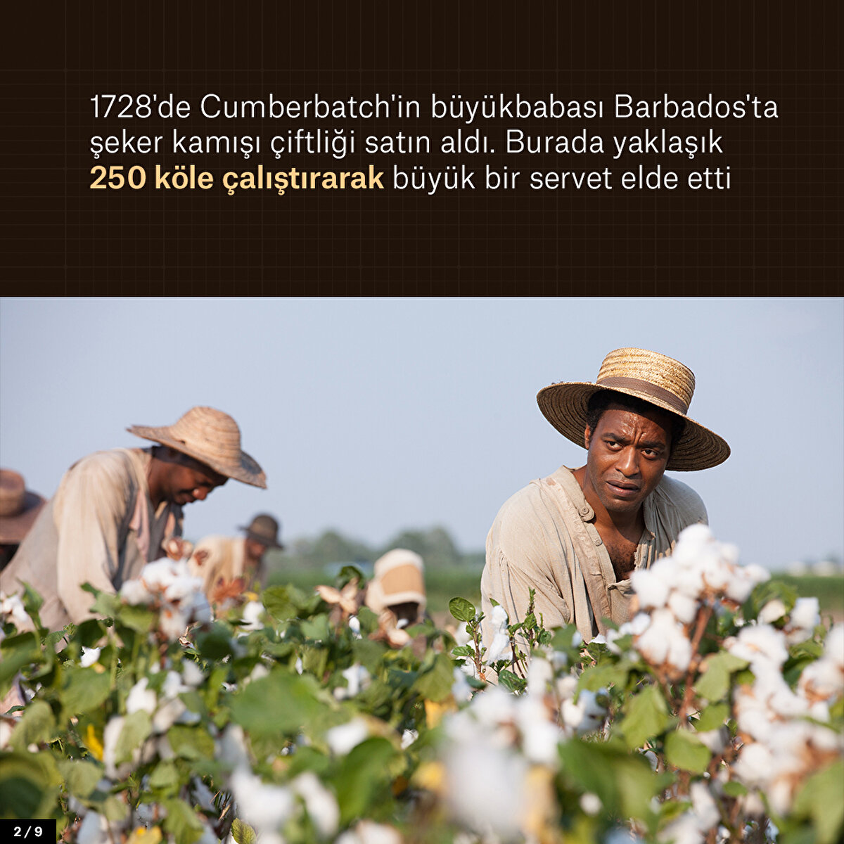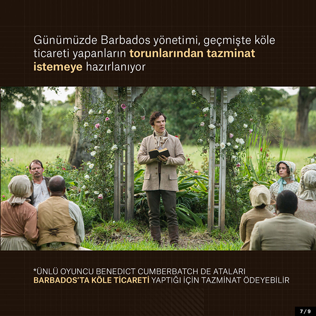 İngiliz oyuncu Benedict Cumberbatch'in atalarından büyükbabası satın aldığı şeker kamışı çiftliğinde 250 köle çalıştırdı. Köleliğin kaldırılmasıyla aileye hükümet tarafından tazminat ödenince zenginlikleri daha da arttı. Barbados yönetimi ise günümüzde ise Cumberbatch'in ailesinden tazminat istemeye hazırlanıyor