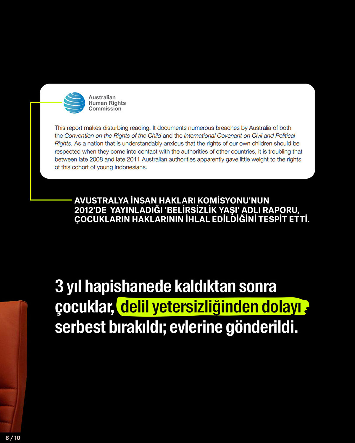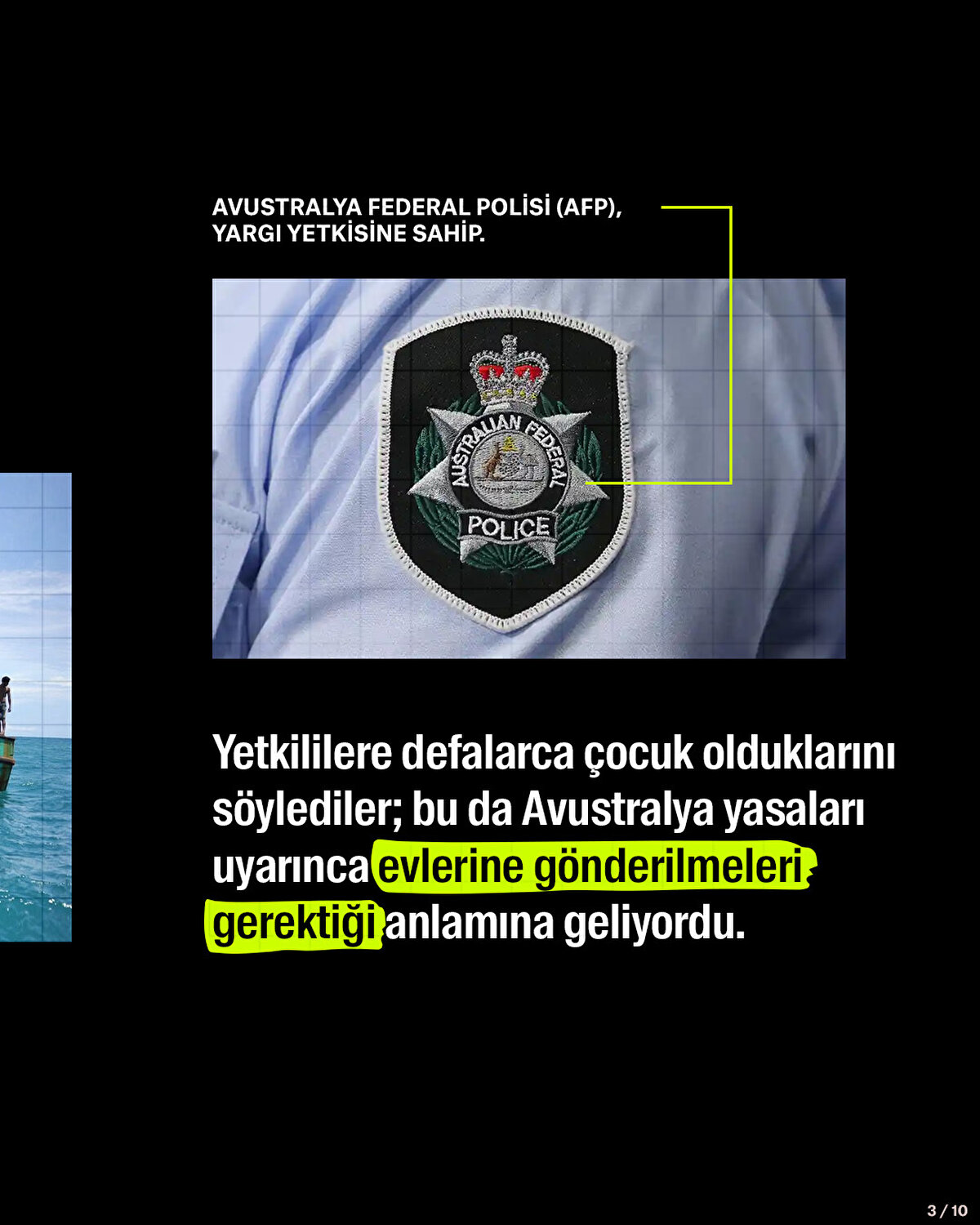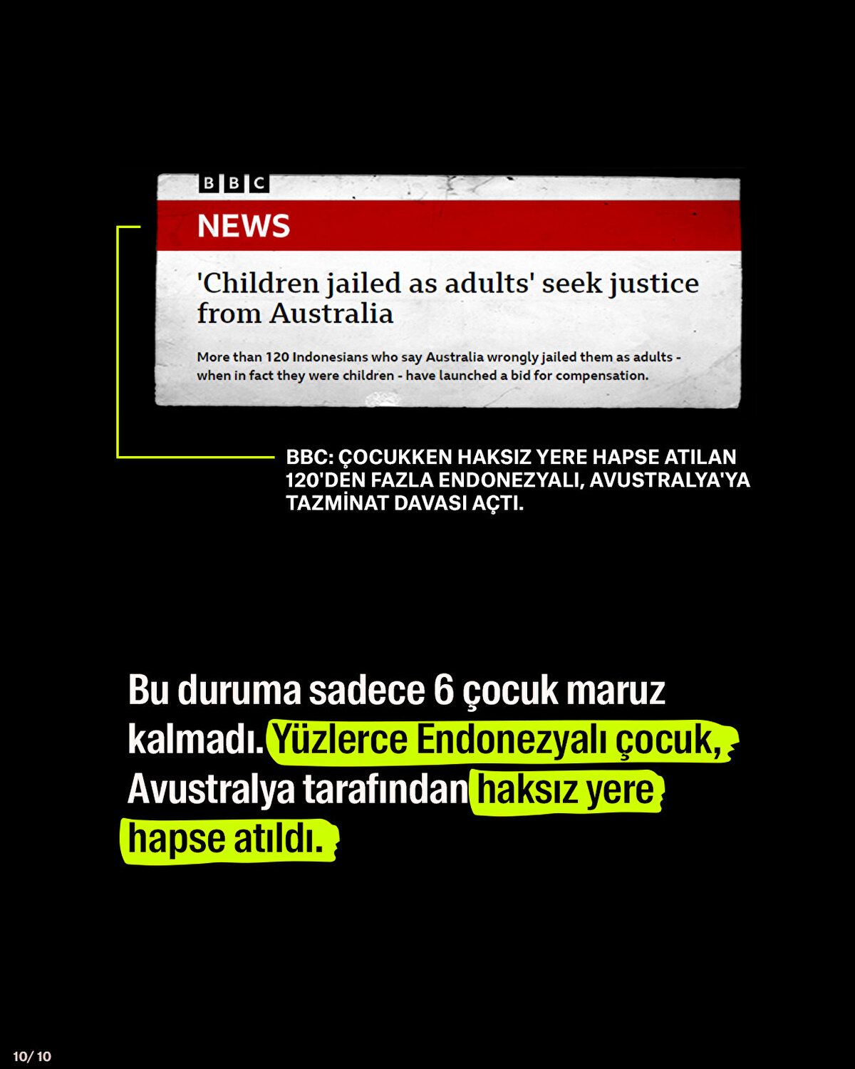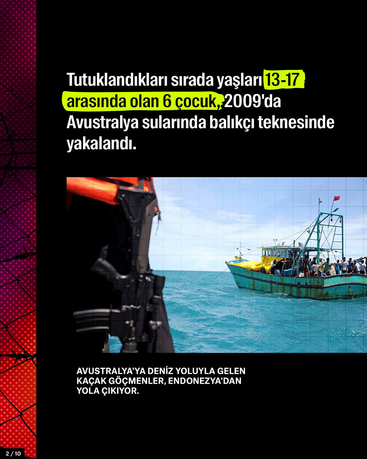 Tutuklandıkları sırada yaşları 13-17 arasında olan 6 çocuk, 2009'da Avustralya sularında balıkçı teknesinde yakalandı. 13 yıl sonra mahkeme, çocuklar hakkındaki tüm suçlamaları düşürdü; 'büyük bir adaletsizlik yaşandığını' tespit etti.