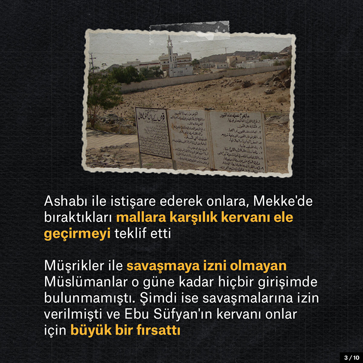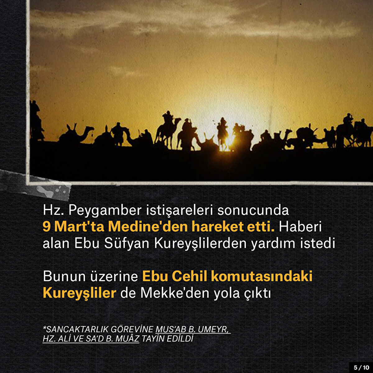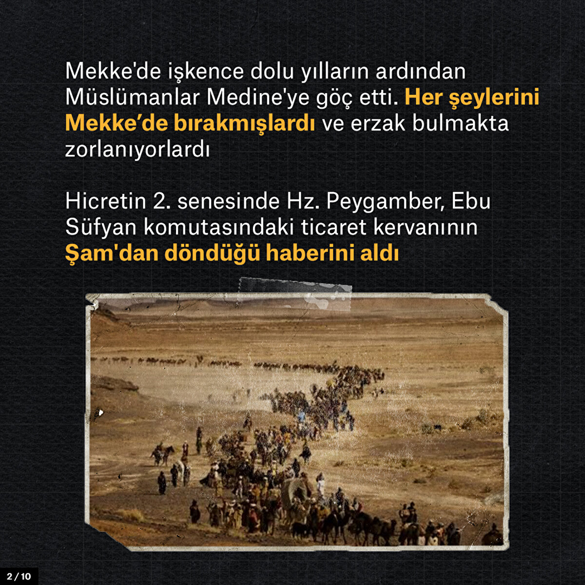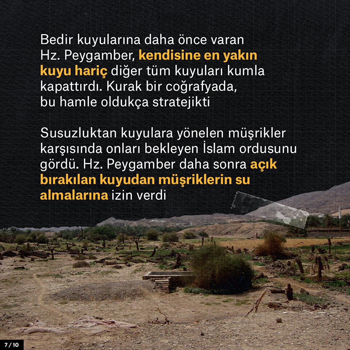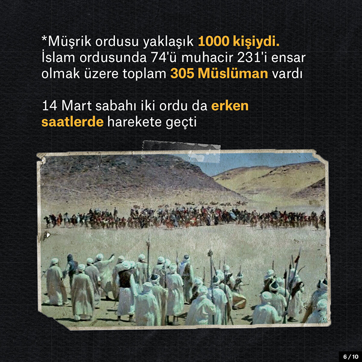 Medine'nin 160 km güneybatısında, Kızıldeniz sahiline 30 km uzaklıkta, Medine-Mekke yolunun Suriye kervan yoluyla birleştiği yerde bulunan küçük bir kasaba olan Bedir, bundan tam bin 398 yıl önce İslam ordusu ve Mekkeli müşriklerin savaşına şahit oldu. Mekke'de işkence gören Müslümanlar 622 yılında bütün her şeylerini bırakarak Medine'ye göç etti. Zulümden kurtulsalar da müşriklerin saldırı ve kışkırtmalarına zaman zaman maruz kalan Müslümanlar onlara büyük bir kızgınlık duyuyordu. 624 yılında Ebu Süfyan'ın başında olduğu kervansaray Şam'a girmişti ve bunu duyan Hz. Peygamber ashabı ile istişare edip savaş hazırlıklarına başladı. İslam ordusu kendisinden 3 kat fazla olan müşrikleri yenerek ilk zaferlerini kazandı.