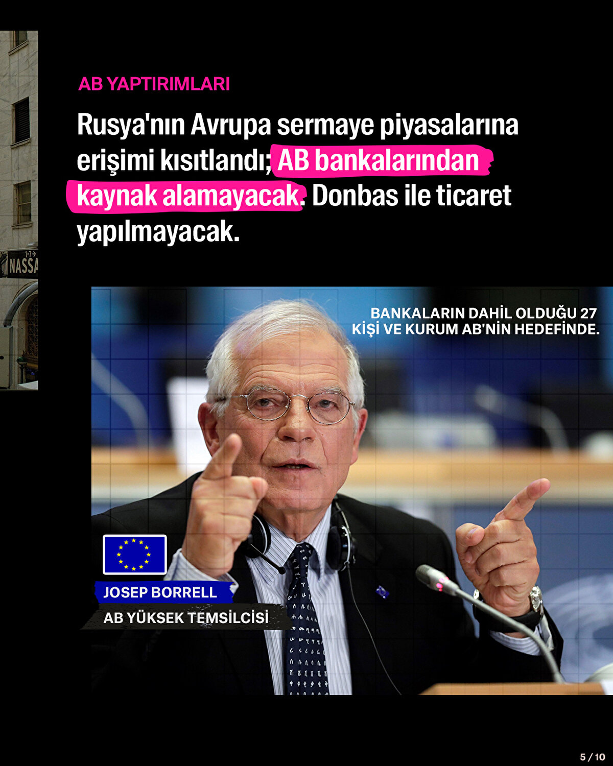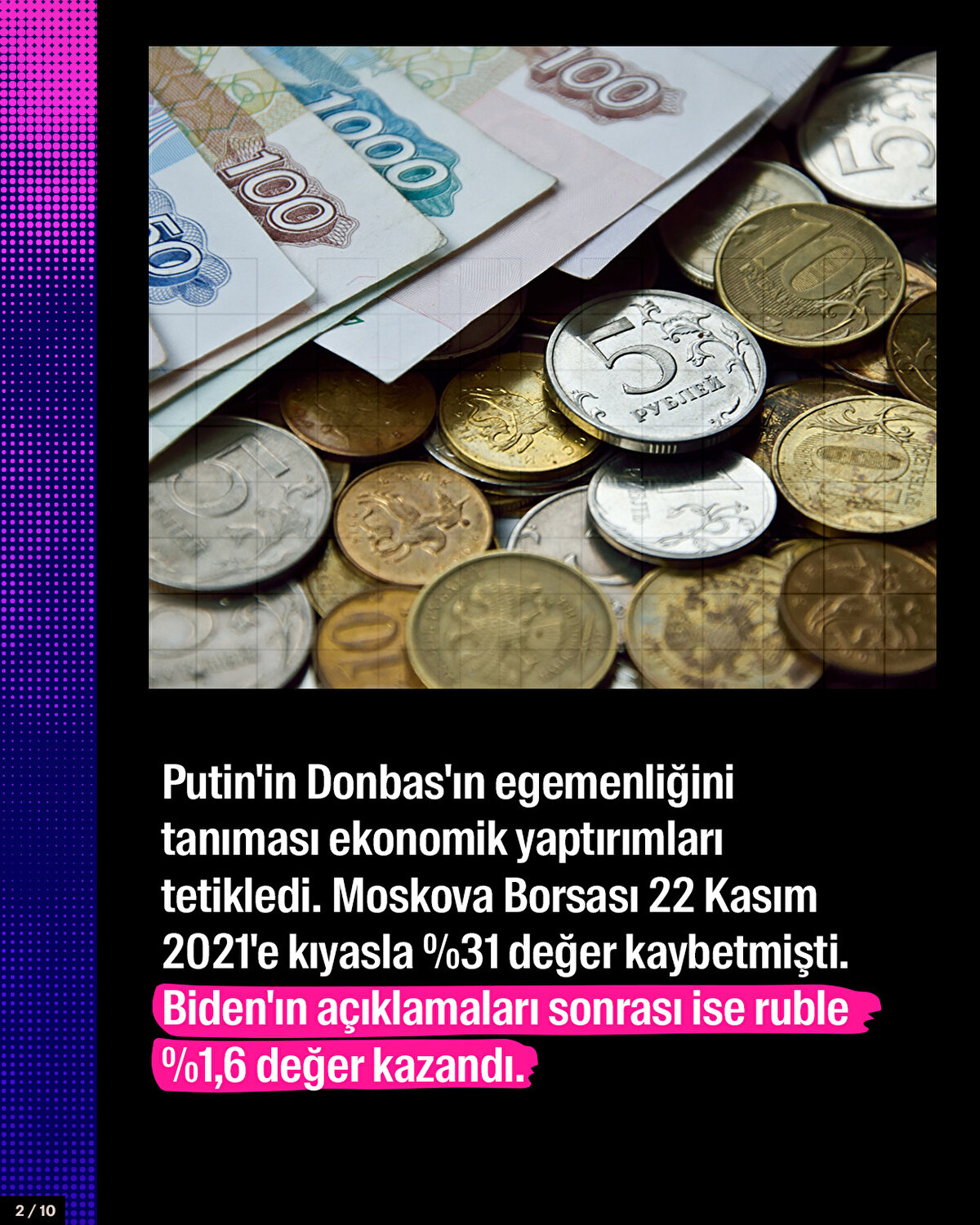 Putin'in Donbas bögesinin bağımsızlığını tanıdığını söyledikten sonra ABD, AB, Almanya ve İngiltere yaptırım kararlarını açıklamaya başladı. Ancak kriz sonrası Rus rublesinin değer kazanması