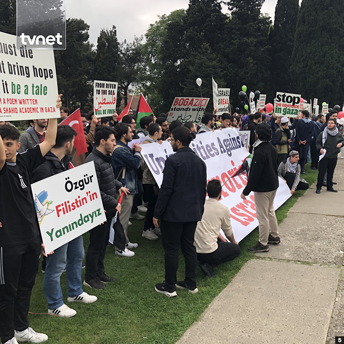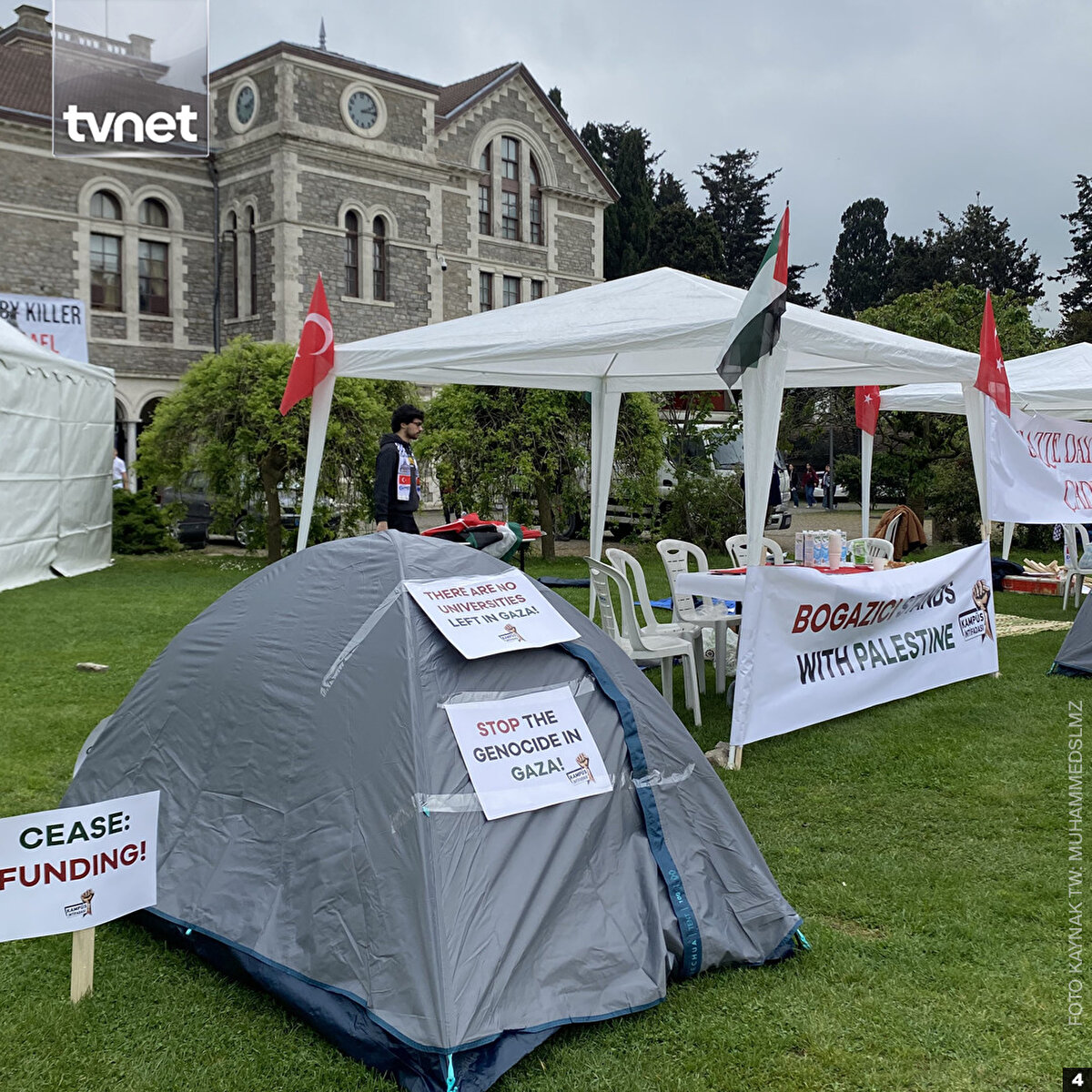 Amerika'daki üniversitelerde Gazze'yi destekleyen öğrencilerin yaptığı eylemler engellenmeye devam ederken, Boğaziçi Üniversitesi hem ABD'deki zorbalık için hem de Gazze'deki soykırım için direnişe başladı.