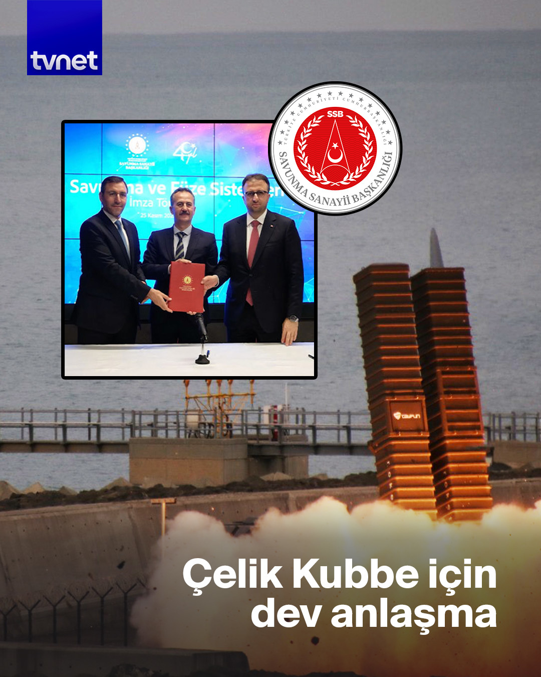 Türkiye'nin katmanlı hava savunma sistemi 'Çelik Kubbe'yi güçlendirecek yeni füze ve savunma sistemlerinin seri üretimi için 6,5 milyar dolar değerinde sözleşmeler imzalandı.