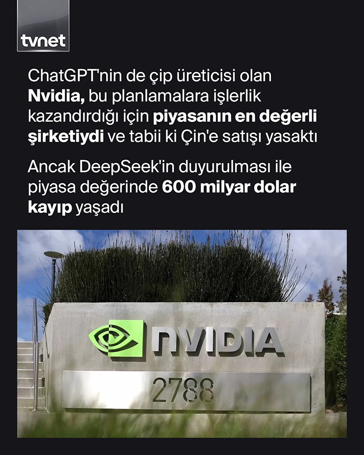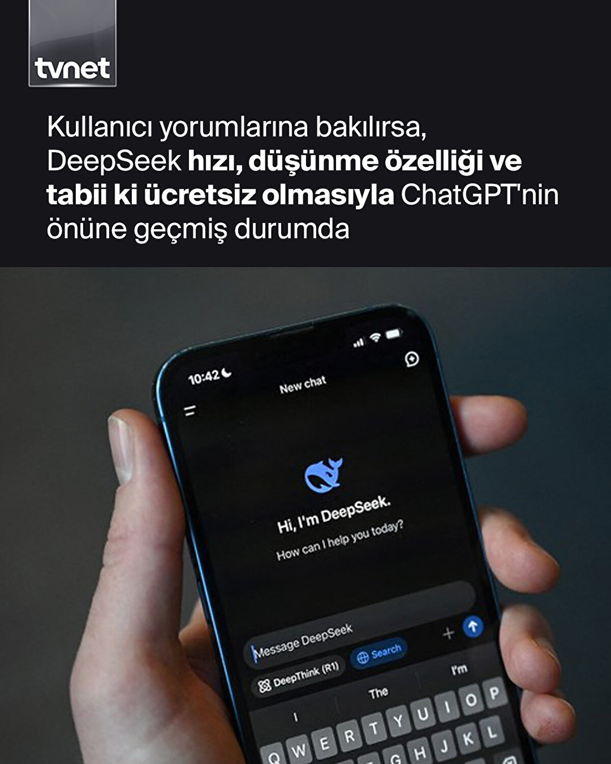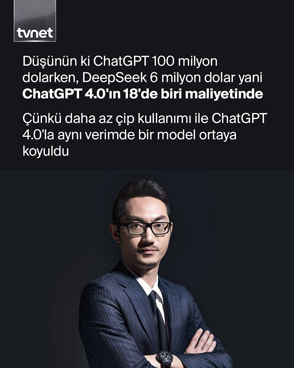 ABD'nin Çin'e uyguladığı teknolojik yaptırımlar ters tepti. Kısıtlı imkanlarla yüksek verim elde etme yolunu bulan Çin DeepSeek hamlesi ile ABD'de yapay zeka sektörüne hakim olan yüksek yatırım-yüksek performans denklemini kırdı. Düşünün ki ChatGPT 100 milyon dolarken, DeepSeek 6 milyon dolar yani ChatGPT 4.0'ın 18'de biri maliyetinde. Silikon Vadisi yatırımcısı Marc Andressen bu olayı "Yapay zekanın Sputnik anı" olarak tanımladı. Kullanıcı yorumlarına bakılırsa, DeepSeek hızı, düşünme özelliği ve tabii ki ücretsiz olmasıyla ChatGPT'nin önüne geçmiş durumda. OpenAI CEO'su, DeepSeek'e yönelik 'etkileyici bir model' yorumunda bulundu ve ekledi: "Yeni bir rakibe sahip olmak canlandırıcı"
