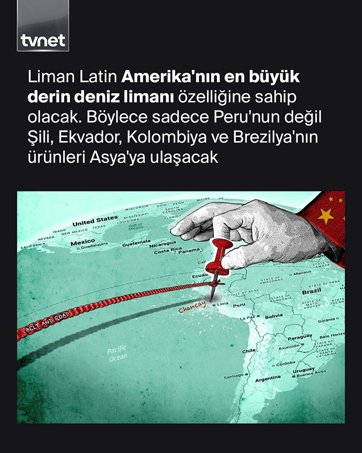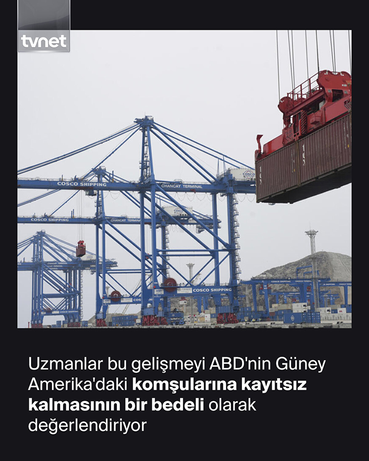 Güney Amerika'daki yatırımlarına devam eden Çin, Peru'da Chancay Limanı'nı inşa etti. Mega limanın "Kuzey Amerika'yı devre dışı bırakacak yeni ticaret rotaları oluşturabileceği" ifade ediliyor.