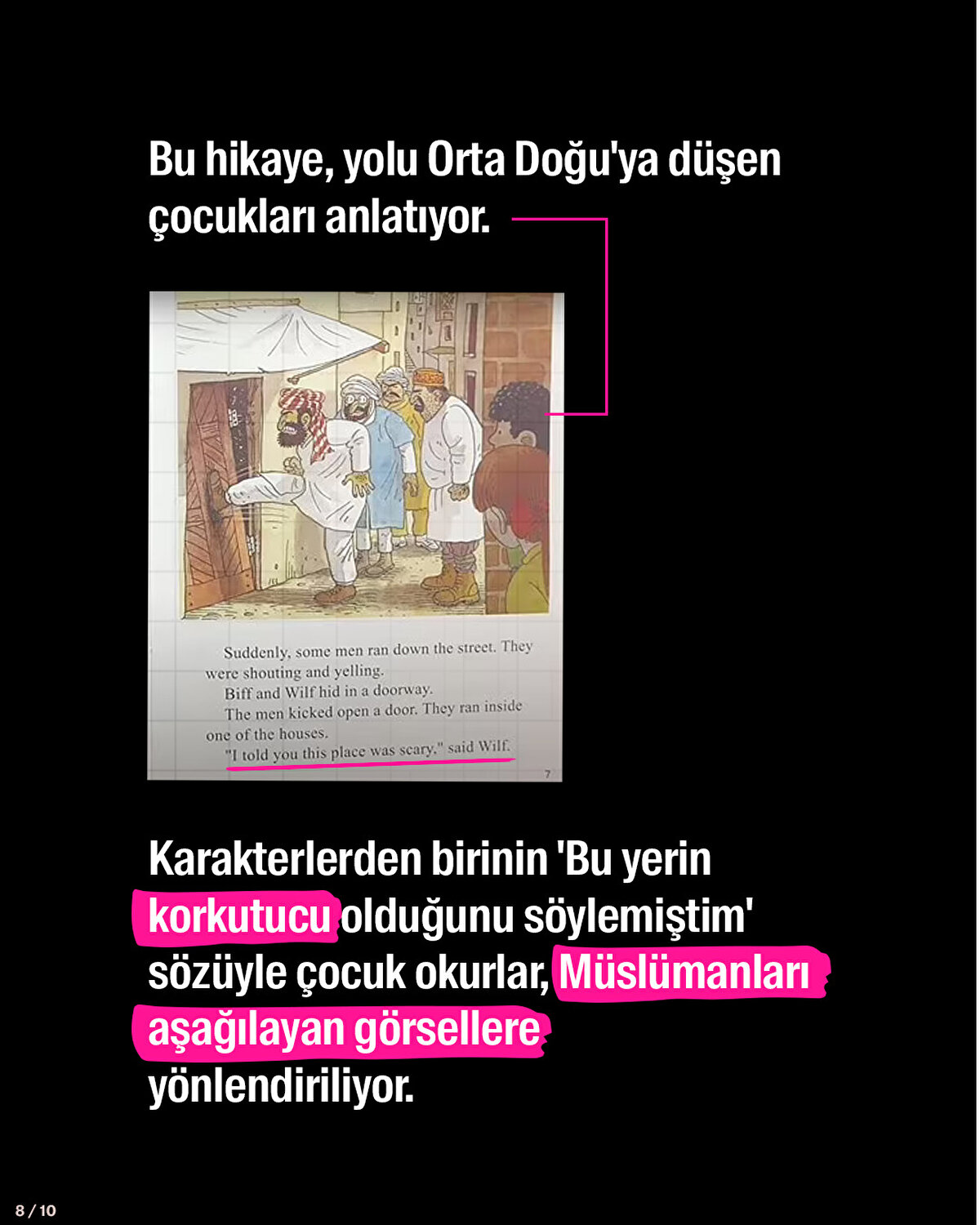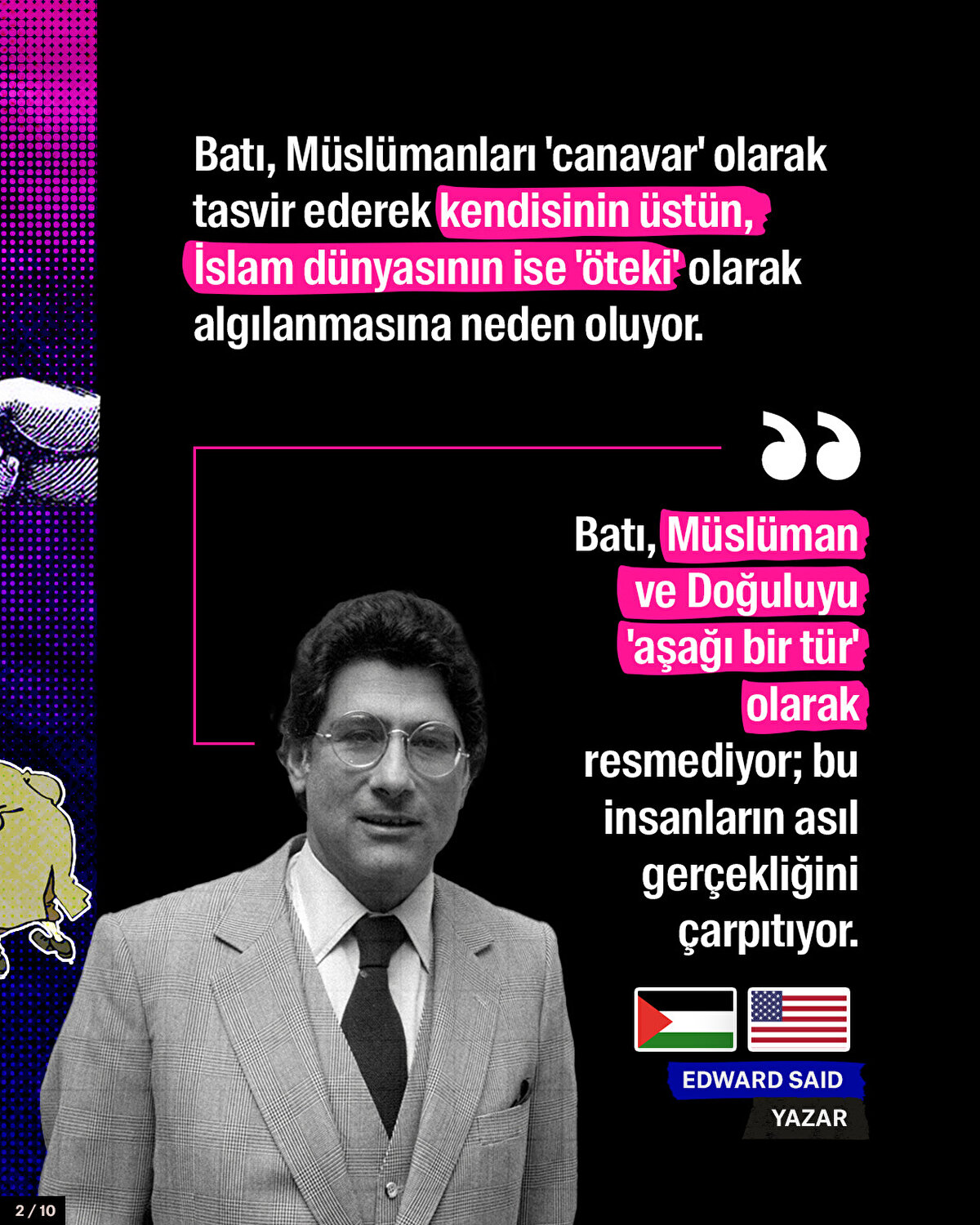 Batı, Müslümanları 'canavar' olarak tasvir ederek kendisinin üstün, İslam dünyasının ise 'öteki' olarak algılanmasına neden oluyor. Buna özellikle çocuk kitaplarında rastlamak mümkün.