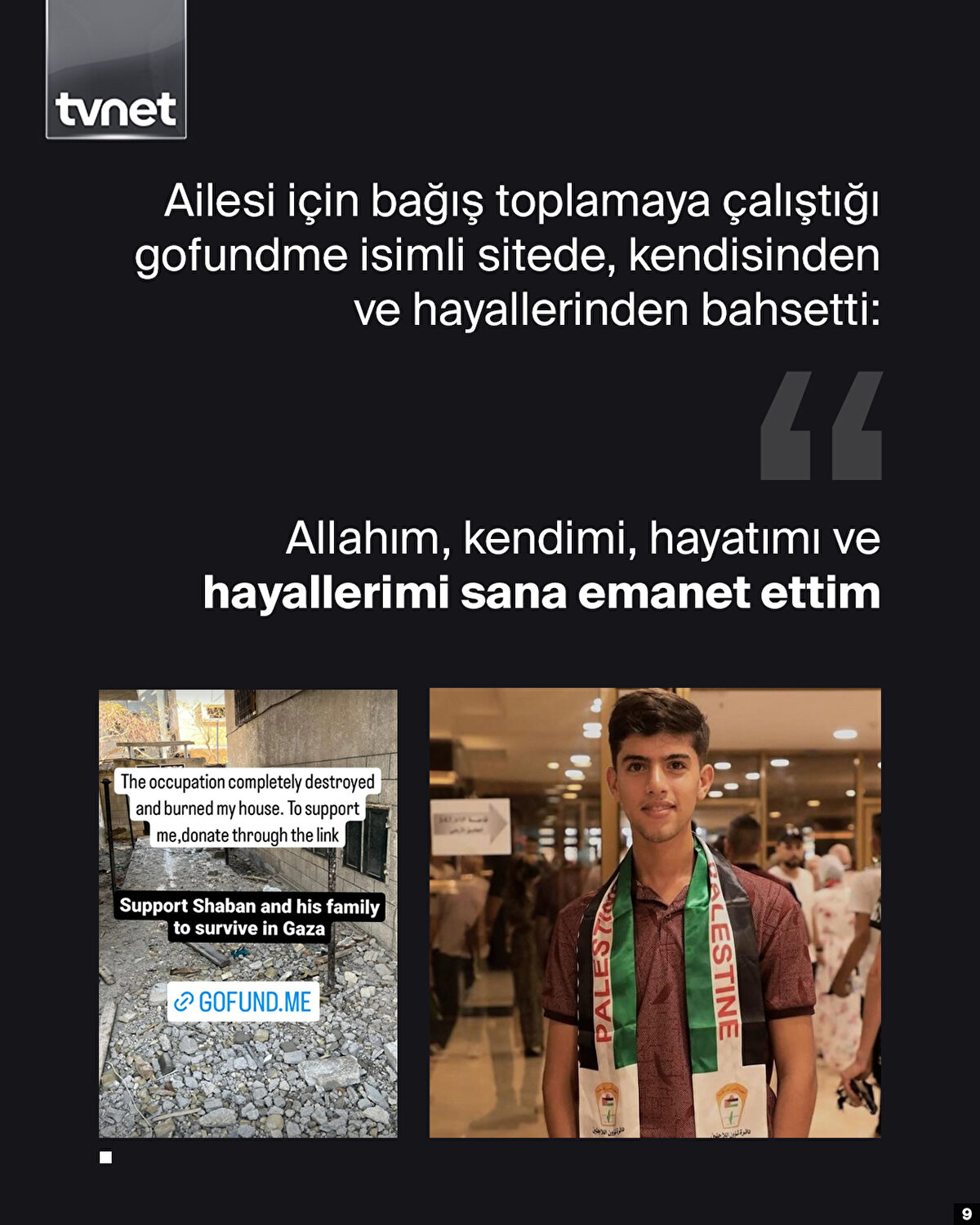 Katil İsrail ordusunun El-Aksa Şehitleri Hastanesi’ne yönelik saldırıları sırasında hastanede tedavi gören Şaban Ahmed, alevler içerisinde çırpınarak can verdi. Şaban kurbanlardan yalnızca biri. İsrail Gazze’de insanları diri diri yakarak öldürmeye devam ediyor.