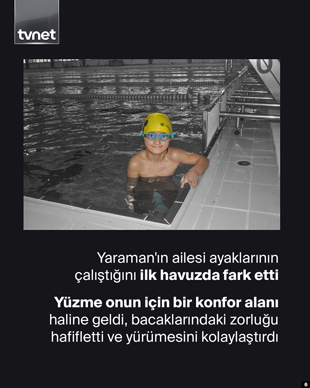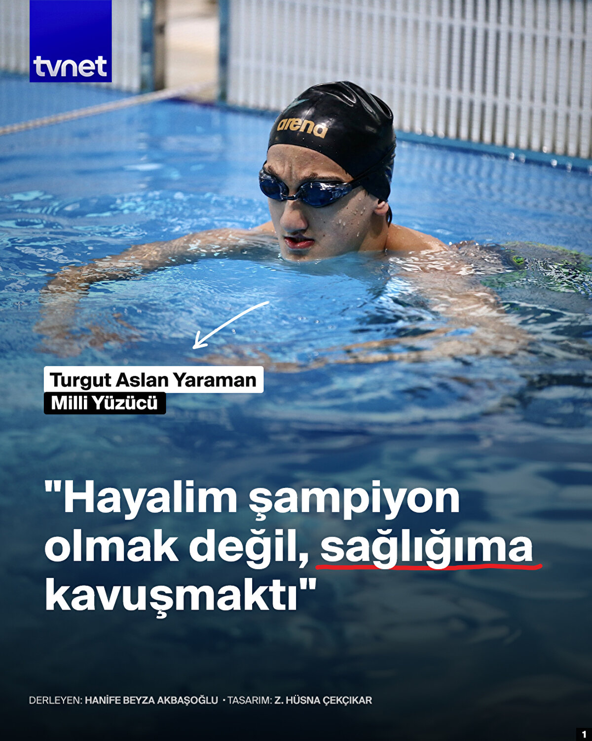 "Hayalim şampiyon olmak değil, sağlığıma kavuşmaktı"Milli yüzücü Turgut Aslan Yaraman 5 yaşındayken elleri üzerinde yürüyerek girdiği spor salonunda önce yüzmeyi sonra yürümeyi öğrendi. Doğuştan bacakları perdeli doğmuş ve 7 yılda 7-8 büyük ameliyat geçirmişti. Doktorunun önerisiyle yüzme dünyasına adım attı. Yaraman'ın ailesi ayaklarının çalıştığını ilk havuzda fark etti. Yüzme onun için bir konfor alanı haline geldi, bacaklarındaki zorluğu hafifletti ve yürümesini kolaylaştırdı. Hastalığını aşmak için verdiği savaş antrenörü Ali Şahin'in dikkatini çekmişti. 10 yaşındayken Paralimpik milli takımına girmeyi başardı. Sporcu, yaklaşık beş yılda ulusal yarışmalarda sayısız zafer elde etti. Mısır'da düzenlenen Para Yüzme Dünya Serisinde altın, gümüş ve bronz madalyalar kazandı. Yüzerek hayatını değiştiren Yaraman bugün milli forması ile ailesi ve antrenörü için gurur kaynağı
