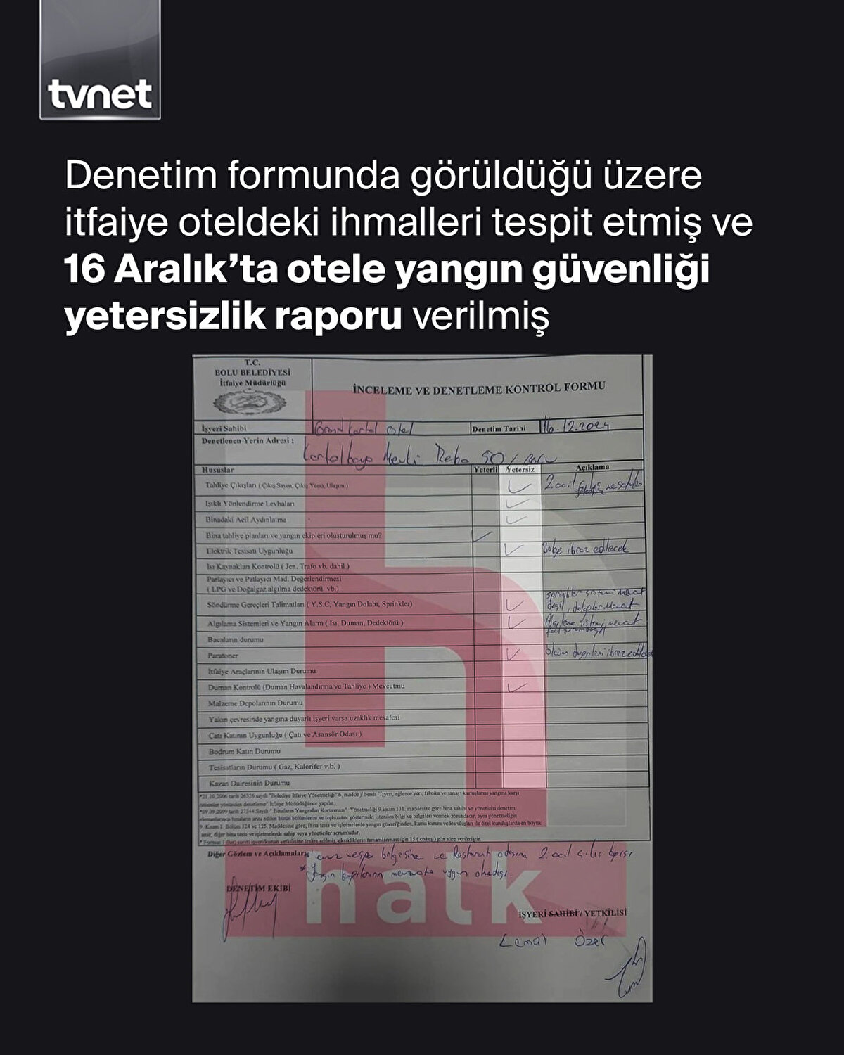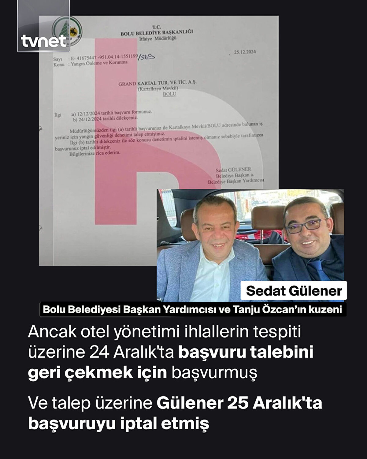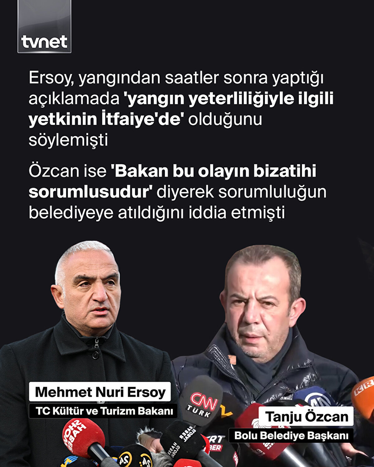 Grand Kartal Otel faciasında 79 kişinin hayatına bedel olan ihmaller zincirinin sorumlusu hala netleşmiş değil. Kültür ve Turizm Bakanı Mehmet Nuri Ersoy, yangından saatler sonra yaptığı açıklamada 'yangın yeterliliğiyle ilgili yetkinin İtfaiye'de' olduğunu söylemişti. Bolu Belediye Başkanı Tanju Özcan ise 'Bakan bu olayın bizatihi sorumlusudur' diyerek sorumluluğun belediyeye atıldığını iddia etmişti. Kültür ve Turizm Bakanlığı ile Bolu Belediyesi arasında yetki tartışması, ortaya çıkan belgelerle daha da derinleşti.