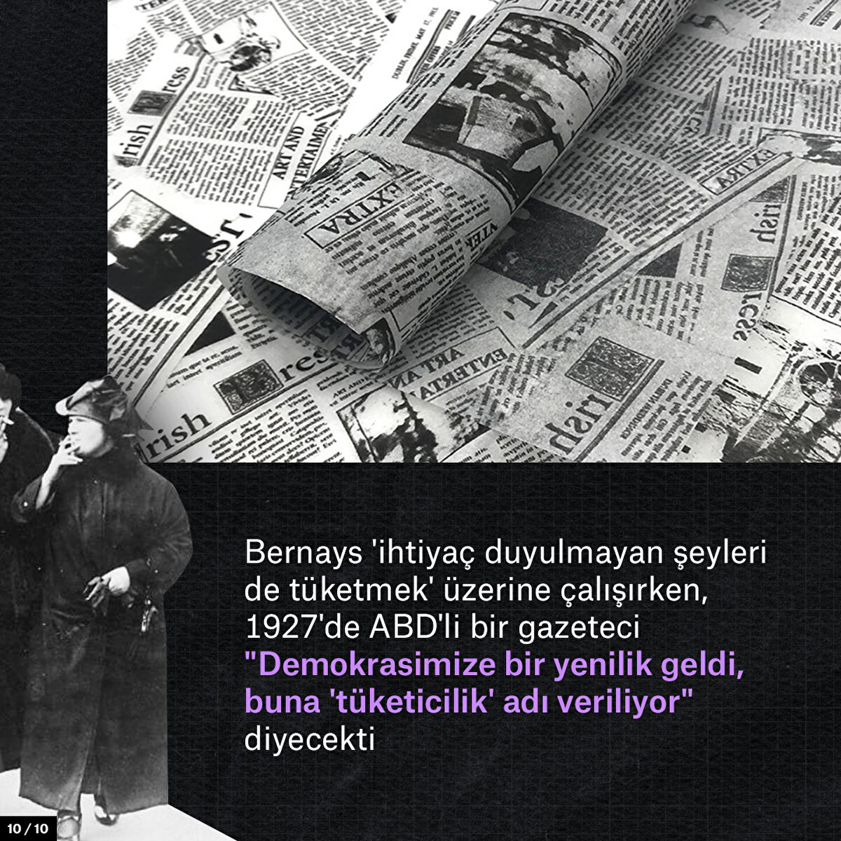 20. yüzyıla damga vuran ve modern propagandanın kurucusu olan Edward Bernays, dayısı Freud'un insan hakkındaki fikirlerinden etkilenerek kitlelerin manipülasyonu için büyük çaba harcadı ve bir kültürün temelini attı. Peki, Bernays, tüketim çılgınlığını kitlelere nasıl empoze etti?