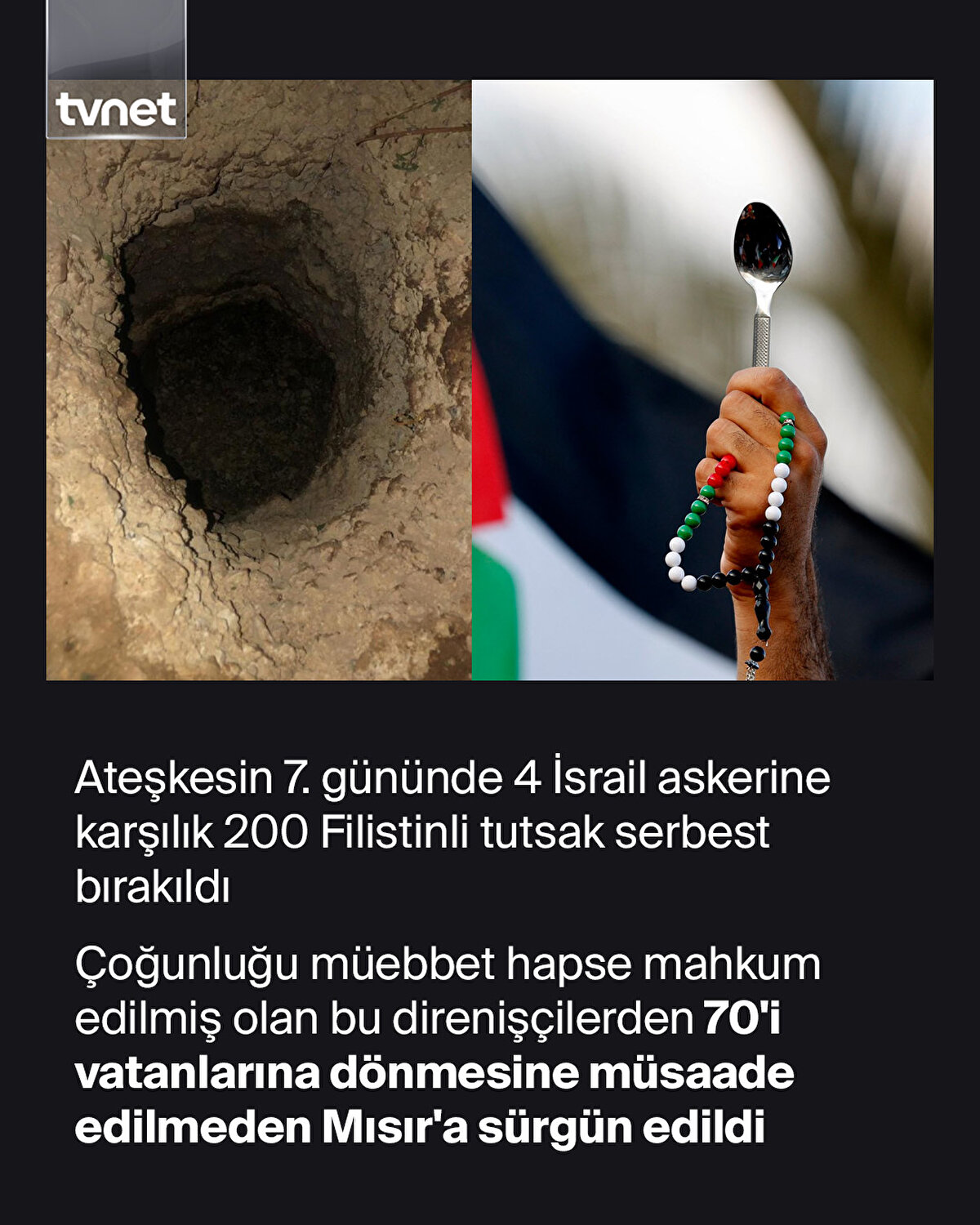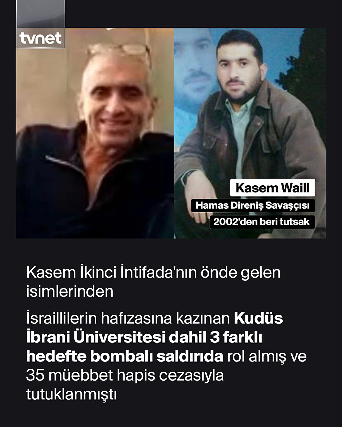 Ateşkesin 7. gününde 4 İsrail askerine karşılık 200 Filistinli tutsak serbest bırakıldı. Çoğunluğu müebbet hapse mahkum edilmiş olan bu direnişçilerden 70'i vatanlarına dönmesine müsaade edilmeden Mısır'a sürgün edildi.