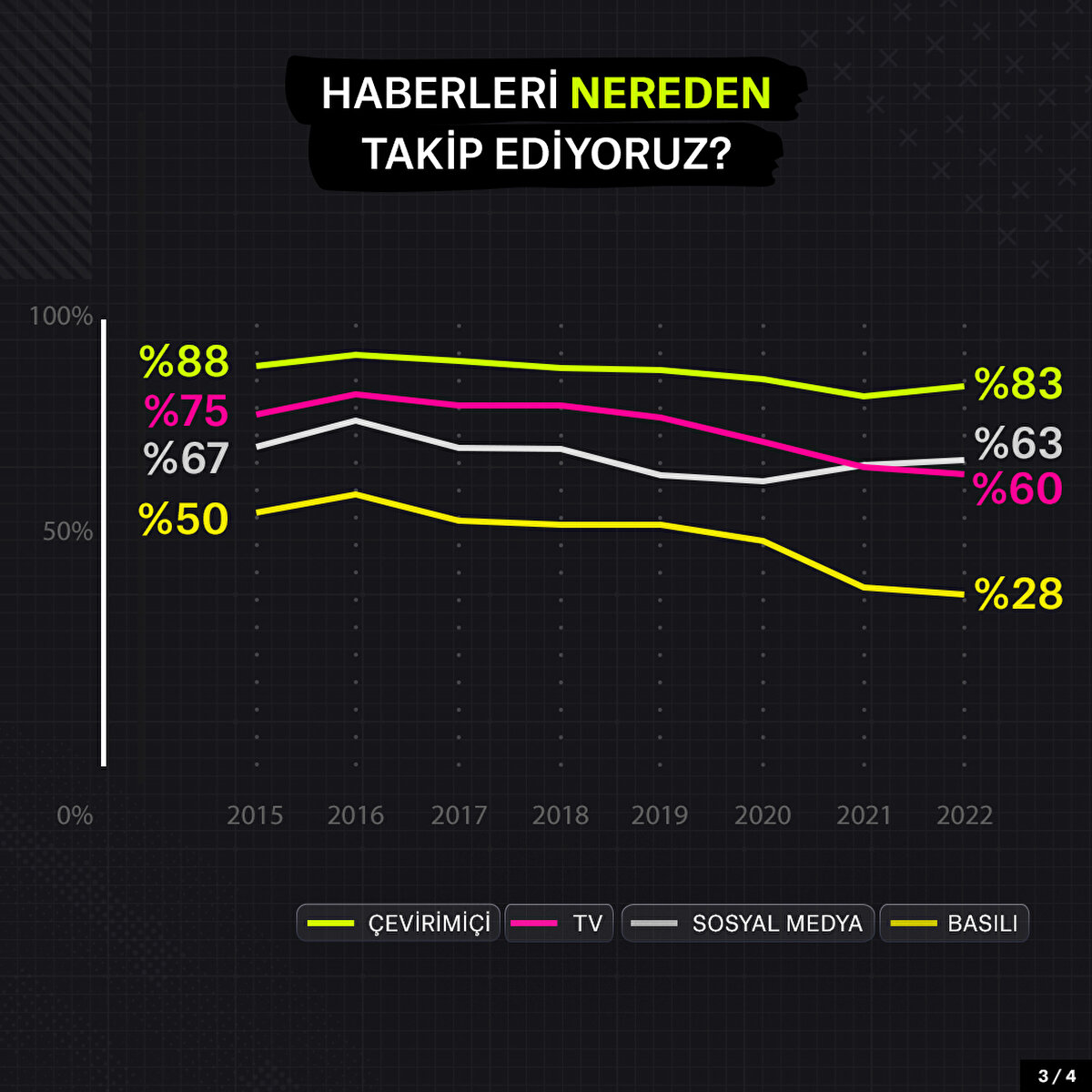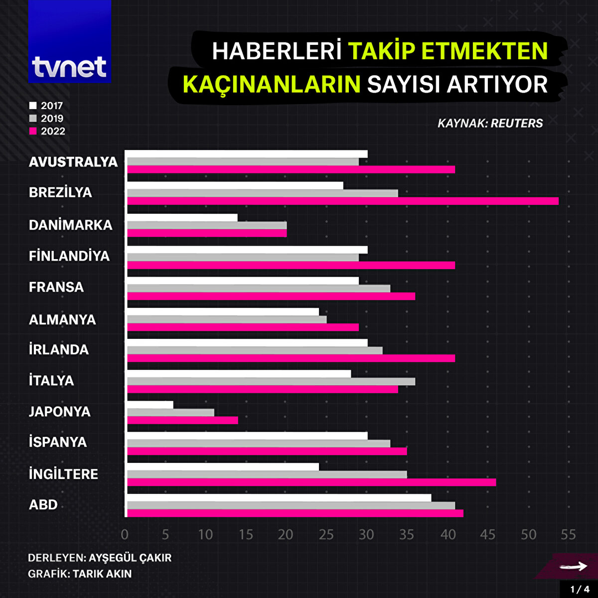 Reuters Enstitüsü'nün 2022 Dijital Haber Raporu'na göre, ruh sağlığını olumsuz etkilediği gerekçesiyle haberleri takip etmeyenlerin sayısı gün geçtikçe artıyor. Peki, siz haberleri ne sıklıkla takip ediyorsunuz?