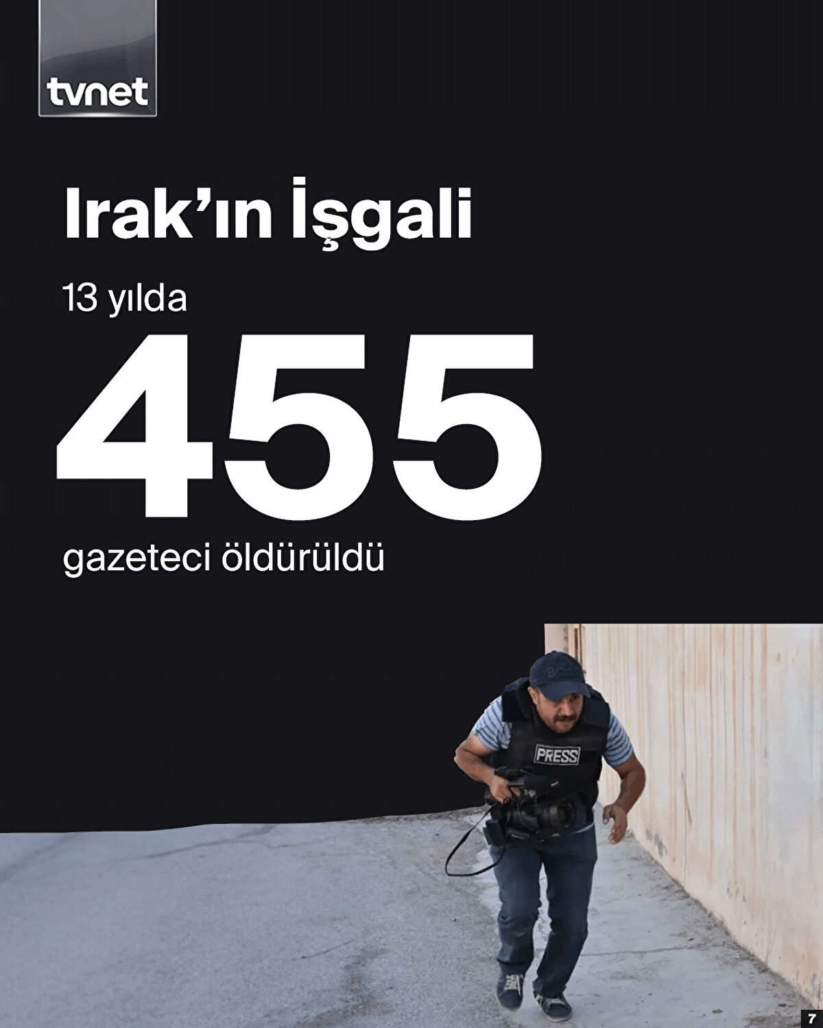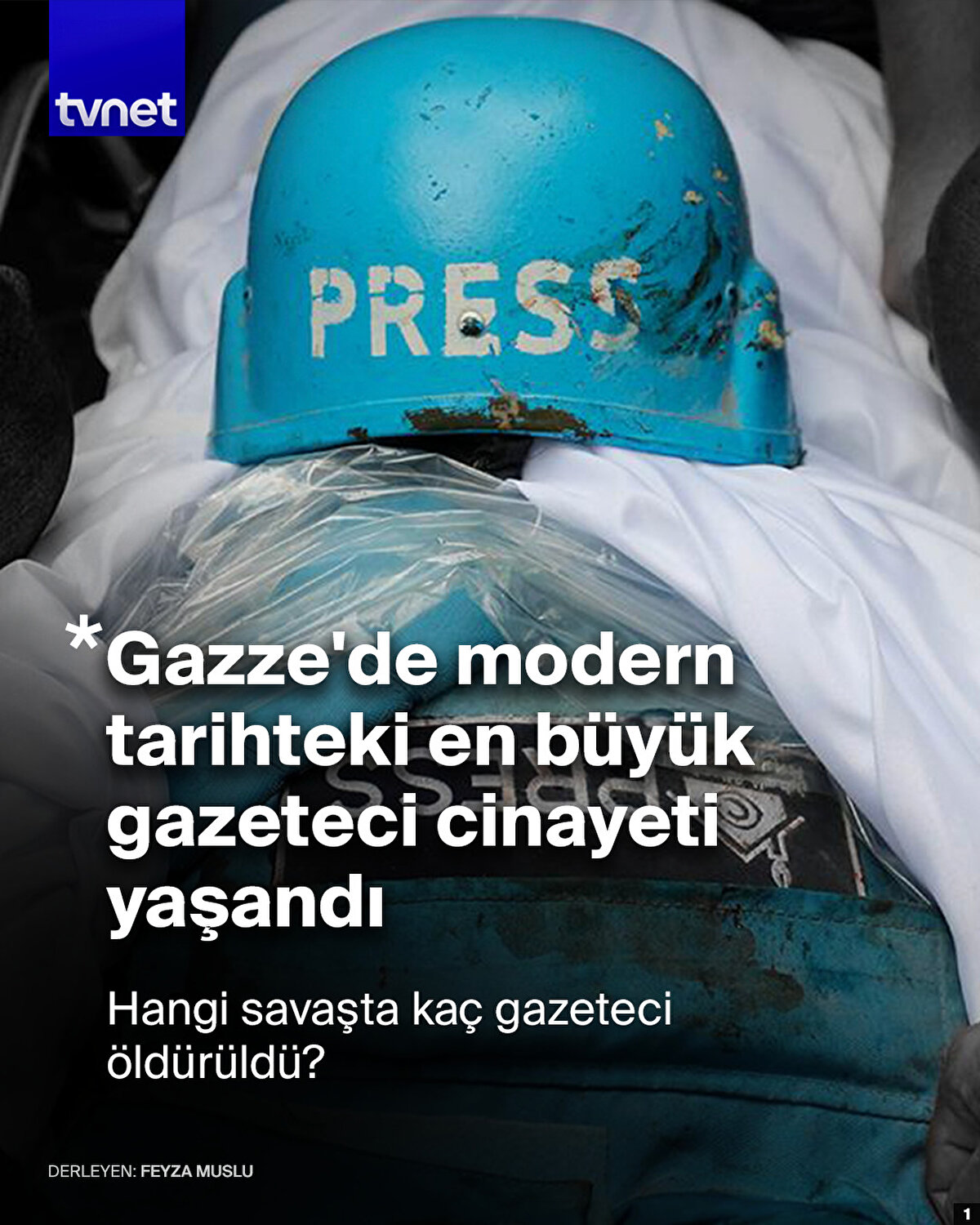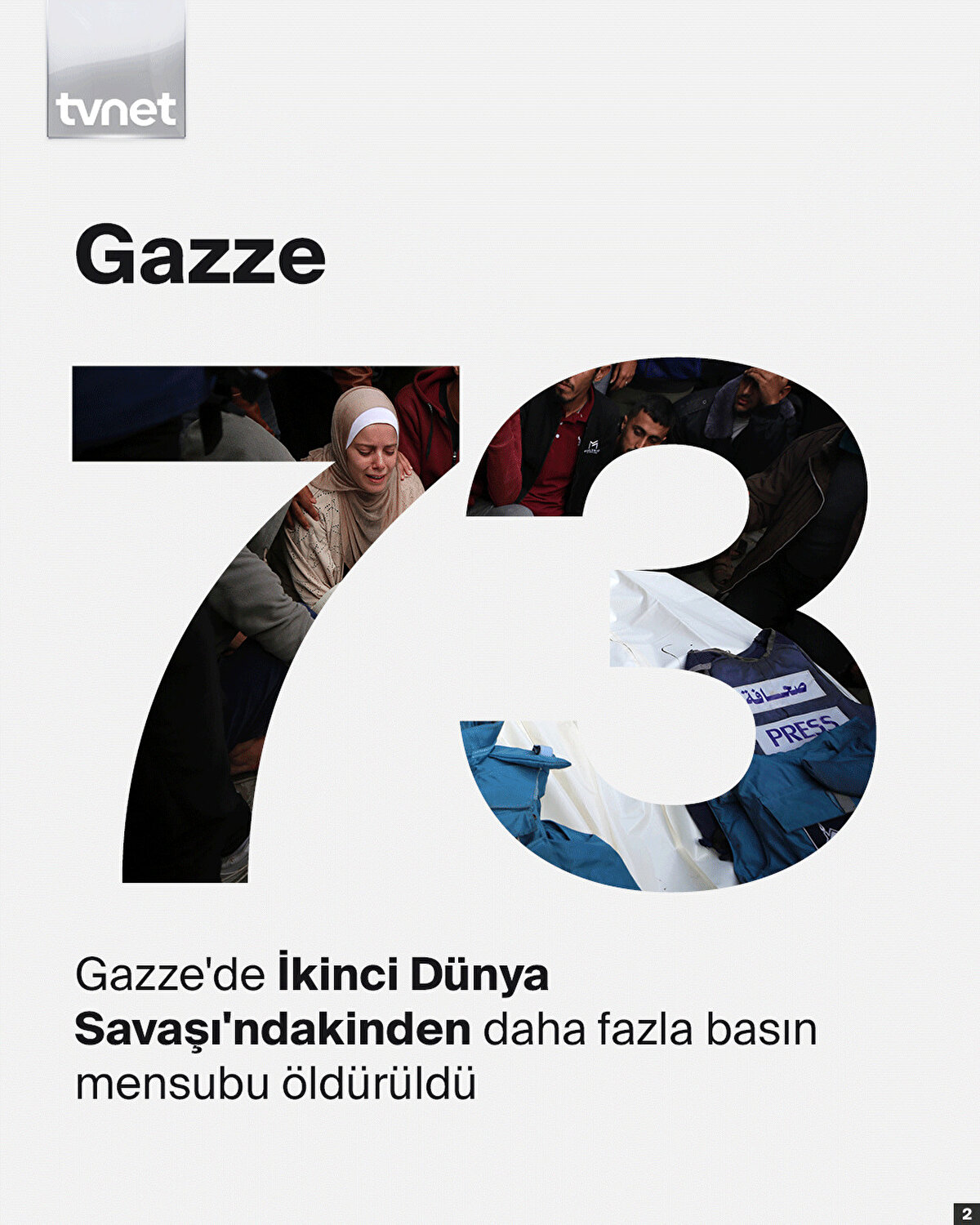 Gazze'de yaşanan soykırımda modern tarihteki en büyük gazeteci cinayeti yaşanıyor. 2. Dünya Savaşı'nda 6 yılda 69 gazeteci hayatını kaybetmişti. Gazze'de ise neredeyse 2 ayda 73 gazeteci işgalci İsrail tarafından öldürüldü.