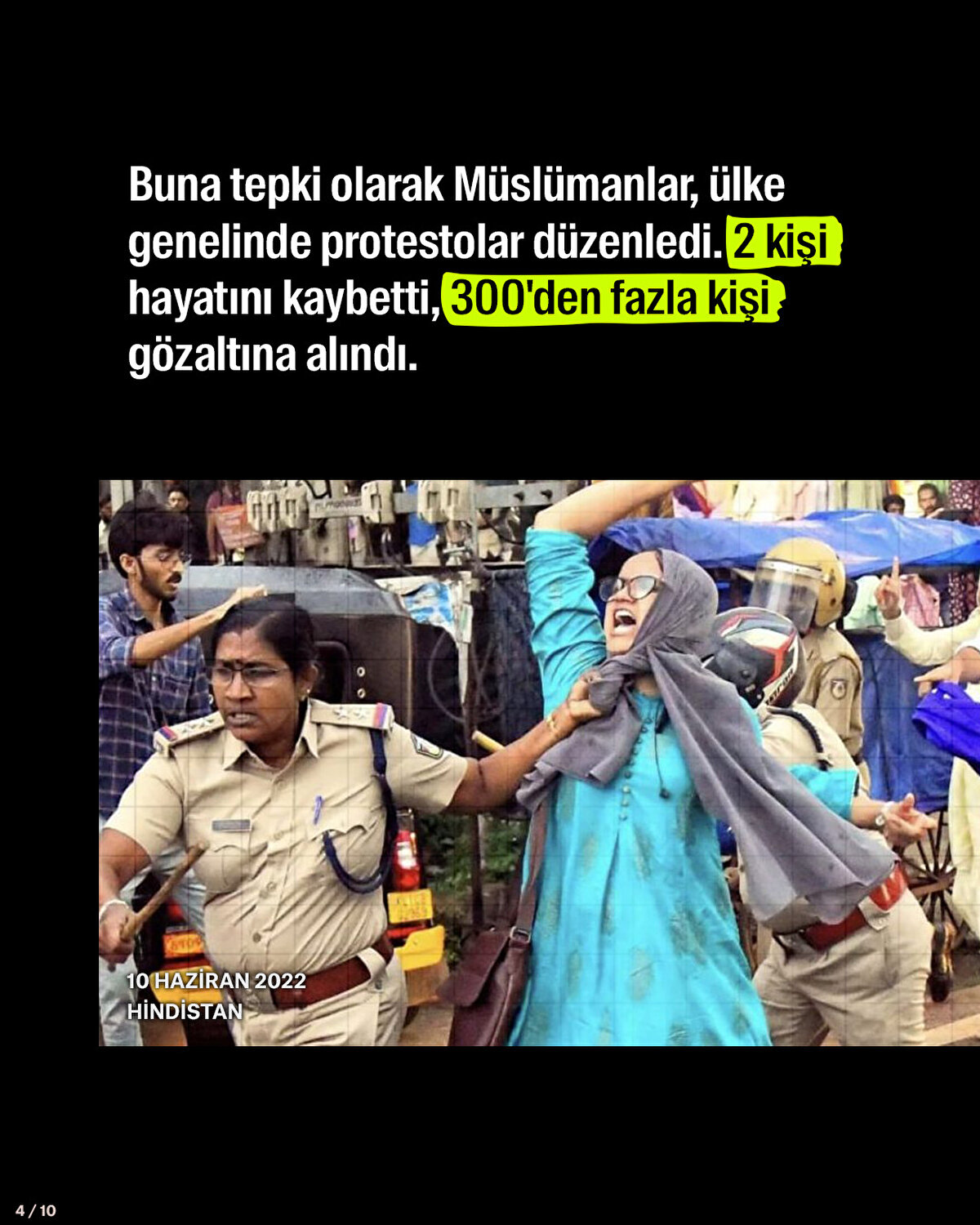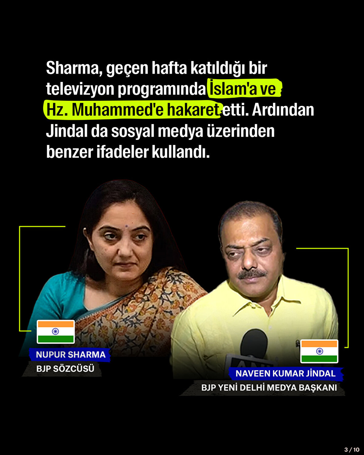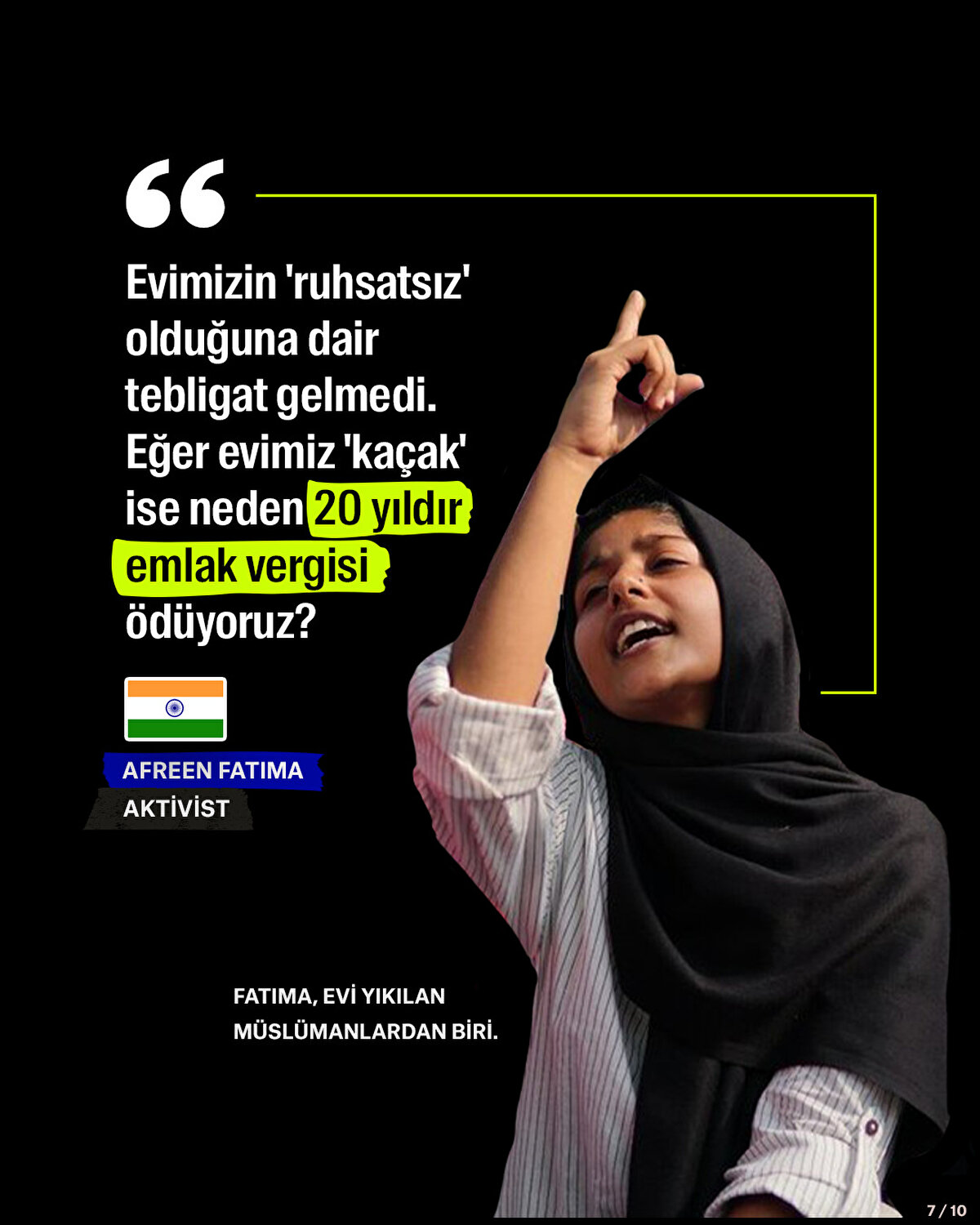 Hindistan'da İslam'ı ve Müslümanları hedef alan söylem ve eylemler son bulmuyor. Hindistan'da iktidardaki BJP Sözcüsü Nupur Sharma, geçen hafta katıldığı bir televizyon programında İslam'a ve Hz. Muhammed'e hakaret etti. Buna tepki olarak Müslümanlar, ülke genelinde protestolar düzenledi. Protestolara katılan Müslümanlardan bazılarının evleri 'ruhsatsız' olduğu ileri sürülerek yıkıldı. Buldozer, Hindistan'da Müslümanlara yönelik hedeflenen şiddetin bir göstergesi haline geldi.