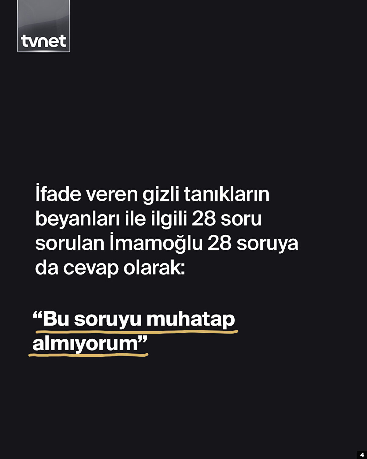 Sorgusu yaklaşık 4 saat 15 dakika süren İmamoğlu'nun 121 sayfa ifade verdiği belirlendi.