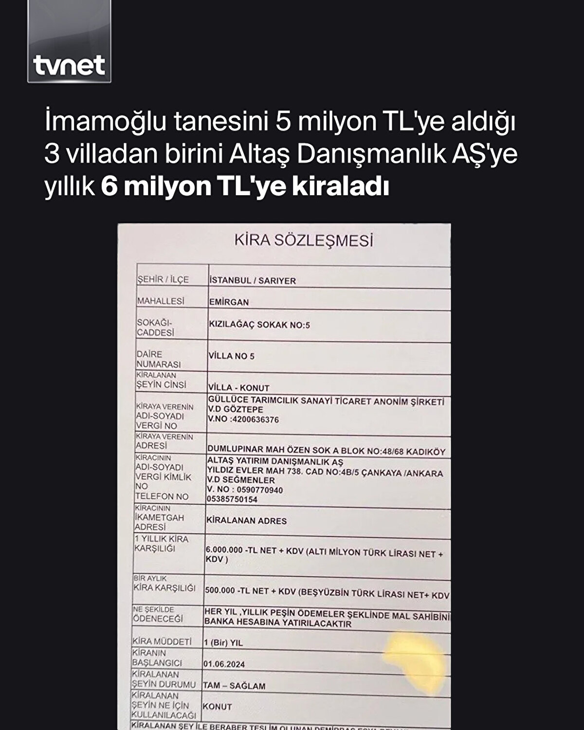 İmamoğlu'nun 15 milyon TL'ye aldığı yaklaşık 1.5 milyar TL değerindeki 3 villası ile ilgili yeni detaylar ortaya çıktı. İmamoğlu 3 villadan tekinin yıllık peşin 6 milyon TL'ye kiraya verdi.