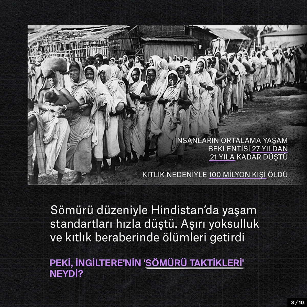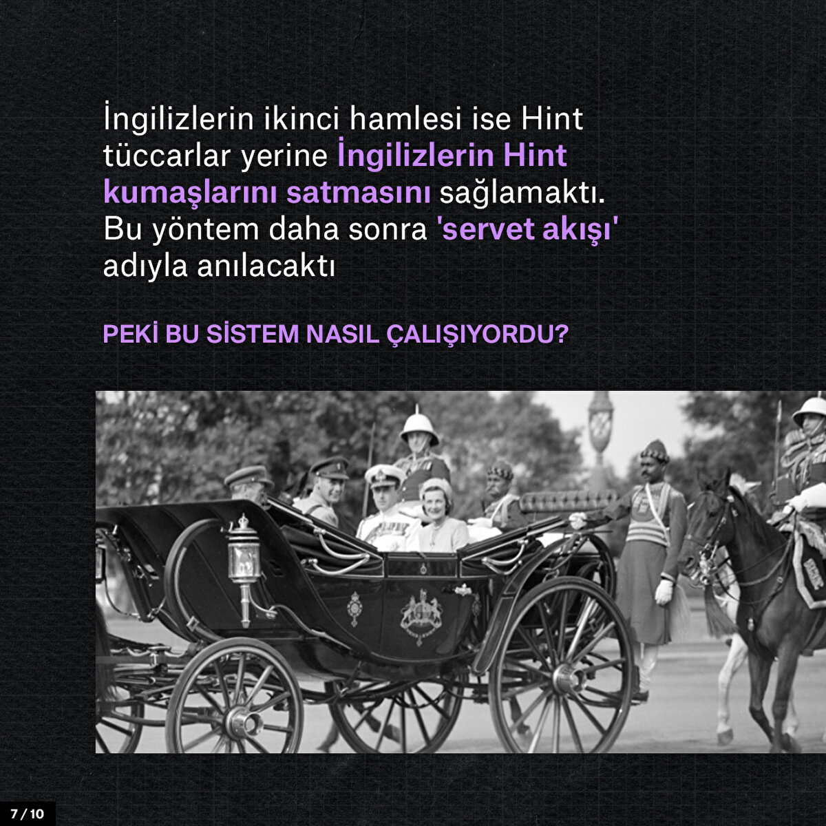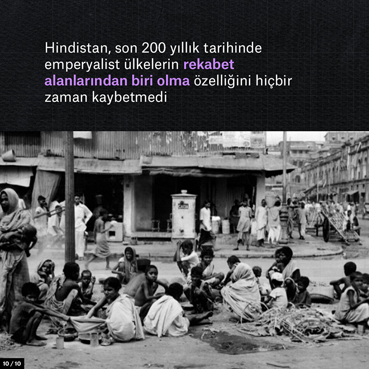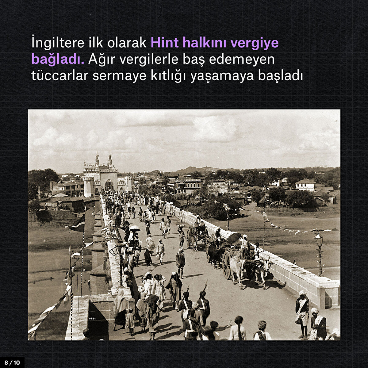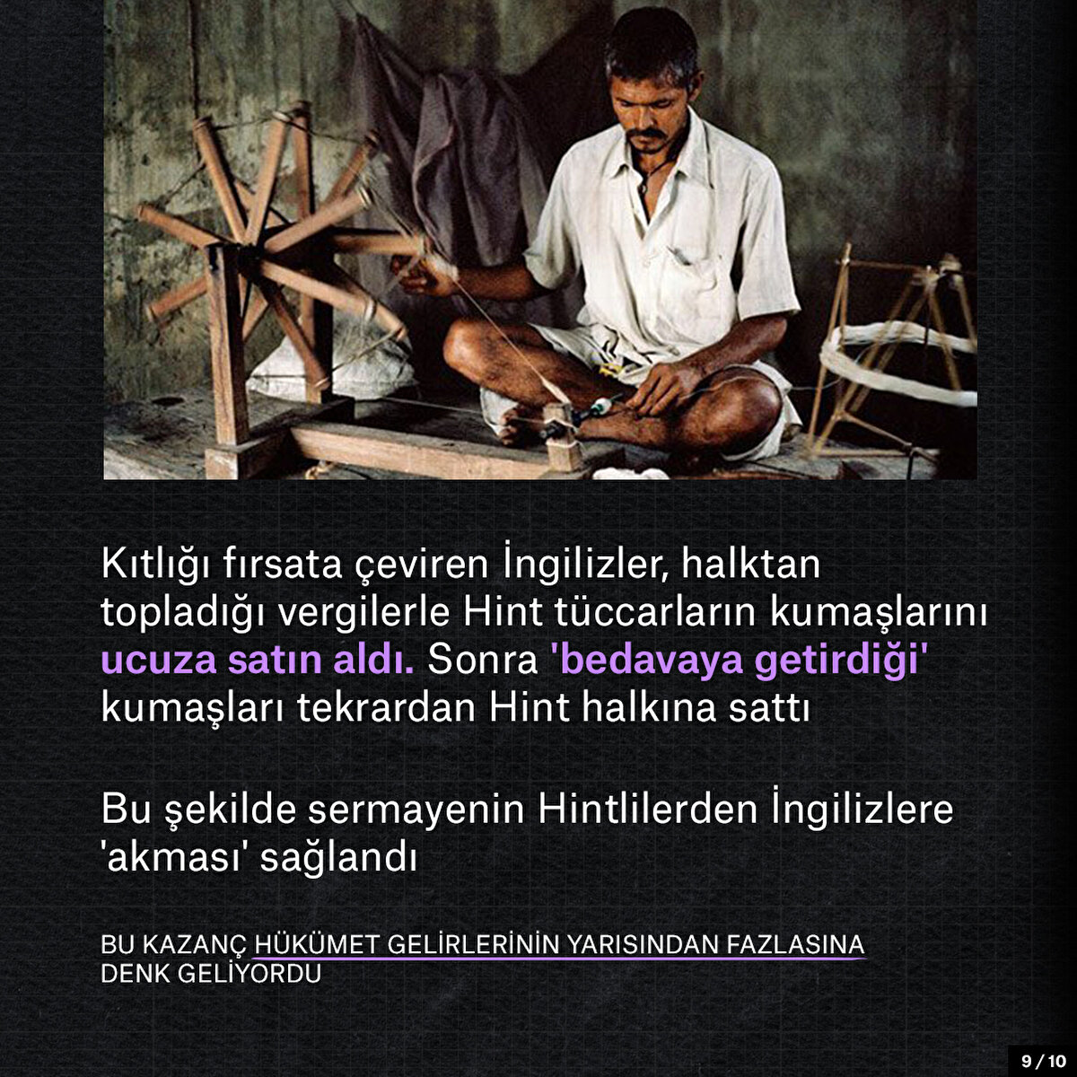 Hindistan, özellikle 1800'lü yıllarda tekstil ürünlerindeki üretiminde dünyada birinci sıradaydı. Ancak sömürü sisteminin baş aktörlerinden biri olan İngiltere, Hindistan'ın ticaretteki payına el koymak için girişimlerde bulundu. Ülkeyi vergiye bağlayarak sermaye kıtlığına neden olan İngiliz sömürüsü nedeniyle ülke genelinde 40 yılda 100 milyon insan öldü.