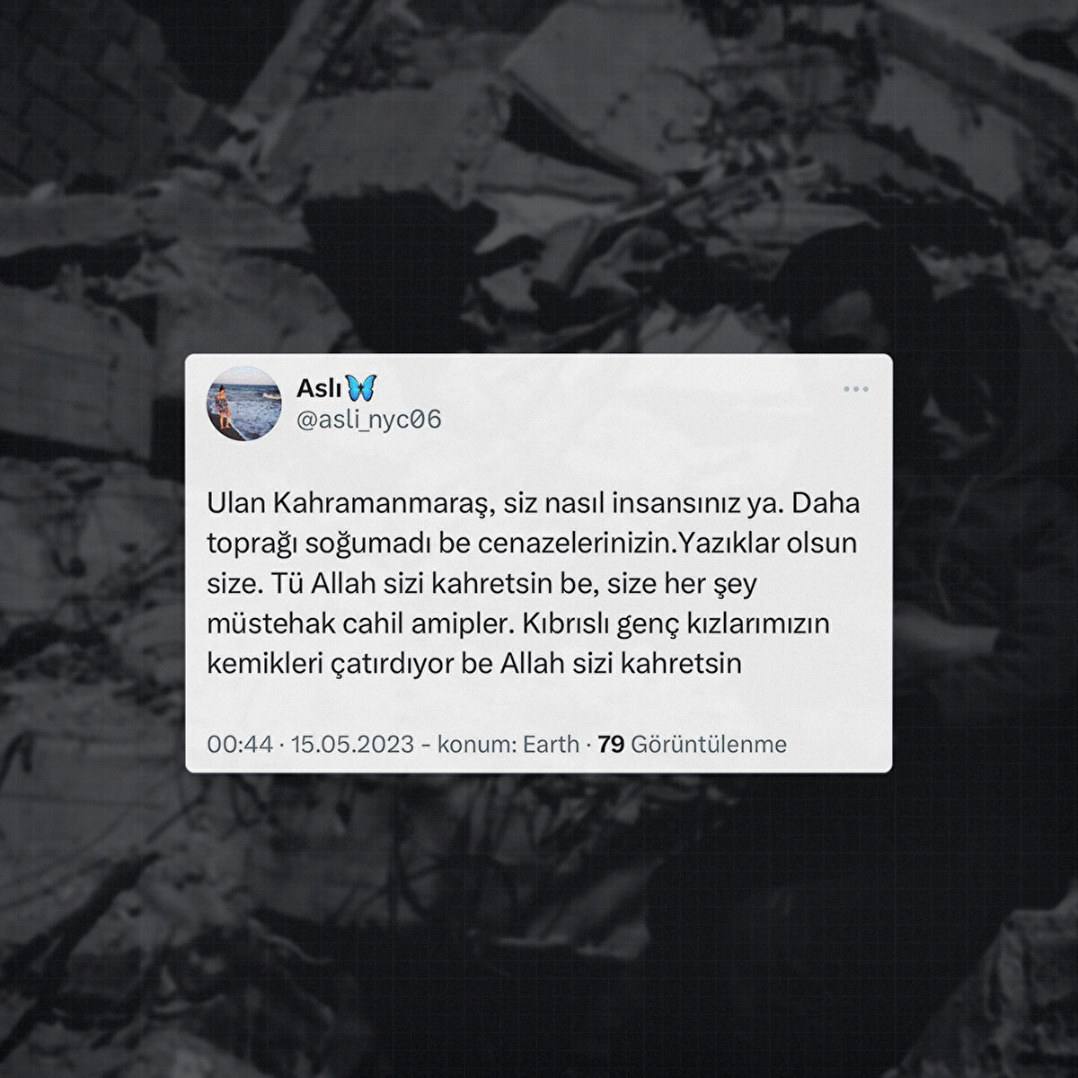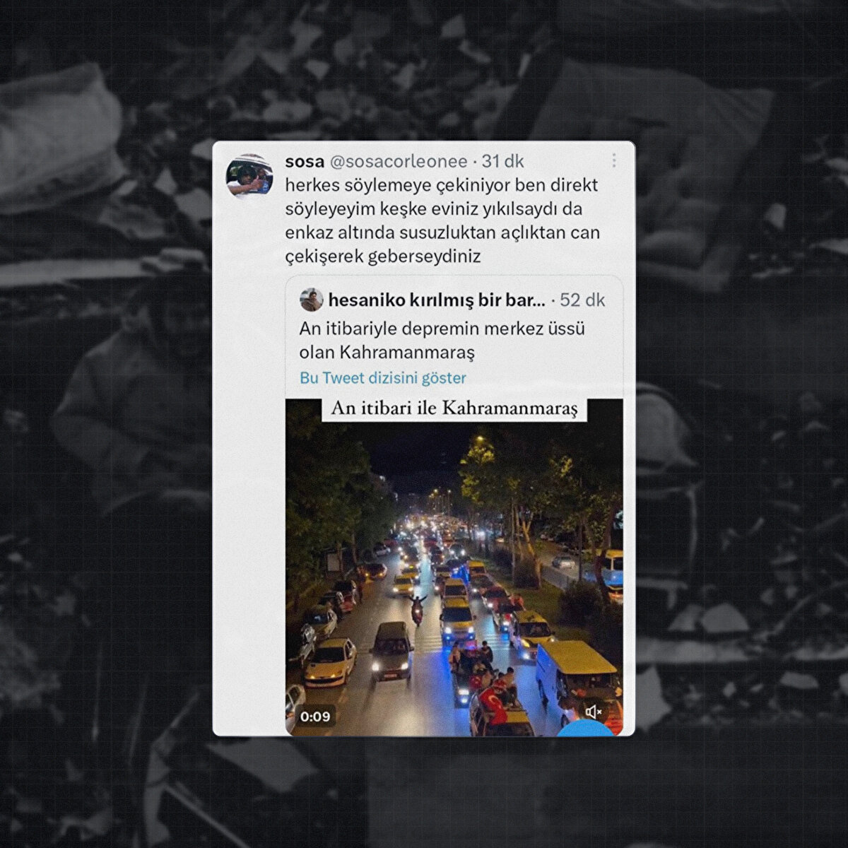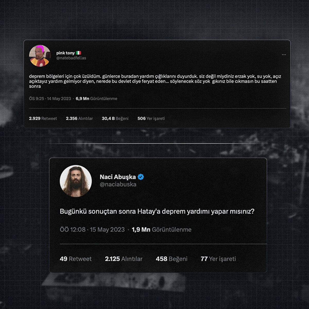 Deprem bölgesindeki sandıklardan AK Parti'nin 1. çıkmasına karşılık muhalif kesim 'depremzedeleri cezalandırma' tutumu takındı. Ekşi Sözlük ve Twitter'a yansıyan ağır söylemler 'Yardımlarınız siyaset için miydi?' dedirtecek türden.