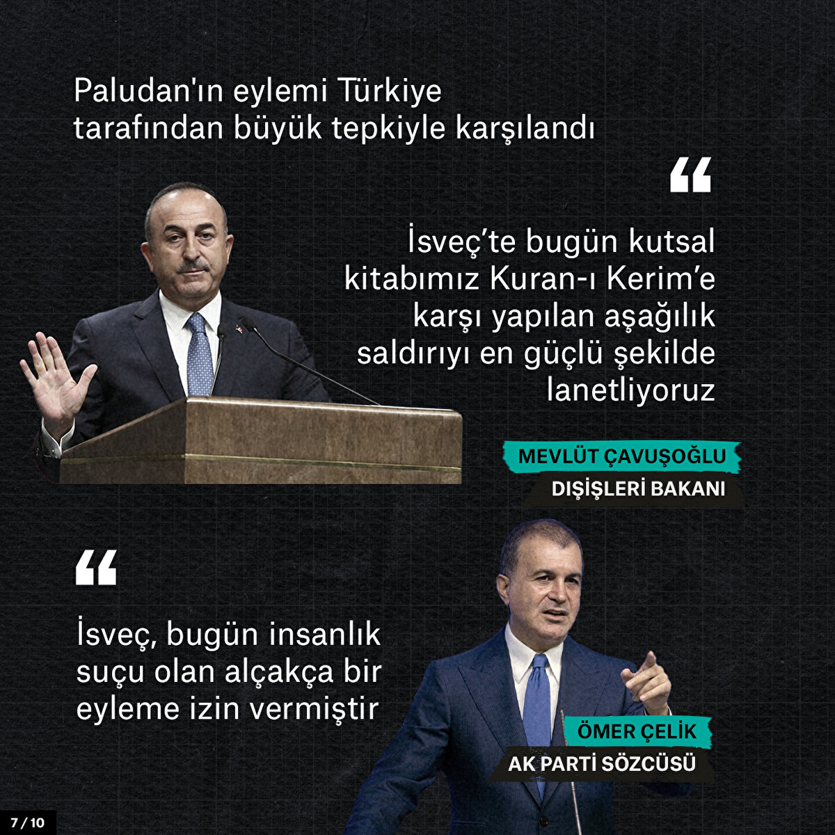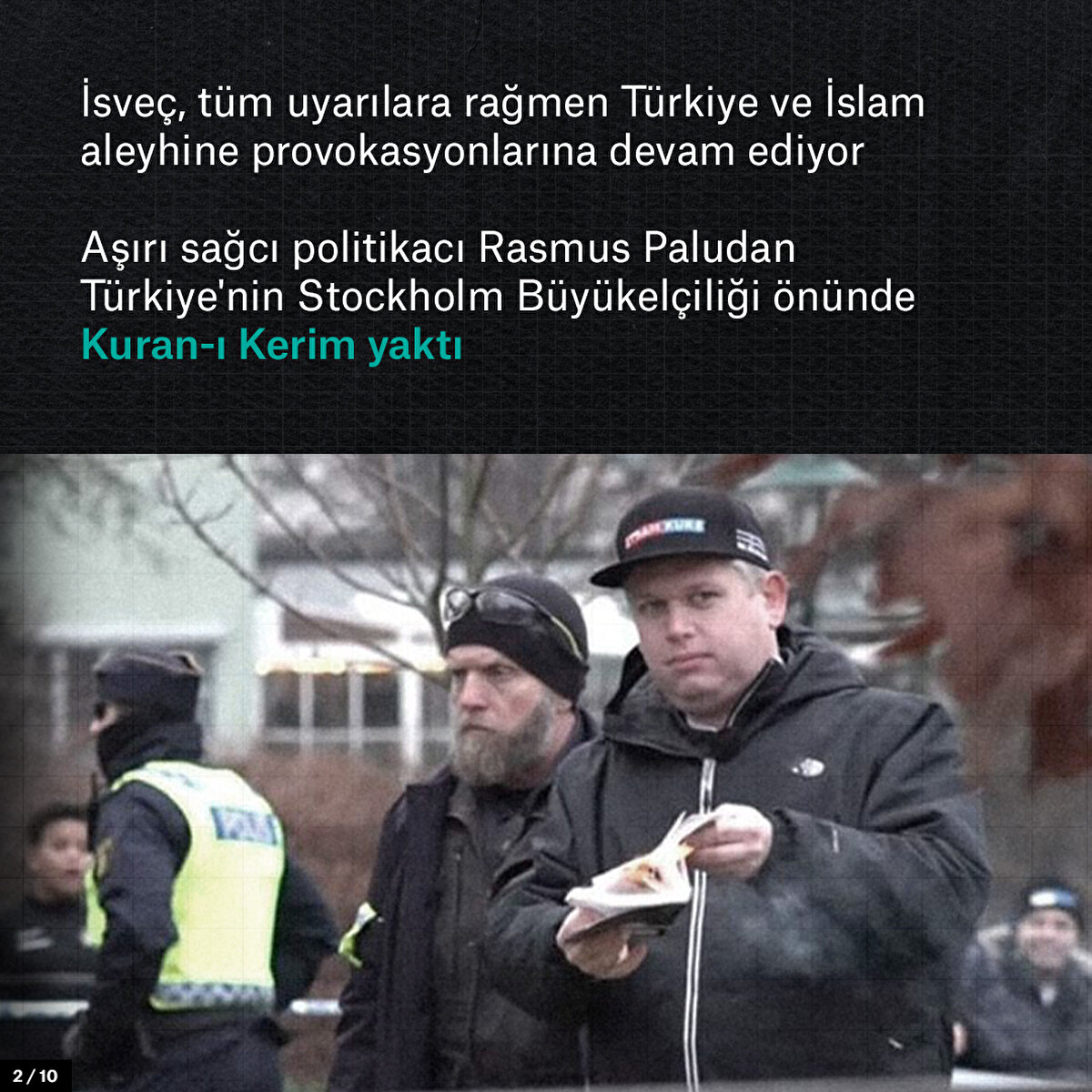 İsveç bir yandan Türkiye'den NATO üyeliği için onay beklerken bir yandan da provokasyonlarına devam ediyor. Son olarak aşırı sağcı Rasmus Paludan tarafından Stockholm'de Türkiye Büyükelçiliği önünde Kuran-ı Kerim yakıldı. İsveç hükümeti bunu demokrasinin bir parçası olarak görürken olay Türkiye tarafından büyük tepkiyle karşılandı.