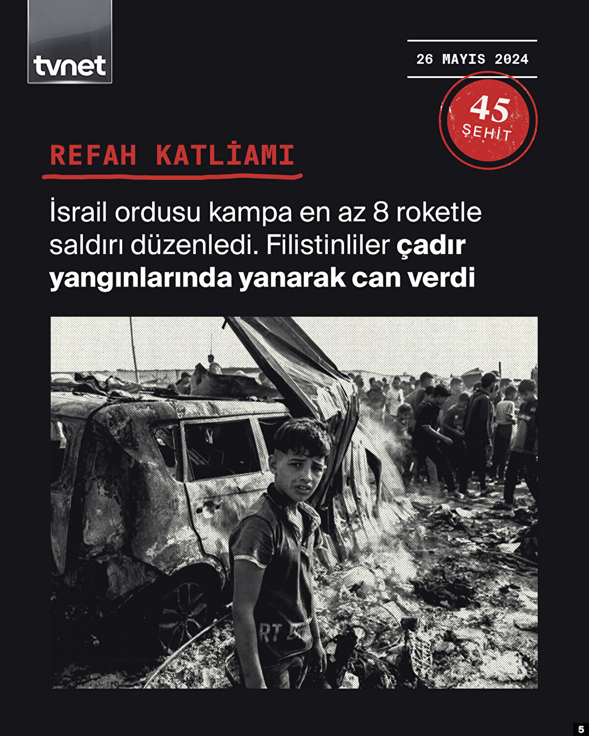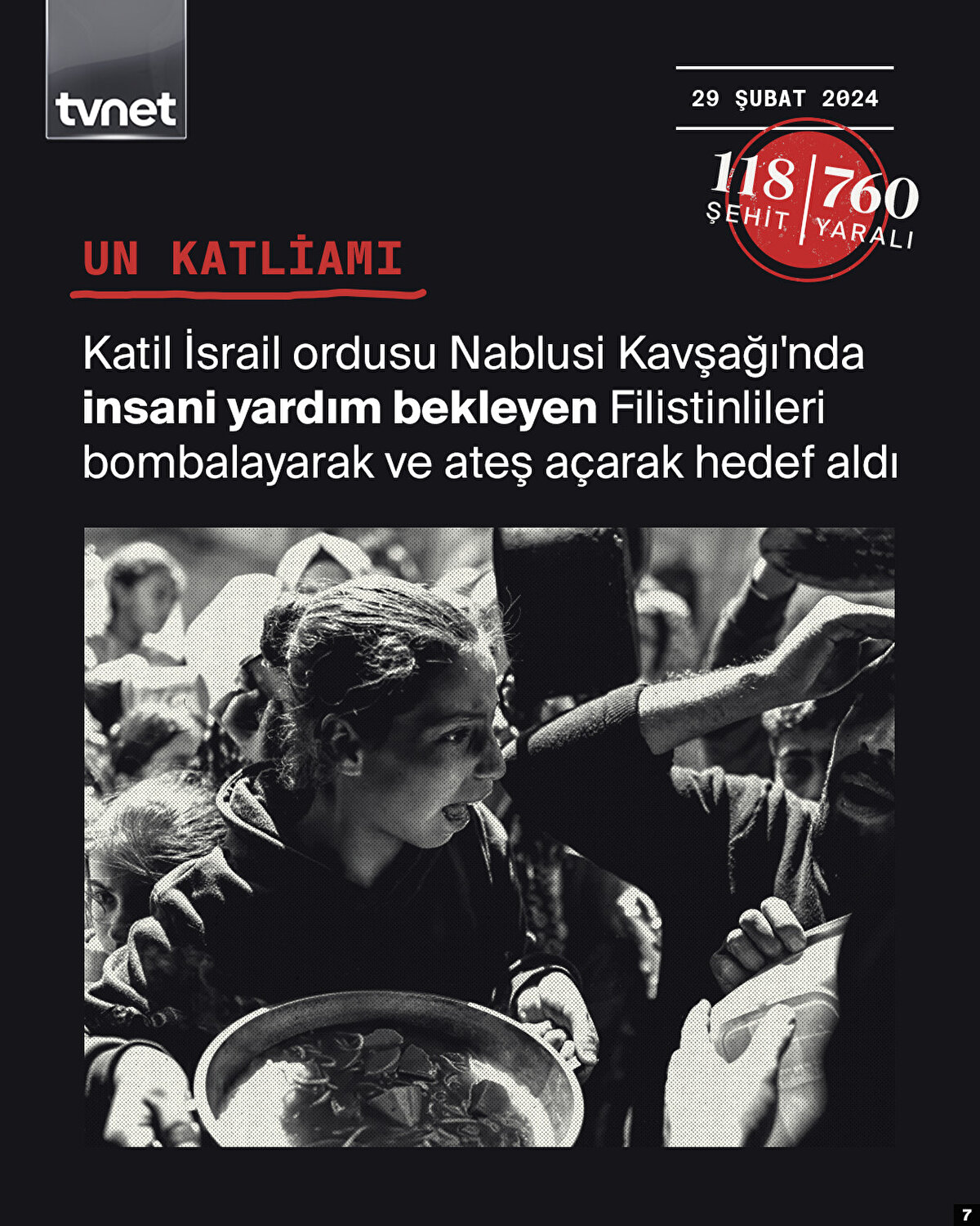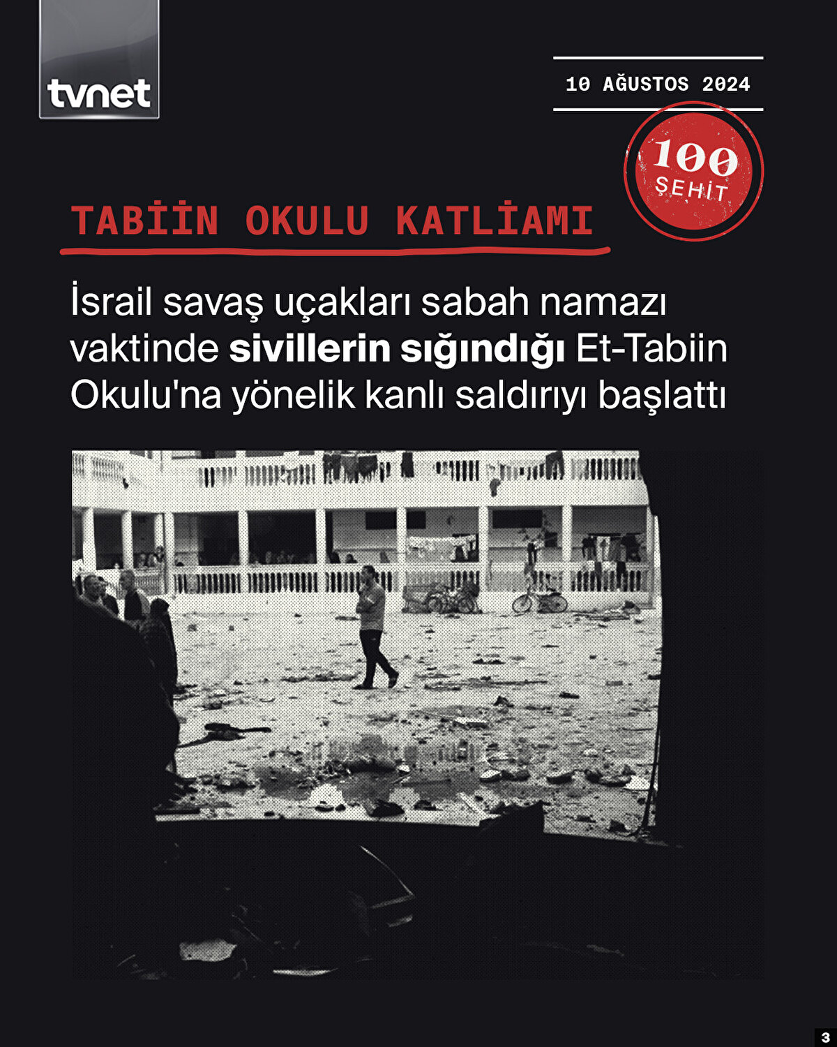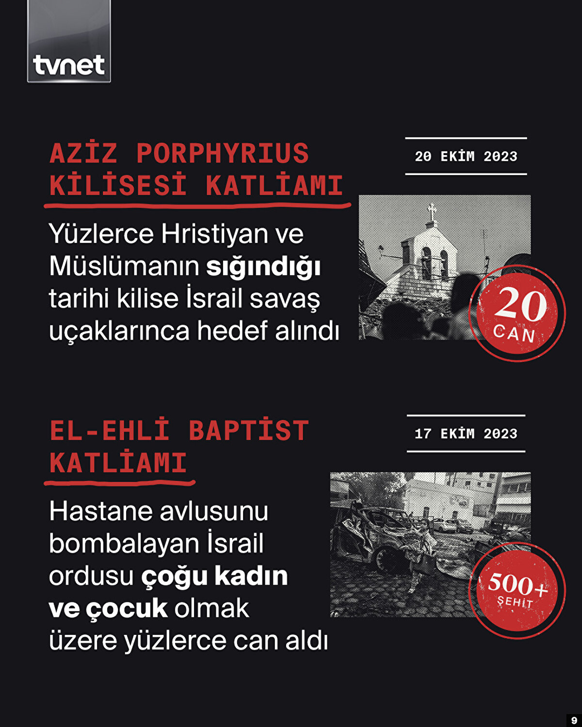İsrail, 7 Ekim 2023'ten bu yana, bir yıl boyunca Gazze'de Filistinlilere karşı insanlık tarihinin en acı soykırımlarından birini gerçekleştirdi. İnsanlığın ve tüm dünyanın gözleri önünde işlenen bu acı katliamda 17 bini çocuk, 11 bin 378'i kadın olmak üzere 41 bin 802 Filistinli öldü ve 100 bine yakın kişi yaralandı. Enkazlar altında ise hala binlerce can yatıyor.
