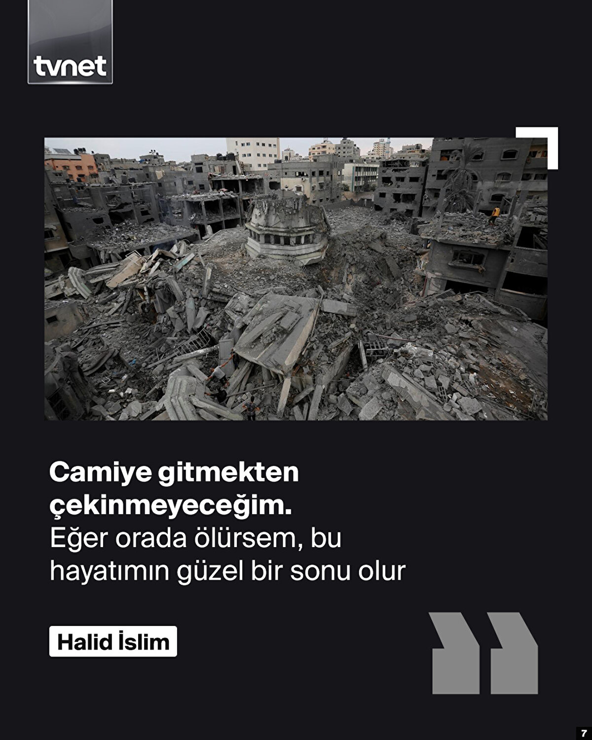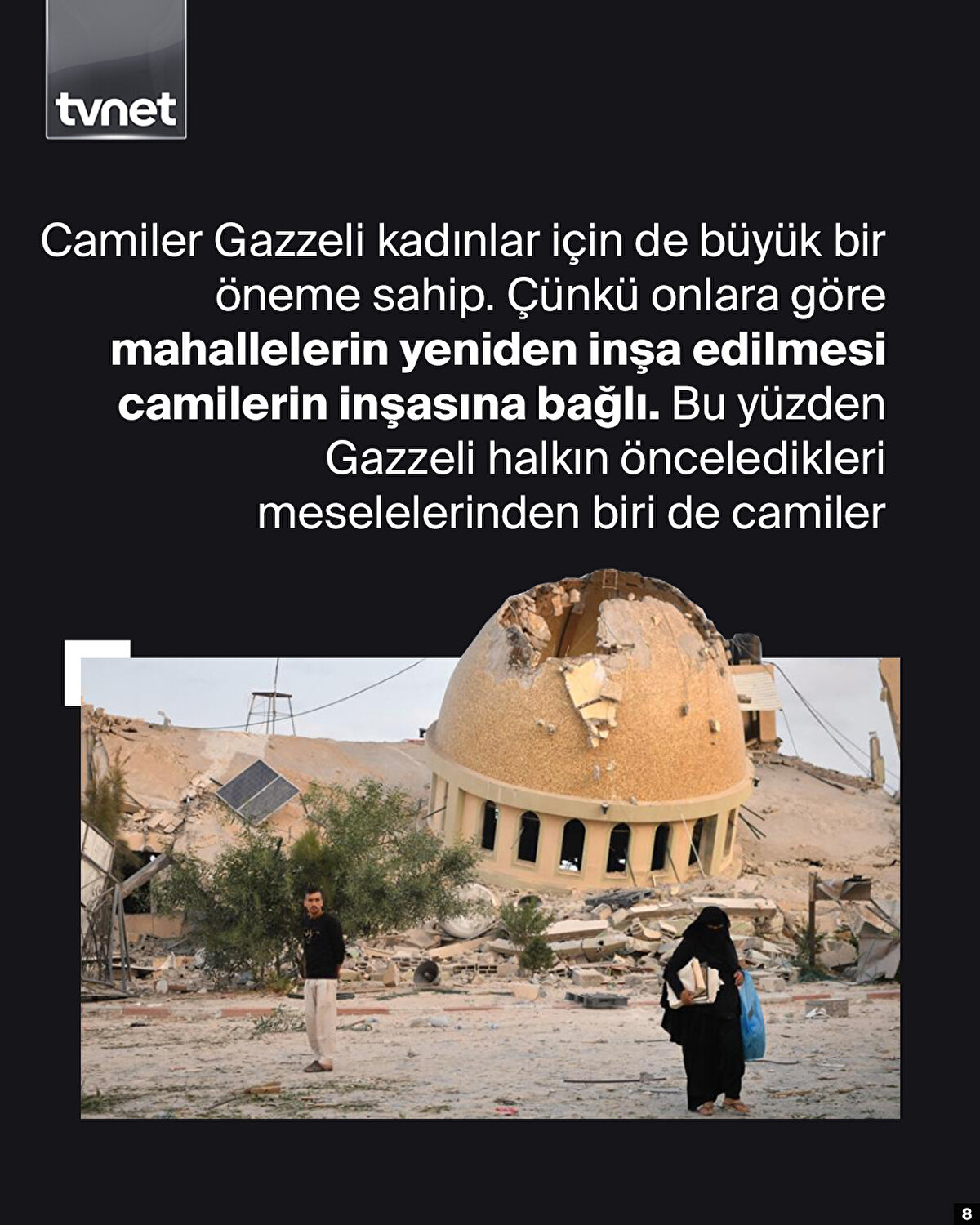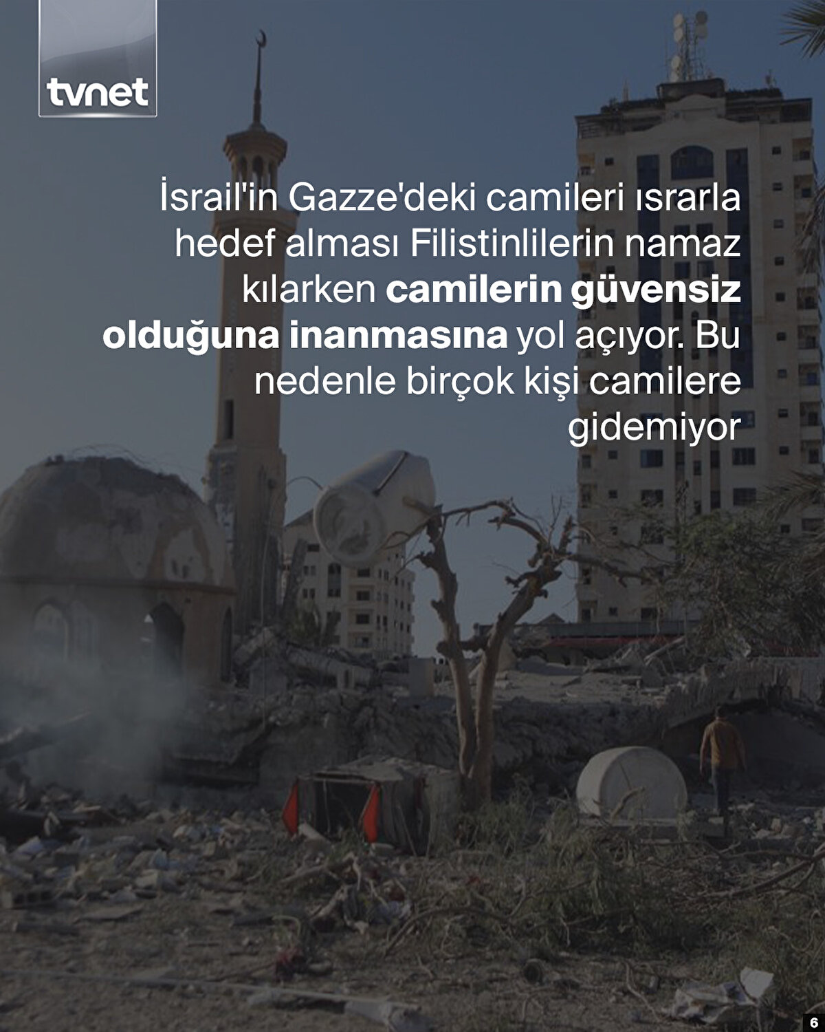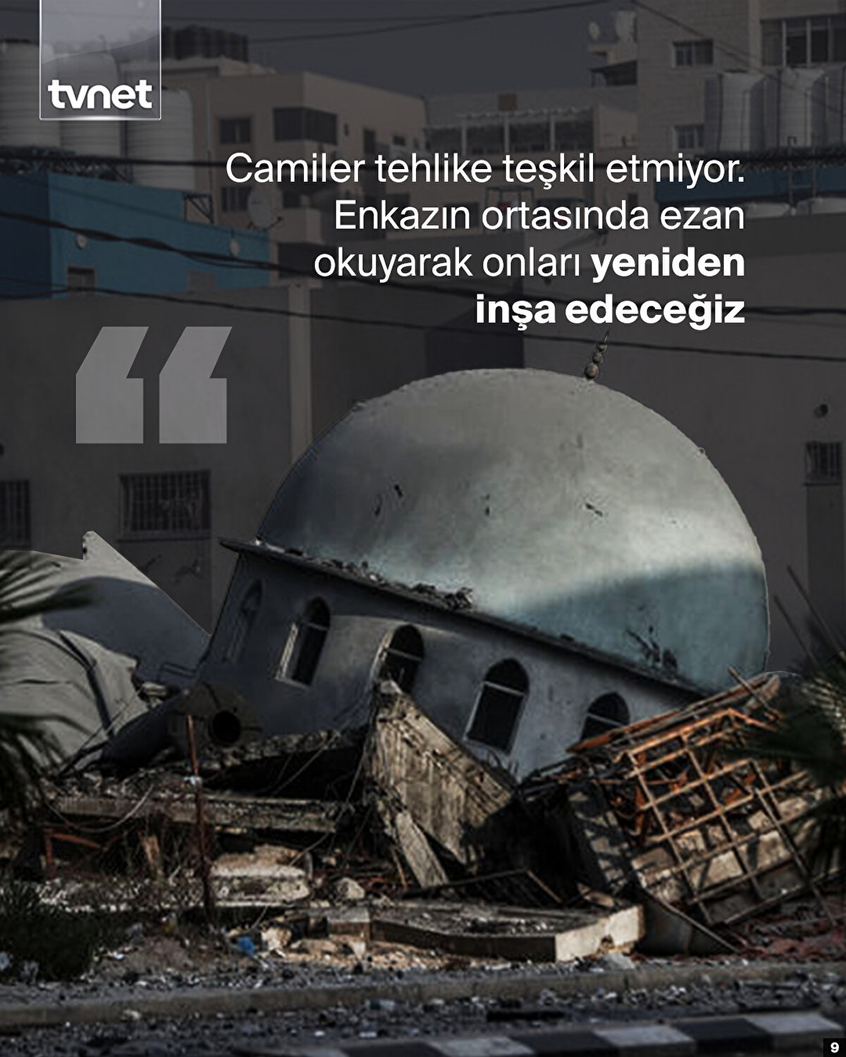 Gazze'de 7 Ekim'den bu yana 300'den fazla camii tahrip edildi. Gazzeli halkı yok etmek için her gün üzerlerine bomba yağdıran İsrail, aynı zamanda kültürel ve dini değerleri de yok etmeye uğraşıyor. Hz. Ömer'in hilafeti döneminde camiye çevrilen Büyük Ömer Camisi'ni de bombalayan İsrail'in bu yaptıkları Filistin mirasını yok etme planının bir parçası olarak görülüyor.