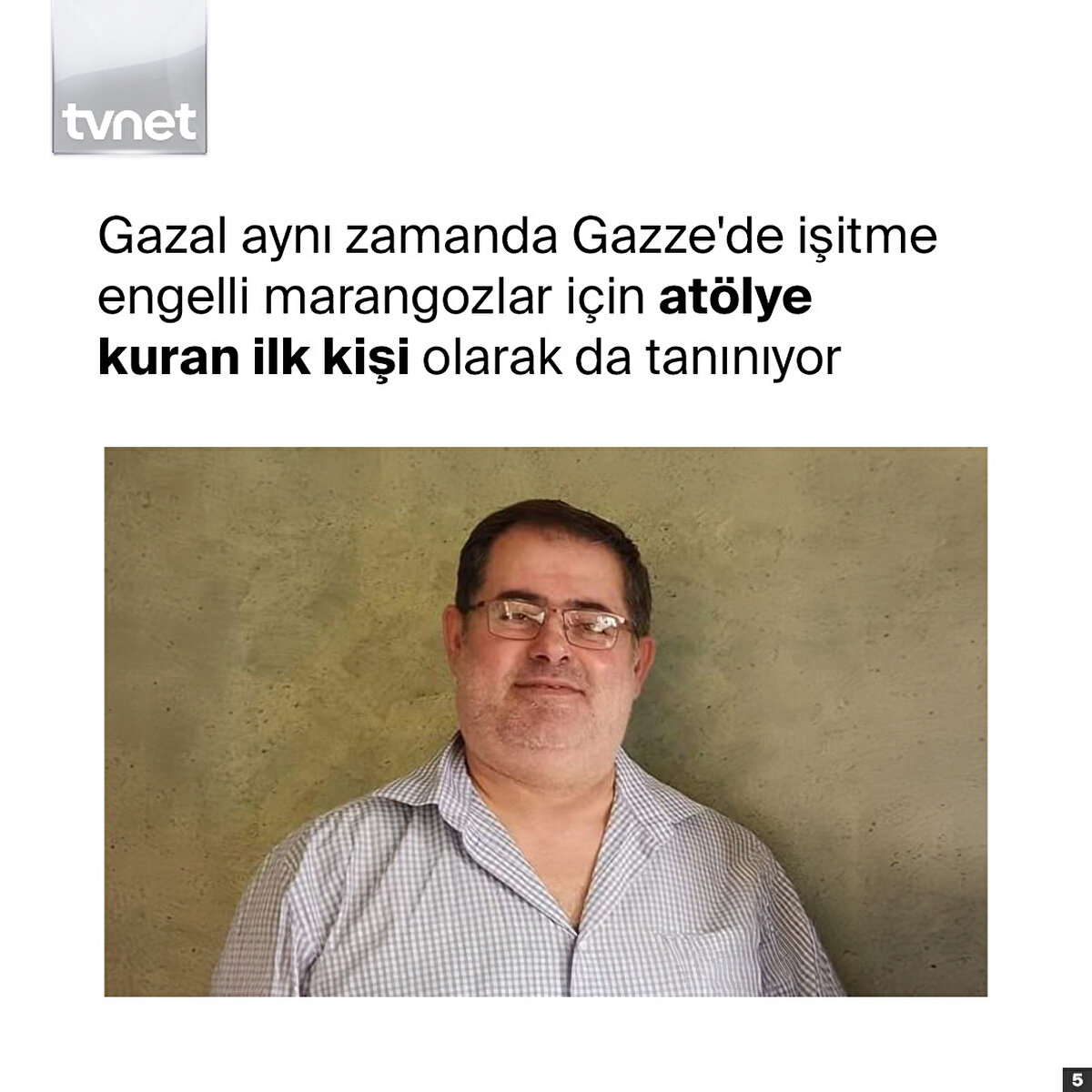 engelli haklarının savunuculuğunu yapan Gazel, Gazze'de 'sağırların manevi babası' olarak biliniyordu. 1966'da doğan Gazel, Gazze'de bulunan Atfaluna Sağır Çocuklar Derneği'nde el sanatları atölyelerinin önde gelen organizatörlerinden biriydi .
