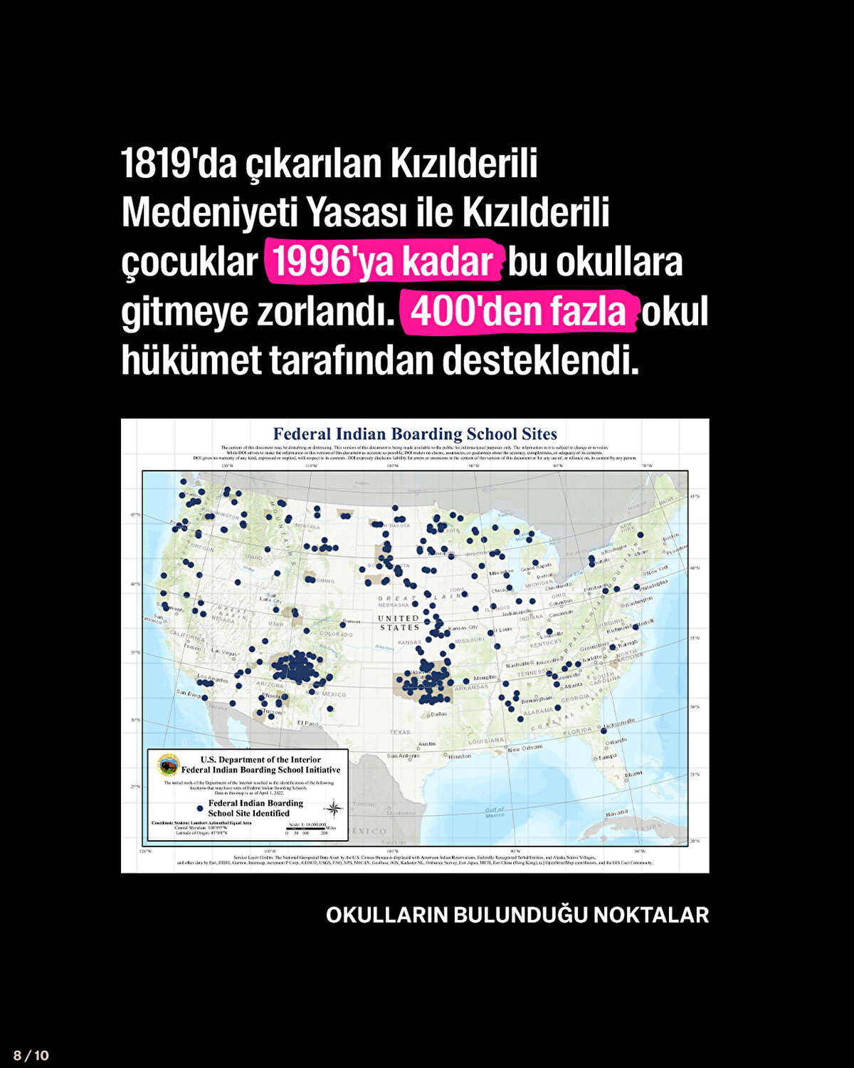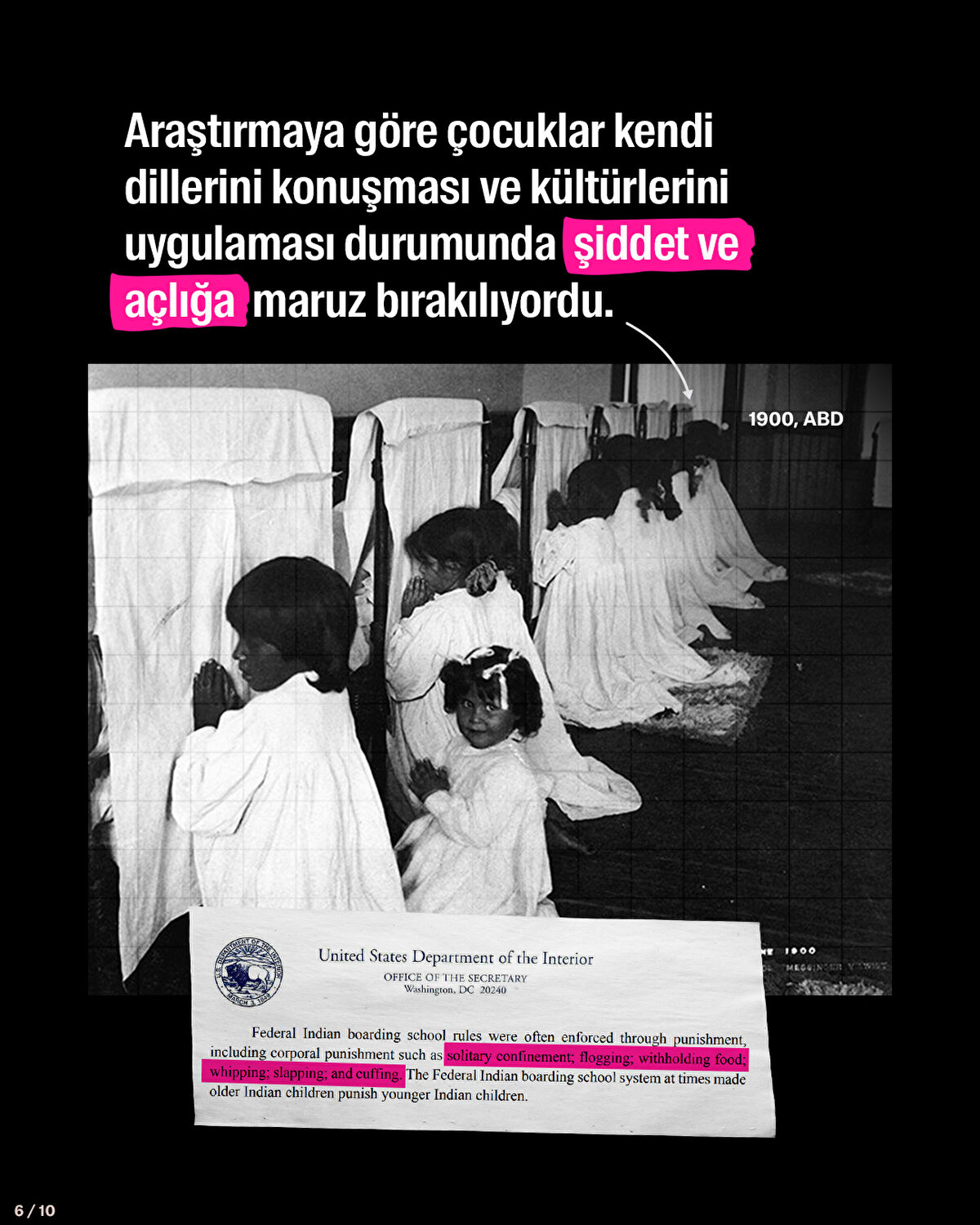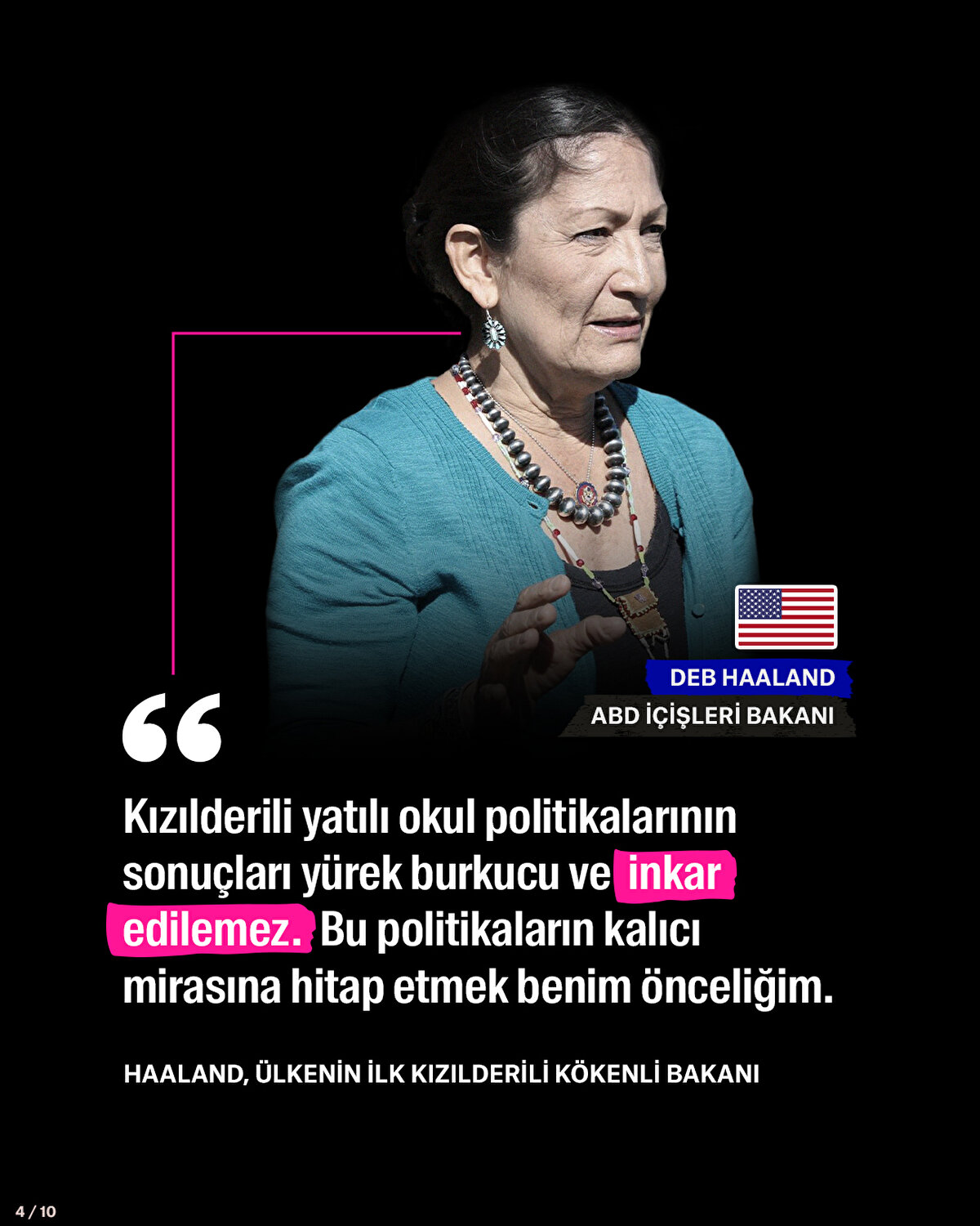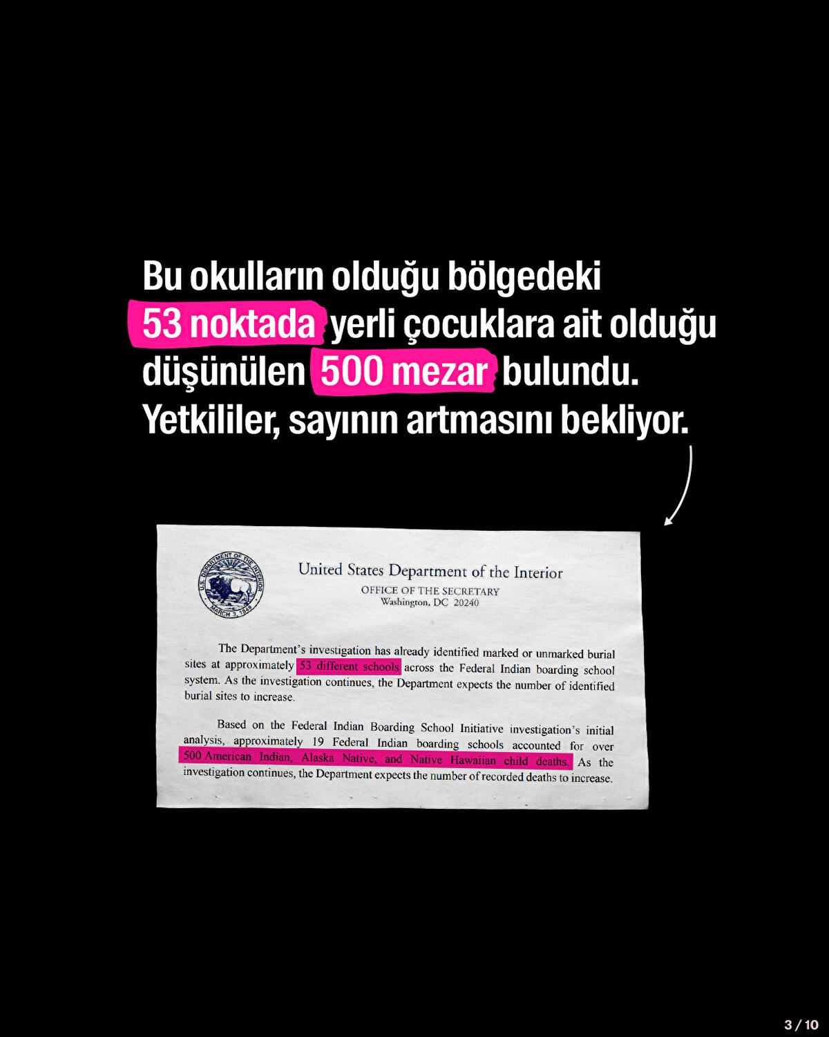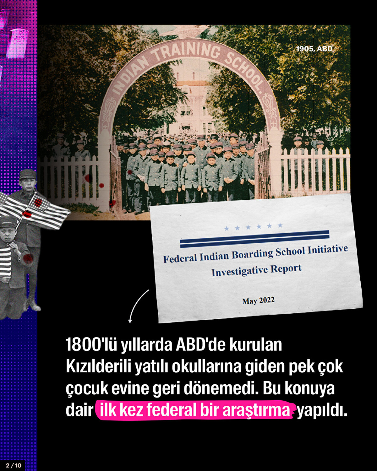 1800'lü yıllarda ABD'de kurulan Kızılderili yatılı okullarına giden pek çok çocuk evine geri dönemedi. Bu konuya dair ilk kez federal bir araştırma yapıldı. Bu okulların olduğu bölgedeki 53 noktada yerli çocuklara ait olduğu düşünülen 500 mezar bulundu. Yetkililer, sayının artmasını bekliyor.