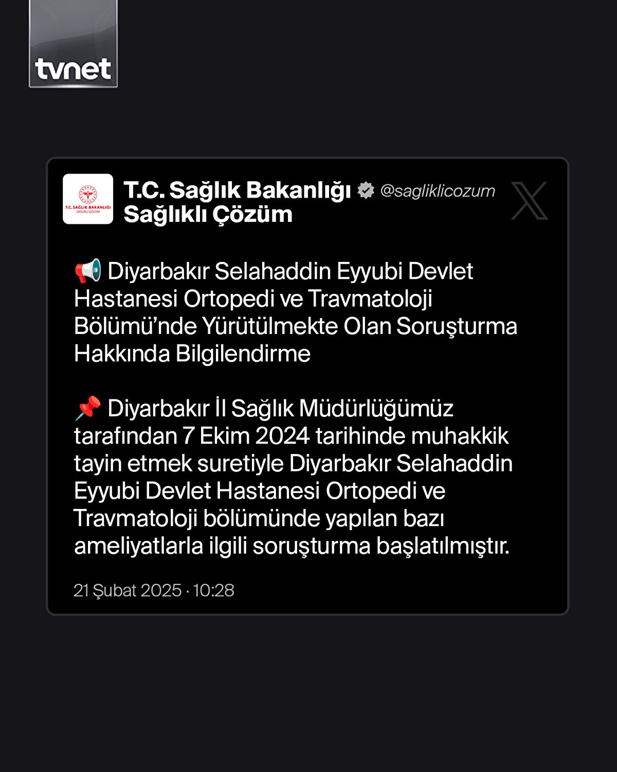 Diyarbakır'daki Selahaddin Eyyubi Devlet Hastanesi'nde kırığı olmadığı halde hastalara platin takıldığı iddia ediliyor. Doktorların hastaların şikayetlerini daha basit yöntemlerle çözebilecekken ameliyat yolunu tercih etmelerinin sebebi ise medikal şirketlerle yaptıkları çıkar ilişkileri