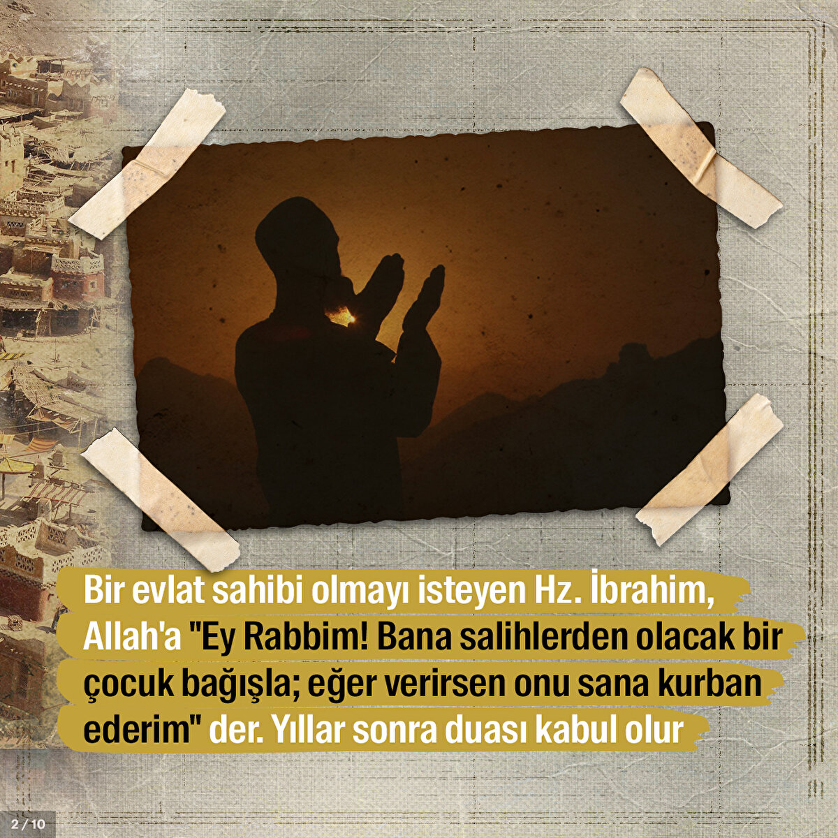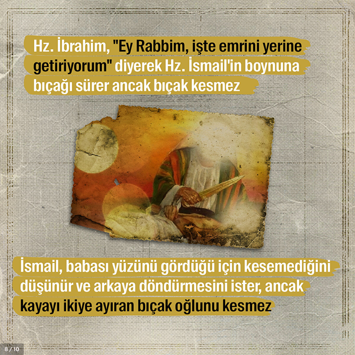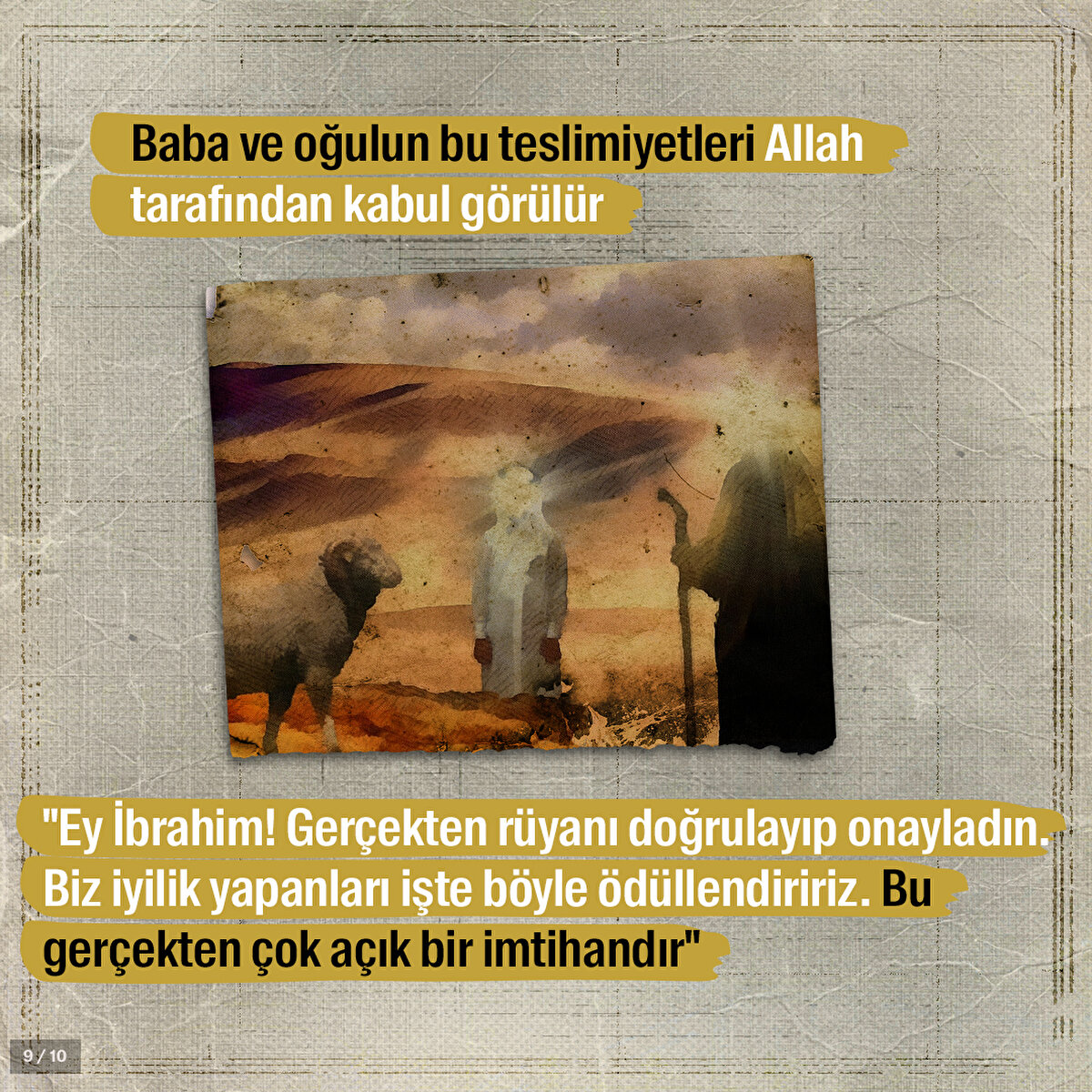Hz. İbrahim ile Hz. İsmail'in teslimiyetleri sonucunda kazandıkları bir imtihan. Kurban bayramı, Müslümanların yılda bir defaya mahsus yaptıkları ibadettir. Bu ibadetin ortaya çıkmasının arkasında ise büyük bir imtihan vardır.