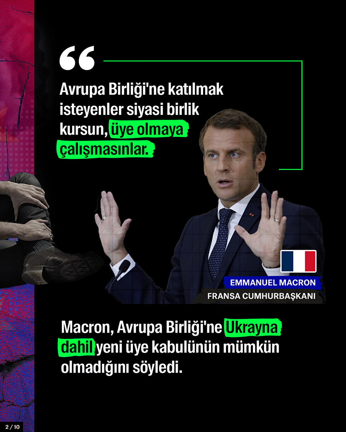 Macron, Avrupa Birliği'ne Ukrayna dahil yeni üye kabulünün mümkün olmadığını söyledi.