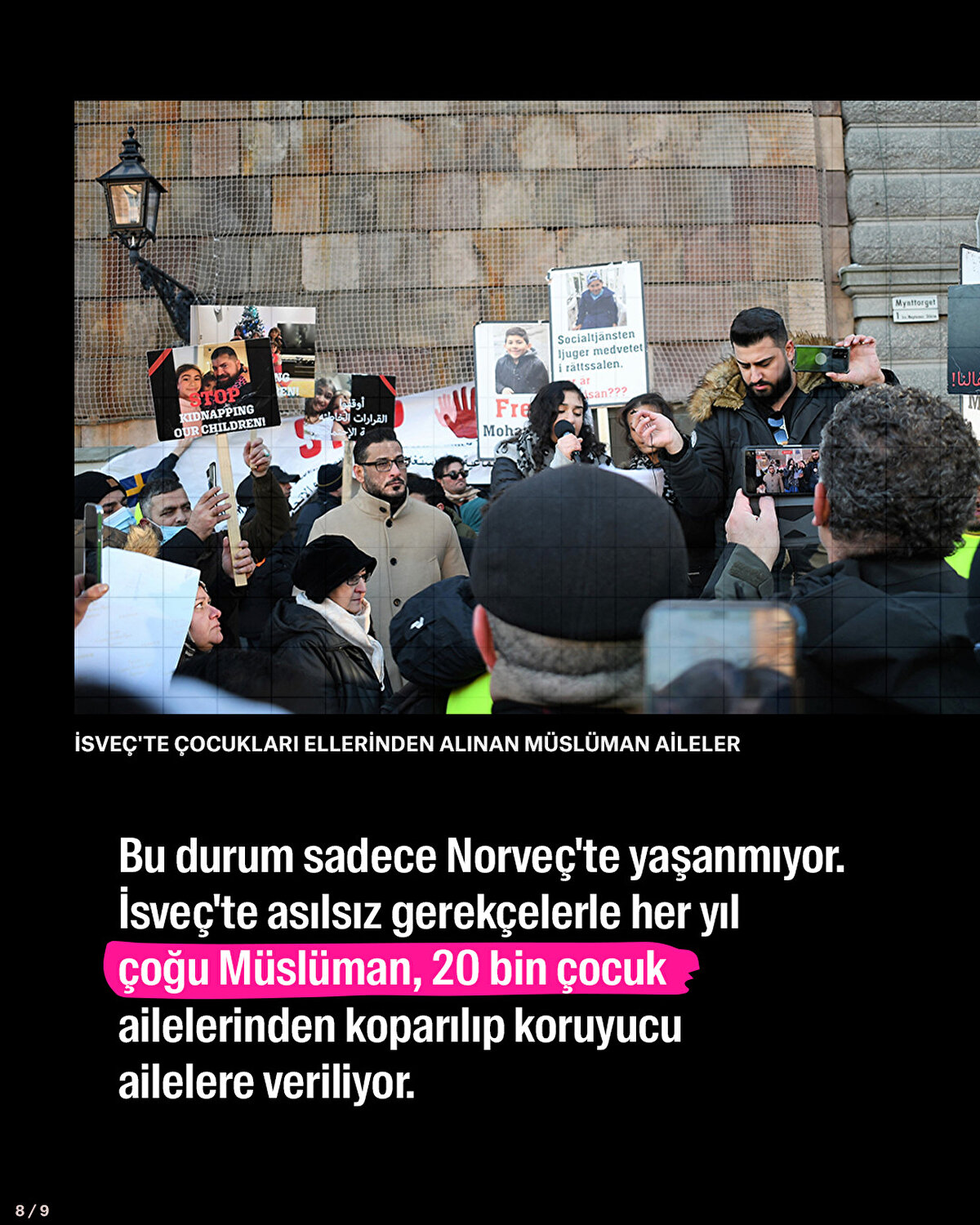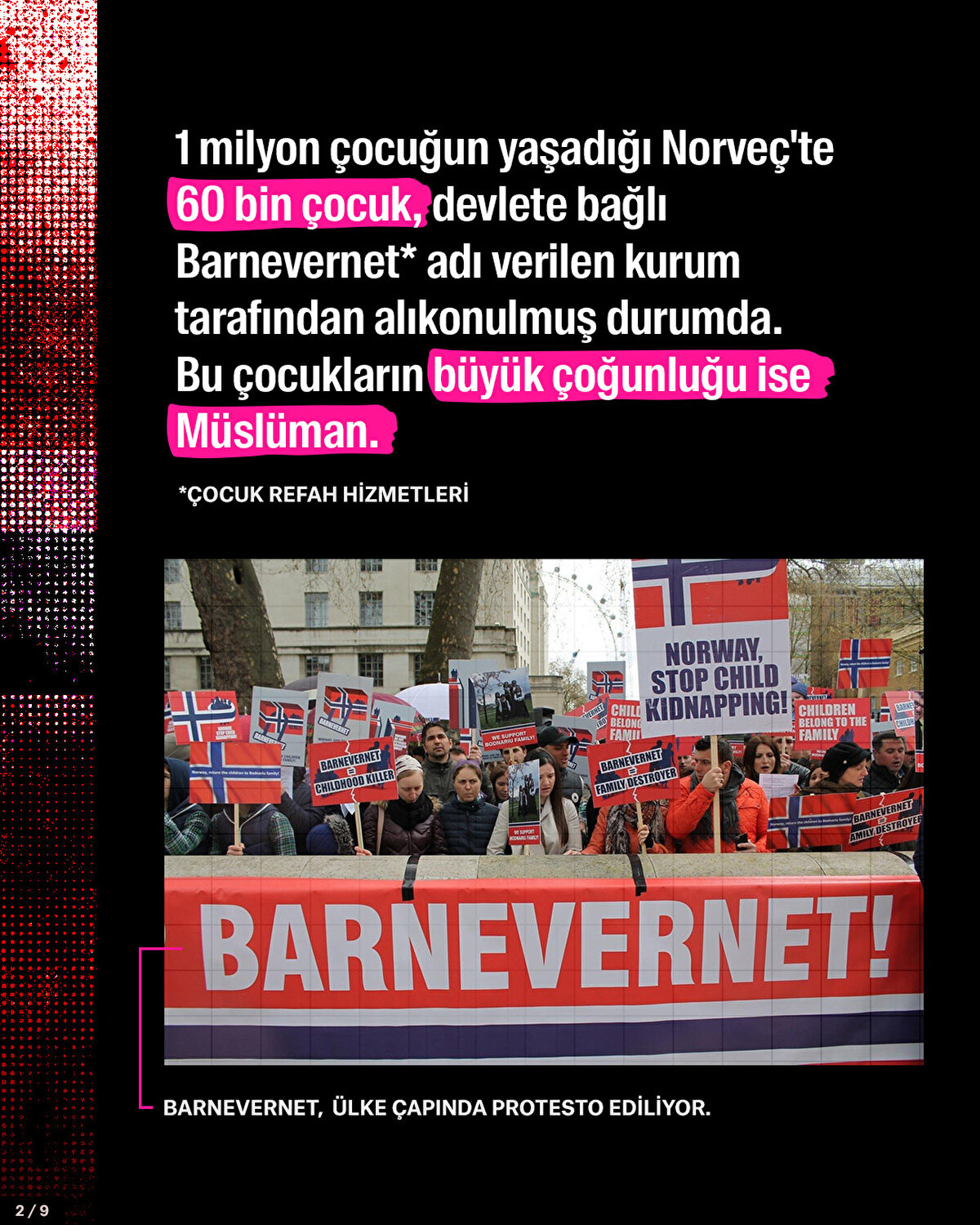1 milyon çocuğun yaşadığı Norveç'te 60 bin çocuk, devlete bağlı Barnevernet adı verilen kurum tarafından alıkonulmuş durumda. Bu çocukların büyük çoğunluğu ise Müslüman.