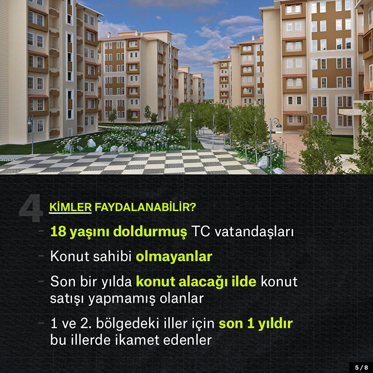 Çevre, Şehircilik ve İklim Değişikliği Bakanı Kurum ve Hazine ve Maliye Bakanı Nebati ile 'Orta Gelirliye Yönelik Konut Kampanyası'na ilişkin detayları açıkladı. Projeden yararlanmak isteyenlerin bir konuta sahip olmaması ve son bir yıl içinde konut alacağı ilde konut satışı yapmamış olması gerekiyor.