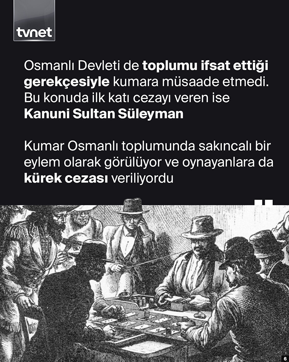 Osmanlı Devleti de toplumu ifsat ettiği gerekçesiyle kumara müsaade etmedi. Kumar Osmanlı toplumunda sakıncalı bir eylem olarak görülüyor ve oynayanlara da kürek cezası veriliyordu.