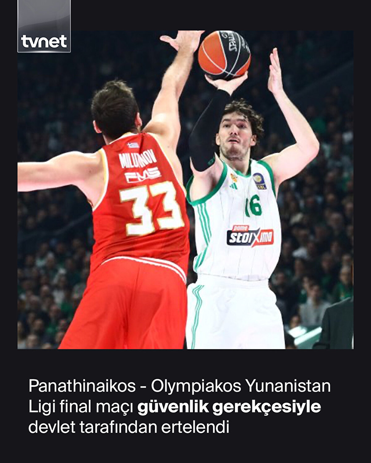 Panathinaikos - Olympiakos, Yunanistan Ligi final serisi 3. maçı güvenlik gerekçesiyle devlet tarafından ertelendi. Panathinaikos Başantrenörü Ergin Ataman, maç sırasında rakip takım taraftarlarının Türkiye'ye yönelik küfürlü tezahüratına sert tepki göstermişti.