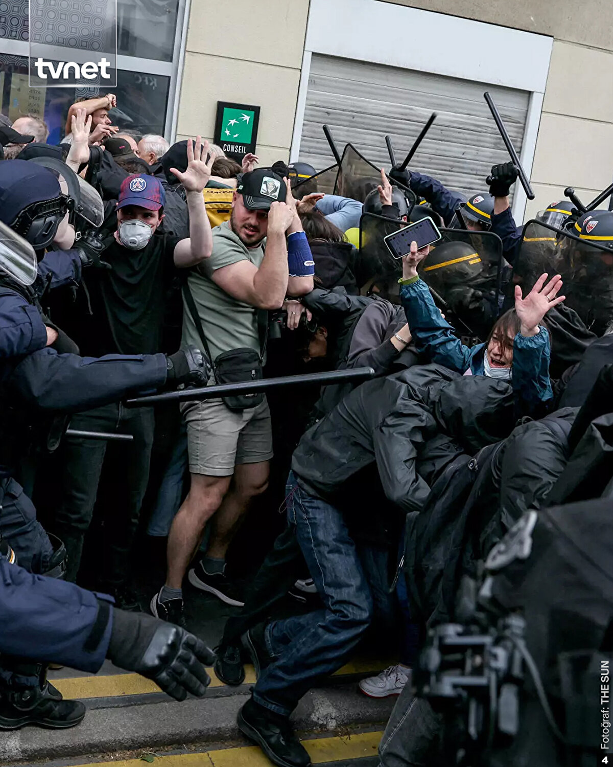 Fransa'da 1 Mayıs Emek ve Dayanışma Günü kutlamalarında arbede yaşandı. Fransa'nın en önde gelen işçi sendikasının öncülük ettiği gösterilere başkent Paris'te binlerce kişi katıldı. Yürüyüş sırasında polis ile göstericiler arasında arbede çıktı. Siyah giyimli bir grup gösterici, çevredeki banka şubelerine ve mağazalara saldırdı. Polis, göstericilere, göz yaşartıcı gazla müdahale etti. Çıkan olaylarda 15 polis yaralandı, ülke genelinde yaklaşık 50 kişi de gözaltına alındı. İşçi sendikası Fransa genelindeki gösterilere 200 binden fazla kişinin katıldığını açıkladı.