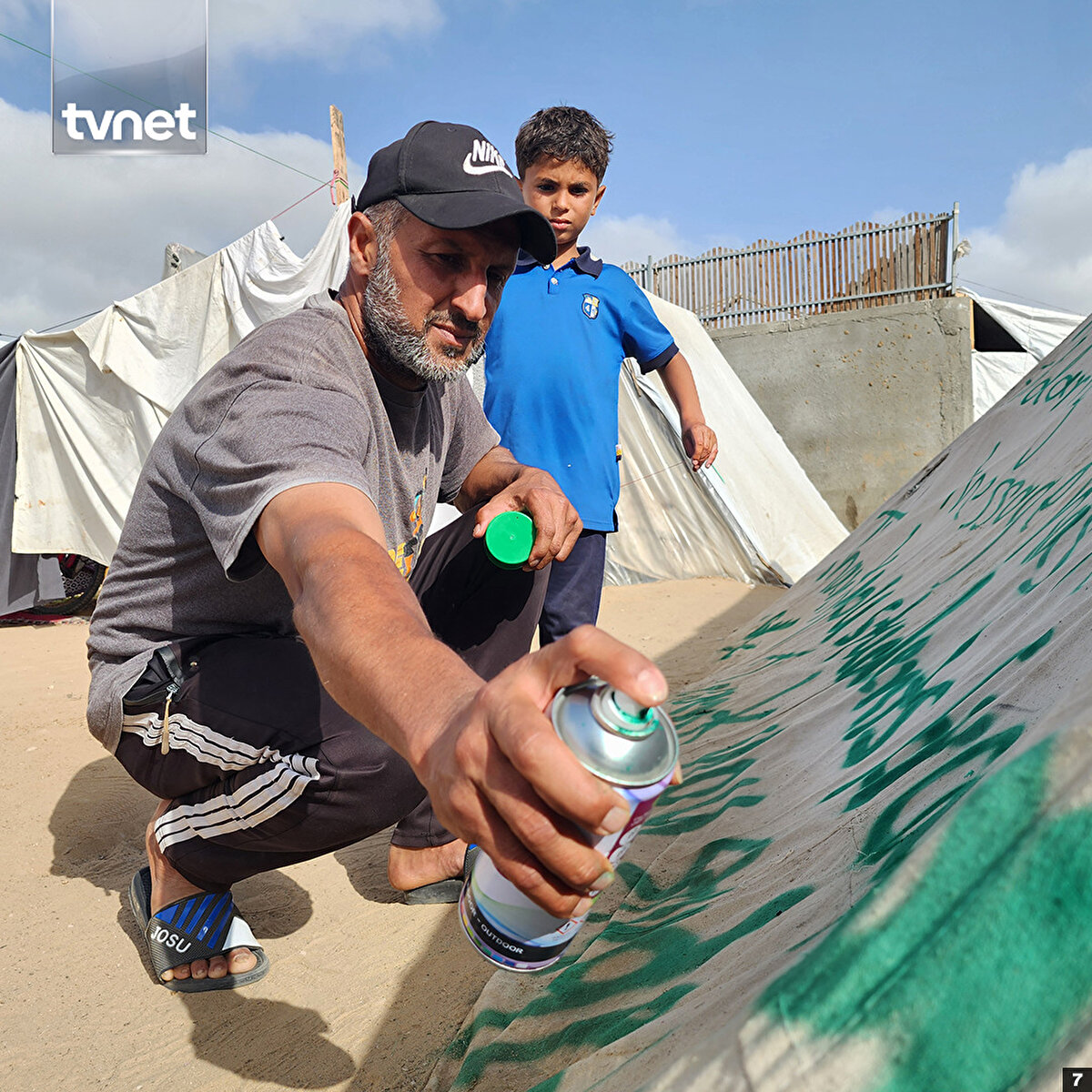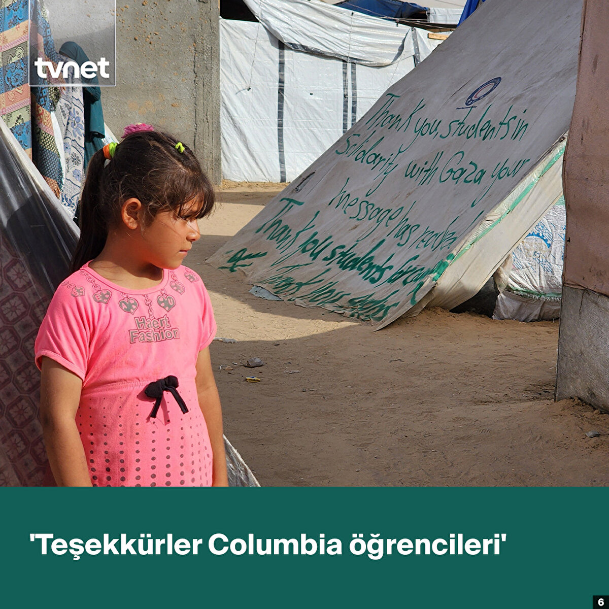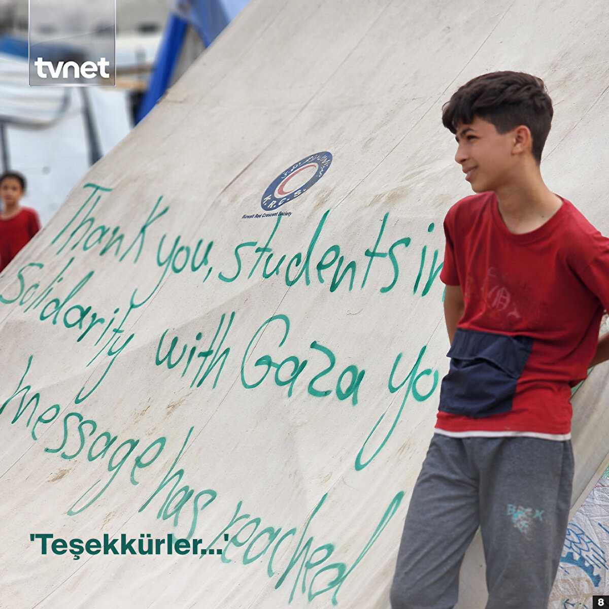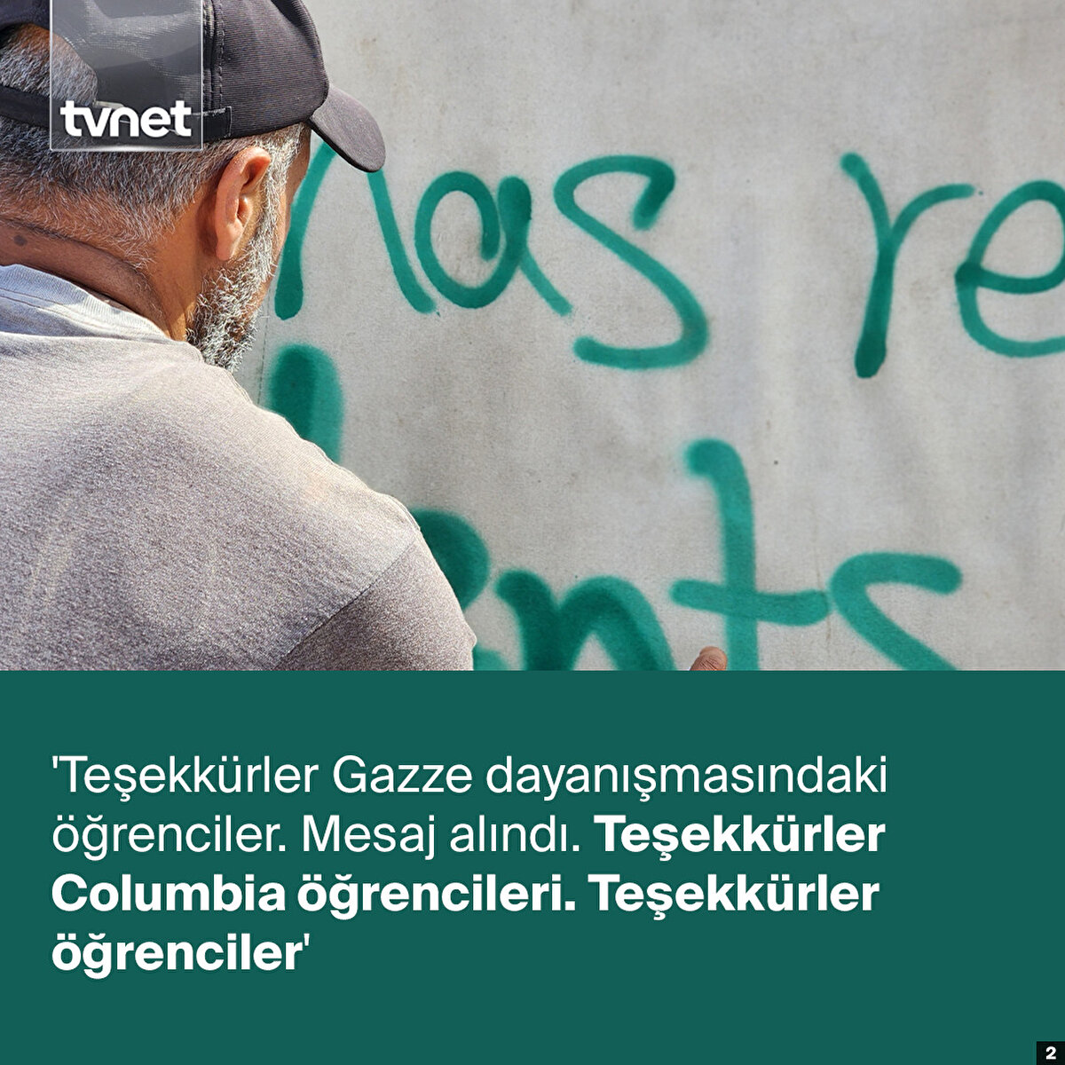 Refah'a sığınan 43 yaşındaki Ebu Yusuf Hamed, ABD'de Columbia Üniversitesinde başlayan ve dünya genelinde birçok üniversiteye yayılan Gazze'ye destek gösterilerine sessiz kalmadı.Hamed, Refah'taki çadırların üzerine sprey boyayla İngilizce “Gazze ile dayanışma içinde olan öğrencilere teşekkür ediyoruz. Mesaj ulaştı”, “Teşekkürler ABD üniversiteleri” ve “Teşekkürler Columbia öğrencileri” ibarelerini yazdı.