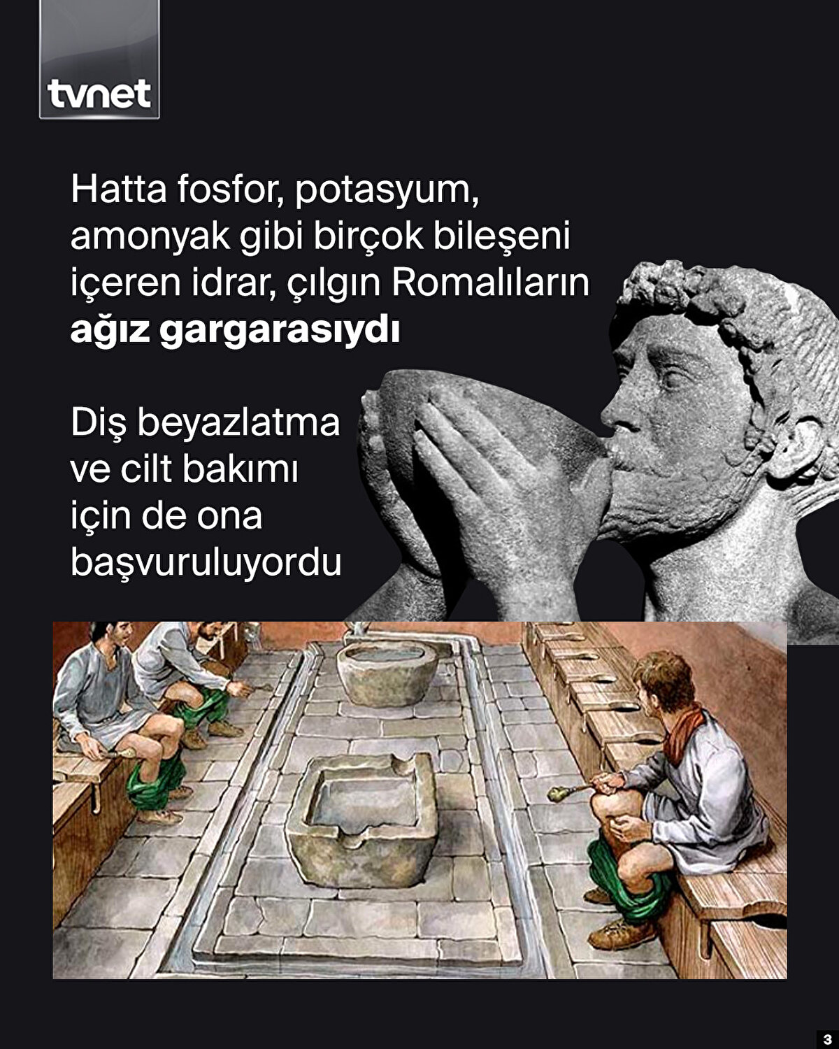 Biz üzerine sifonu çekip uzaklaşırken Antik Roma'da idrar çok değerliydi. Öyle ki dişleri beyazlattığını ve çürüklerden koruduğunu düşünen Romalılar idrarı ağız gargarası olarak kullanıyordu. Peki 'Pecunia non olet' sözünü daha önce duymuş muydunuz? 'Para kokmaz' anlamına gelen Latince ifadenin ilginç hikayesini anlattık.
