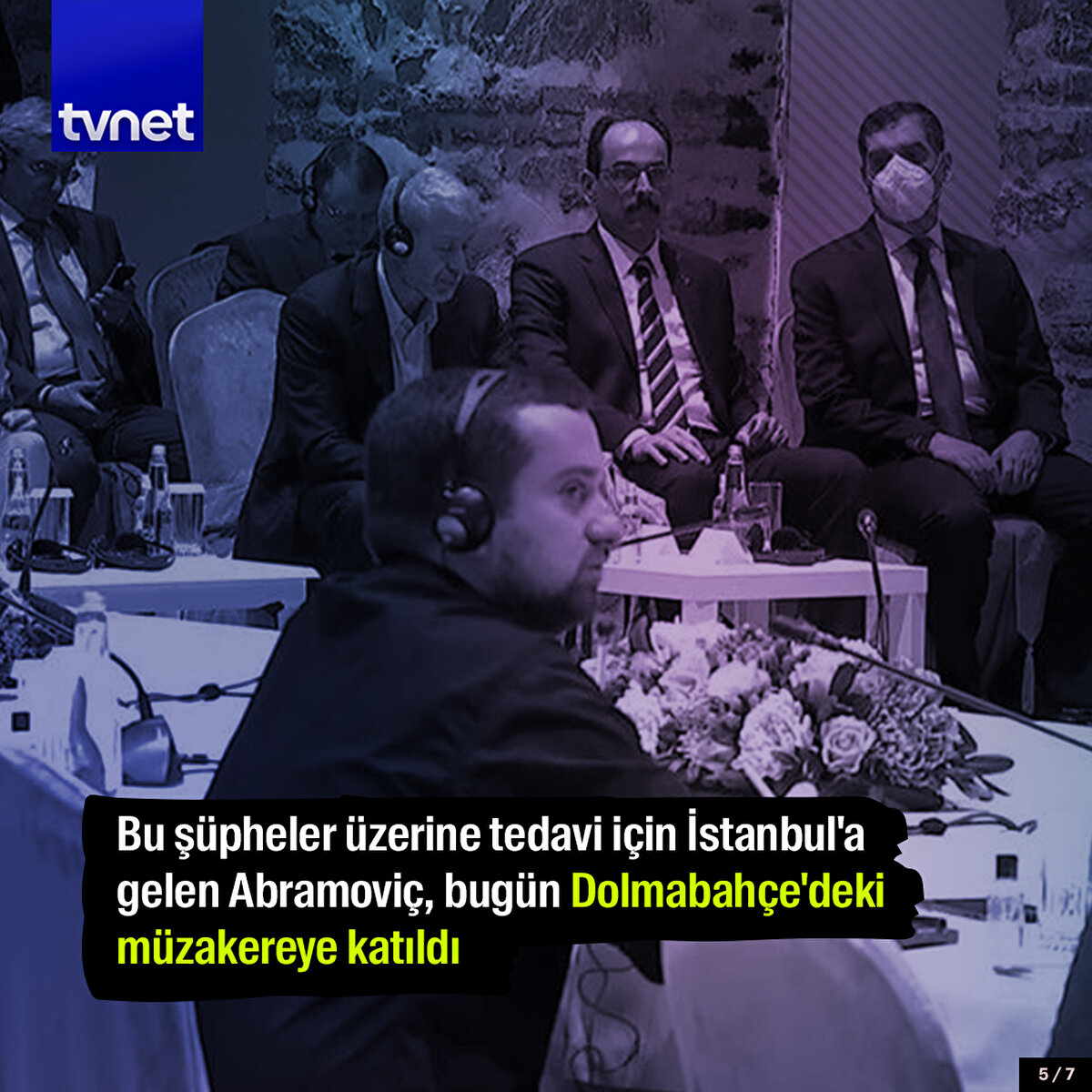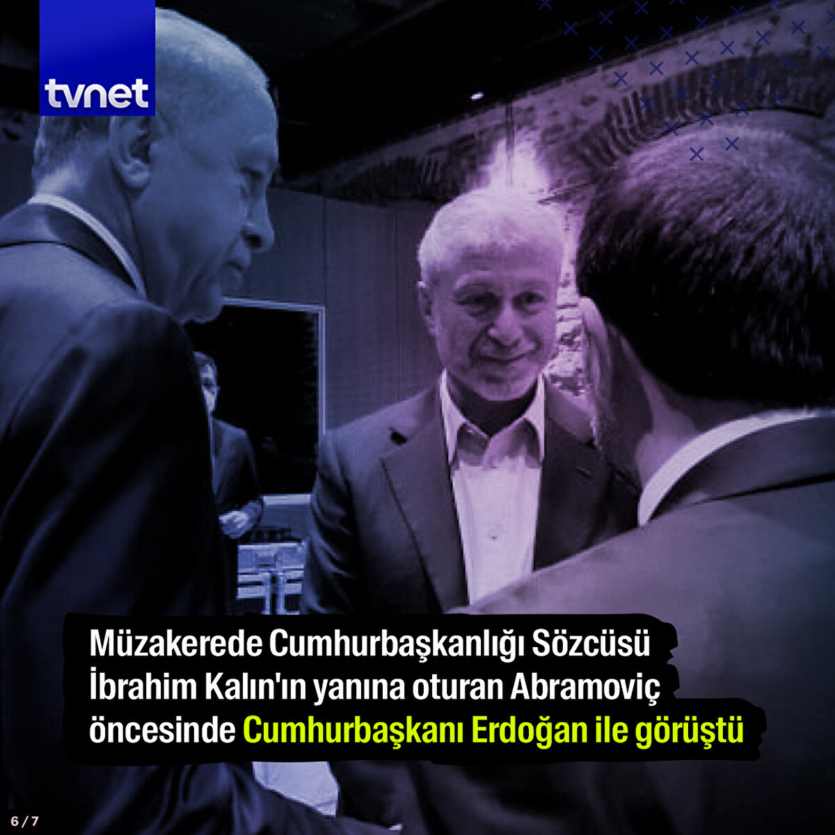Müzakerede Cumhurbaşkanlığı Sözcüsü İbrahim Kalın'ın yanına oturan Abramoviç öncesinde Cumhurbaşkanı Erdoğan ile görüştü.