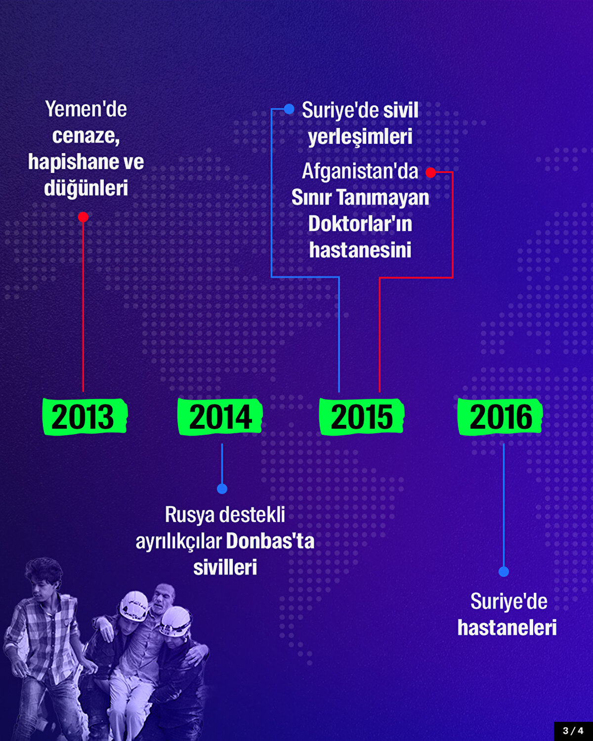 'Rusya, sivilleri hiçe sayıyor' diyen ABD, Rusya gibi bugüne kadar pek çok sivil yaşam alanını bombaladı.