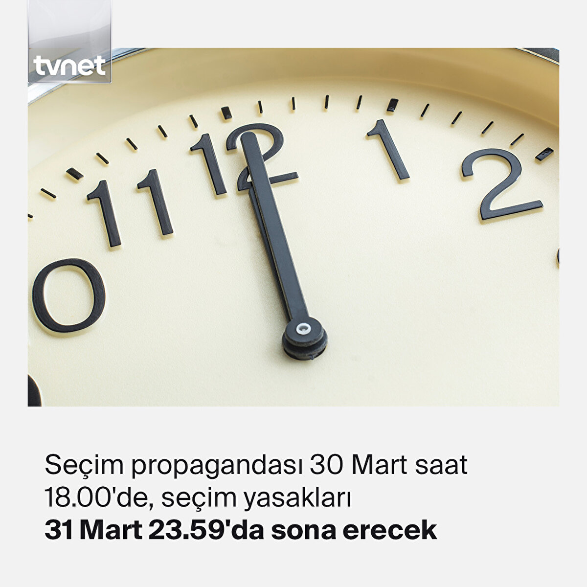 31 Mart'ta yapılacak yerel seçimler için propaganda serbestliği ve bazı seçim yasakları başladı. Bugünden itibaren kamuoyu araştırmaları, anketler, tahminler vatandaşın oyunu etkileyecek biçimde yayın yapılamayacak. Propaganda serbestliği 30 Mart saat 18.00'de, seçim yasakları 31 Mart saat 23.59'da sona erecek.