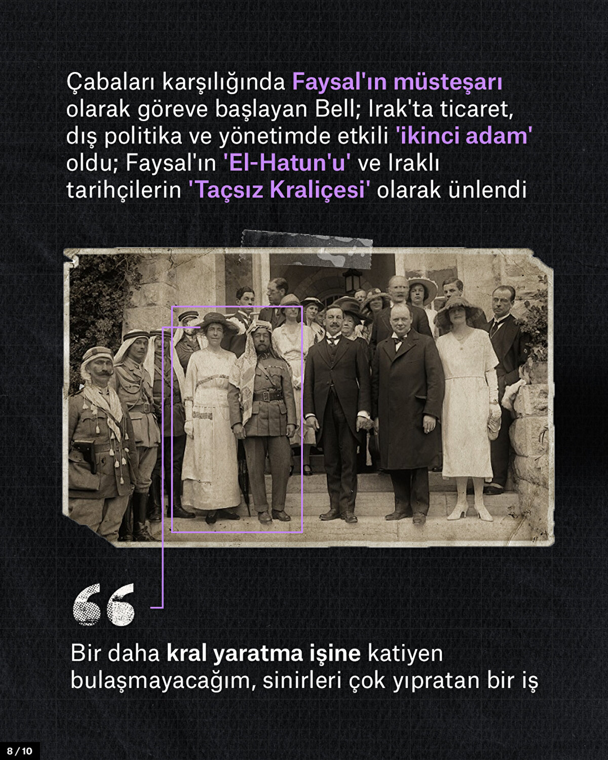 1868'de İngiltere'de zengin bir ailenin kızı olarak dünyaya gelen Bell; İngiliz geleneklerine bağlı, sıkı bir eğitim gördü. Arkeoloji merakı ile Ortadoğu'ya sürüklenen Bell, Suriye'den Konya'ya uzanan arkeolojik kazılara katıldı; Arap aşiretlerine ve bedevi yaşamına ilgi duyuyordu. İlgisinin kaynağı yalnızca bölgesel zenginlik değildi; Bell, dağılmakta olan Osmanlı'yı takip etmek ve İngilizlerin Ortadoğu siyasetinde etkin olmak istiyordu.
