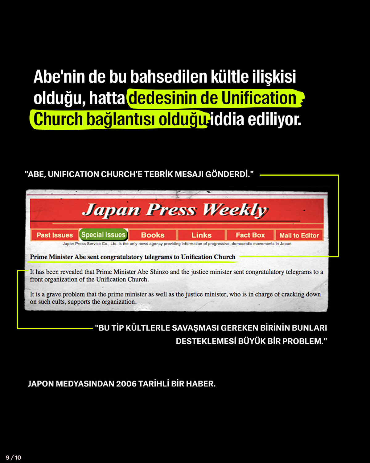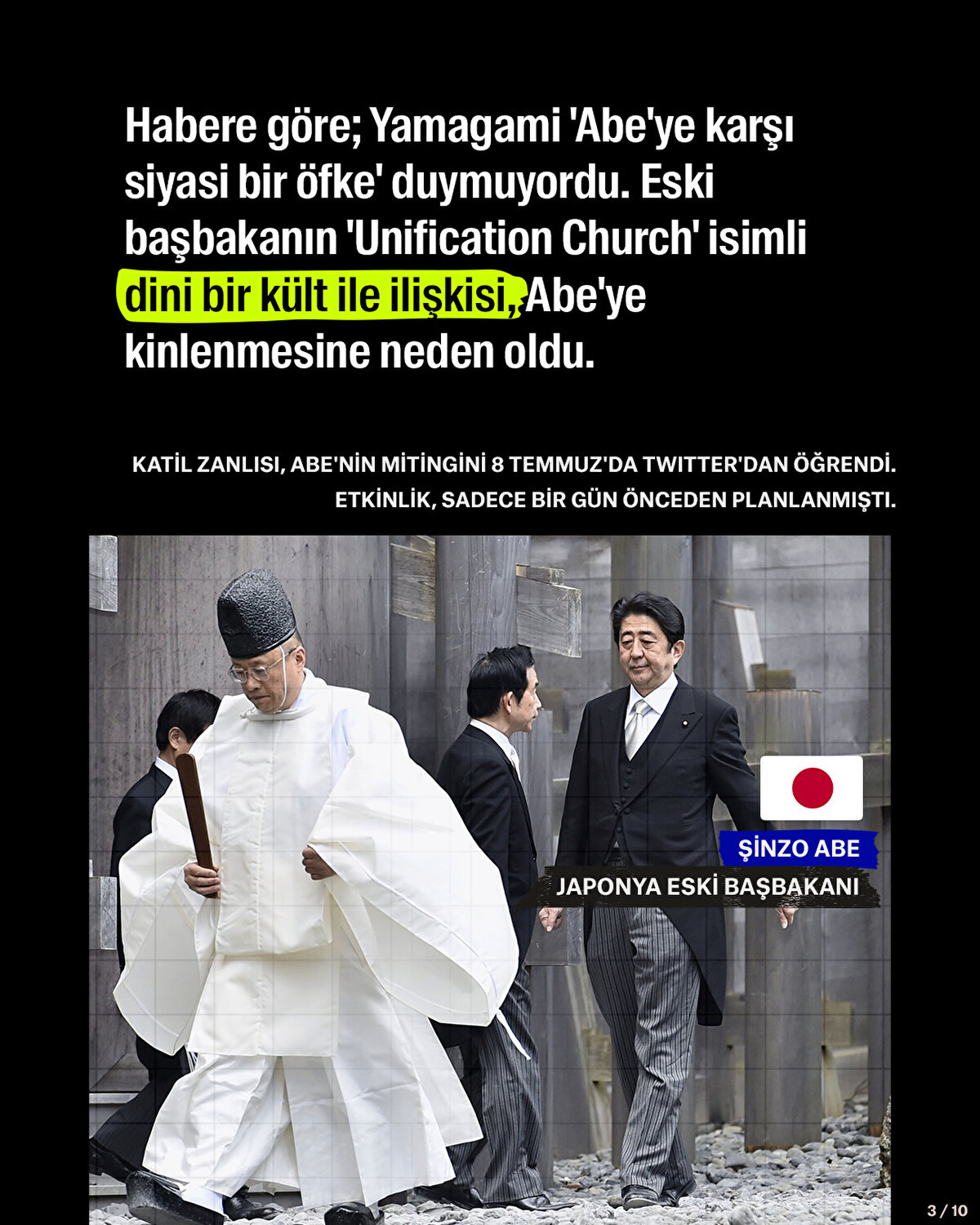 Japonya Eski Başbakanı Şinzo Abe Tetsuya Yamagami tarafından suikaste uğramıştı. Japonya Abe'nin dini bir külte mensup olduğu için öldürüldüğü ortaya konmuştu. Peki, Abe gerçekten dini bir külte yakın olduğu için mi öldürüldü?