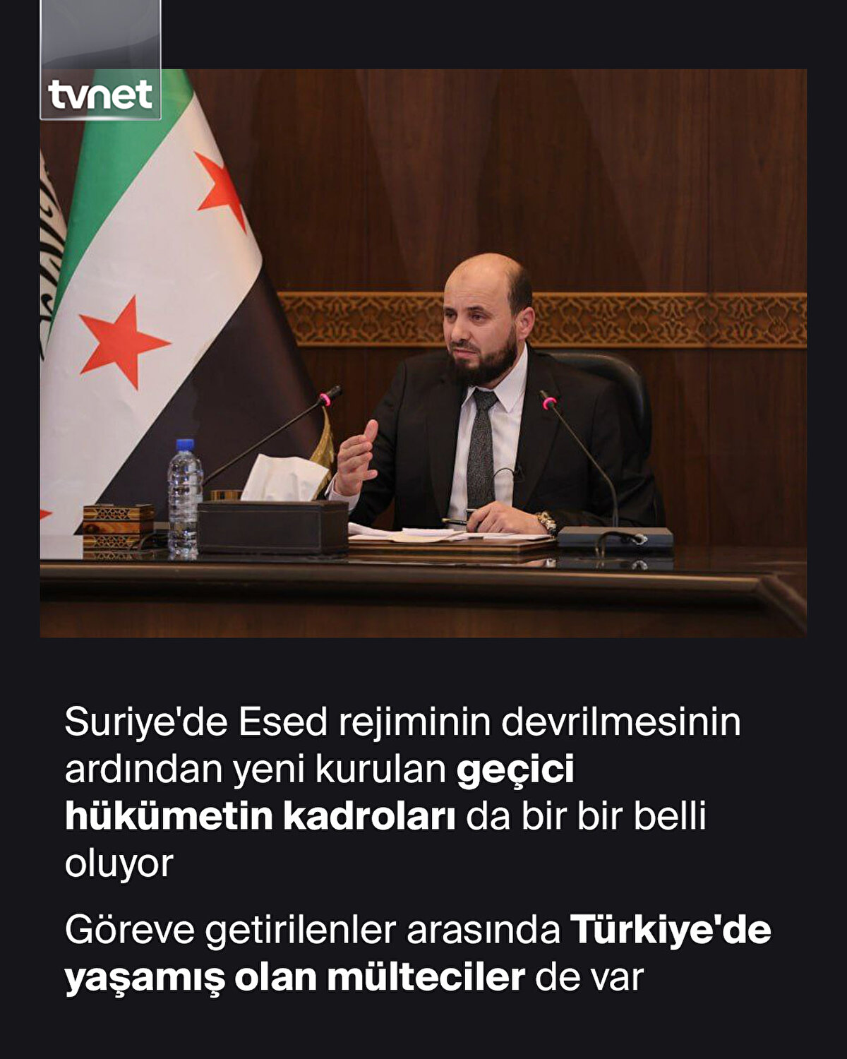 Suriye'de Esed rejiminin devrilmesinin ardından yeni kurulan geçici hükümetin kadroları da bir bir belli oluyor. Göreve getirilenler arasında Türkiye'de yaşamış olan mülteciler de var