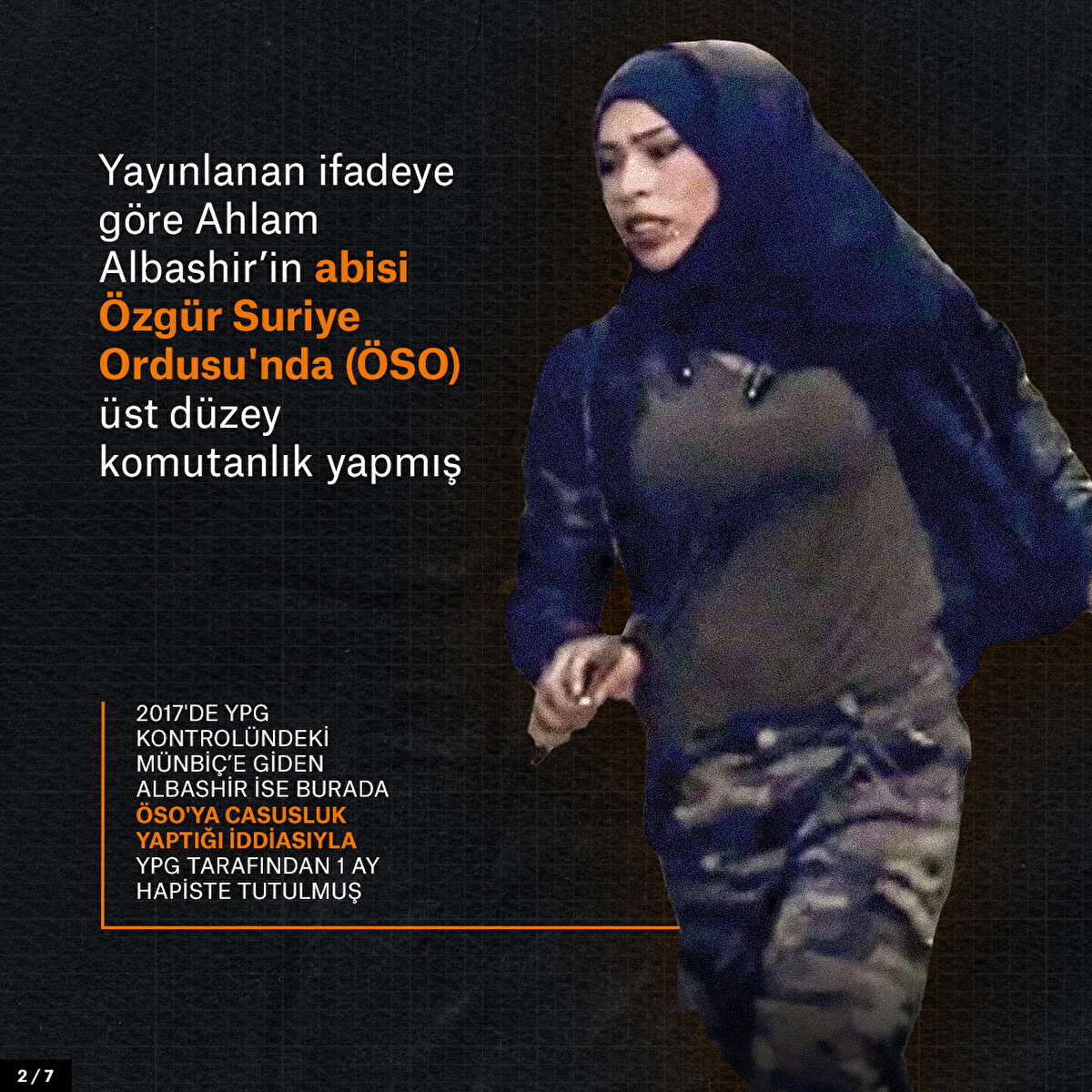 Yayınlanan ifadesine göre Ahlam Albashir'in abisi Özgür Suriye Ordusu'nda (ÖSO) üst düzey komutanlık yapmış. 2017'de YPG kontrolündeki Münbiç'e giden Albashir ise burada ÖSO'ya casusluk yaptığı iddiasıyla YPG tarafından 1 ay hapiste tutulmuş