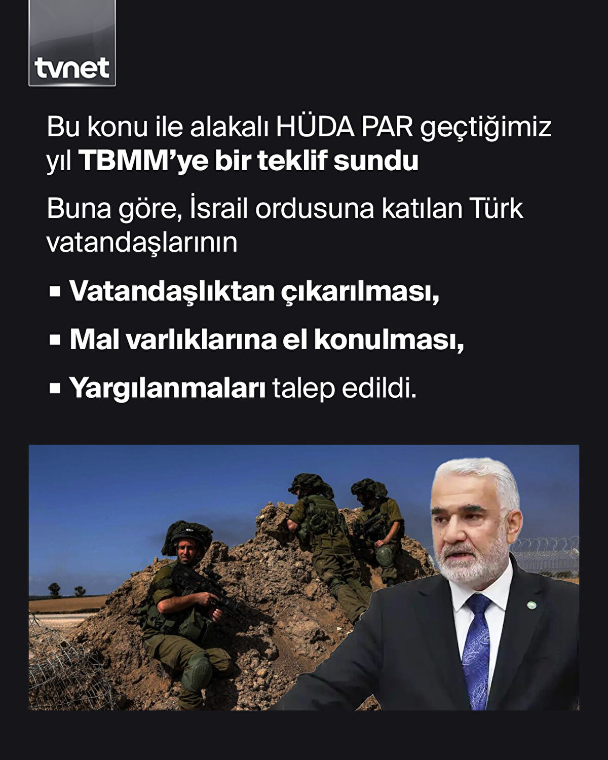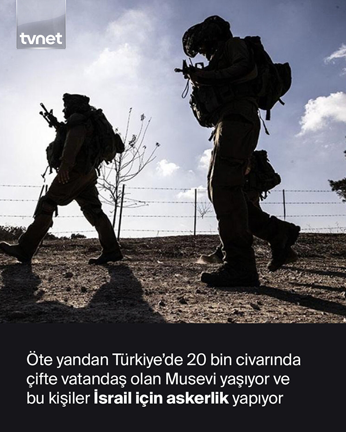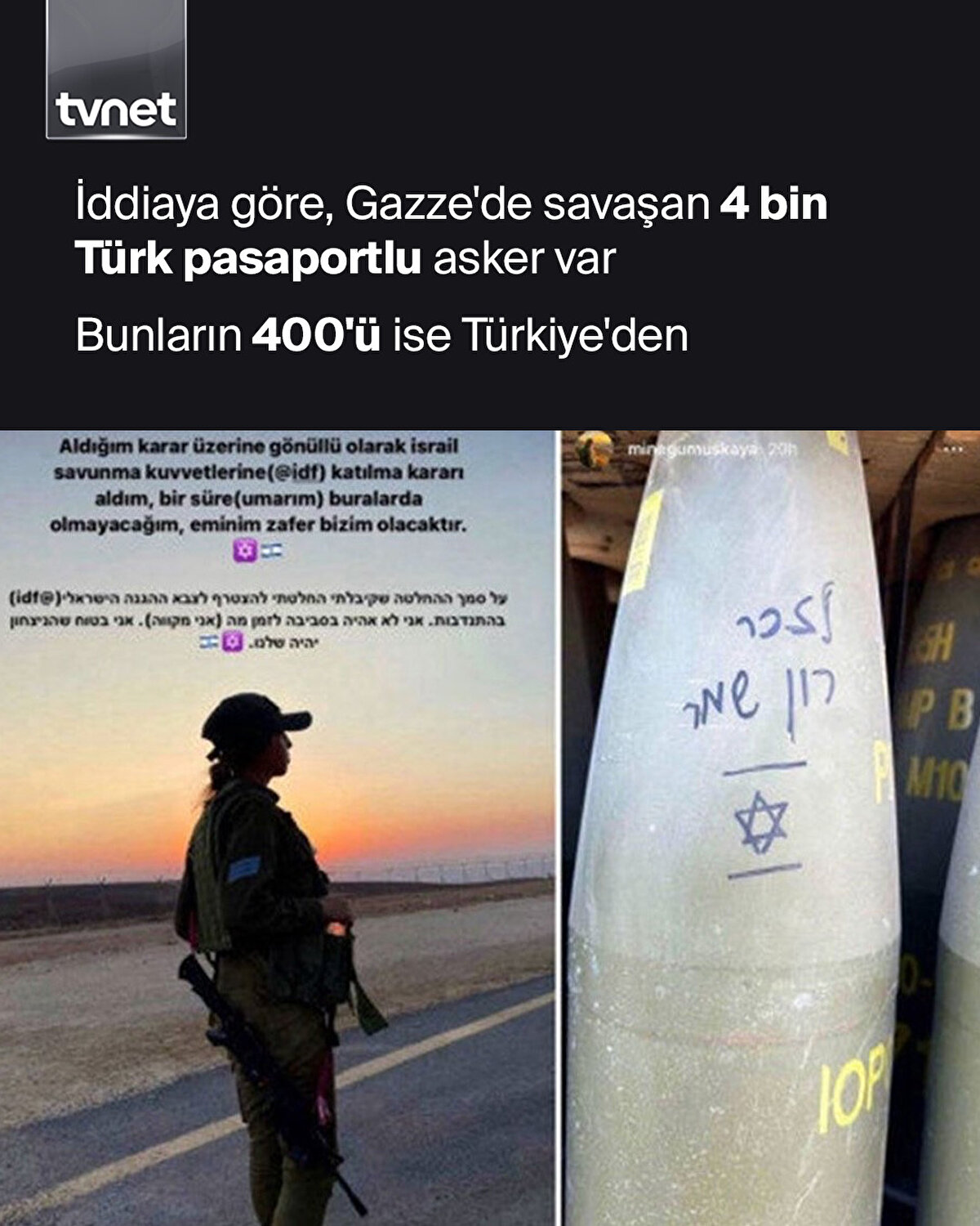 Türkiye'de yaklaşık 10 bin Yahudi vatandaş yaşıyor ve bunlardan bazıları hem Türk hem İsrail vatandaşı. İddiaya göre, Gazze'de savaşan 4 bin Türk pasaportlu asker var ve bunların 400'ü de Türkiye'den.