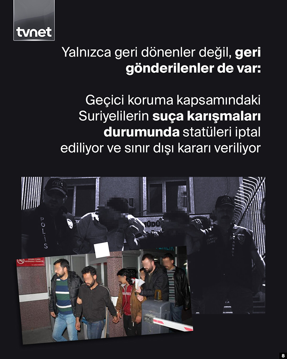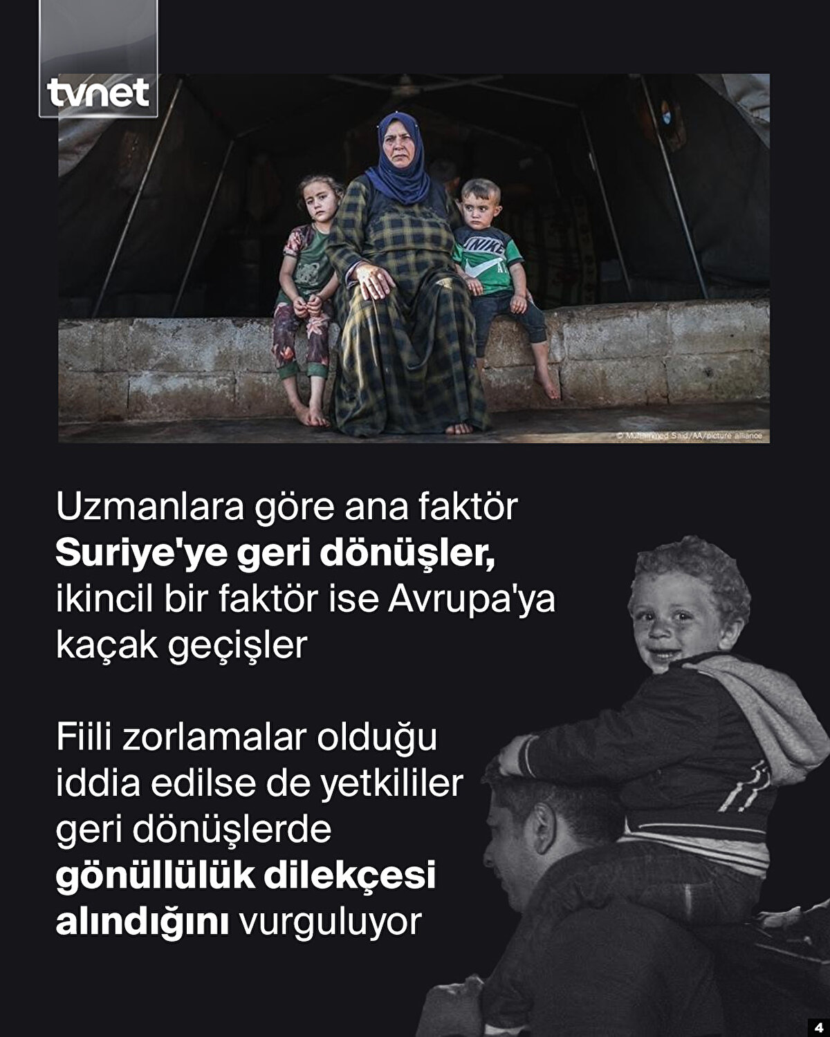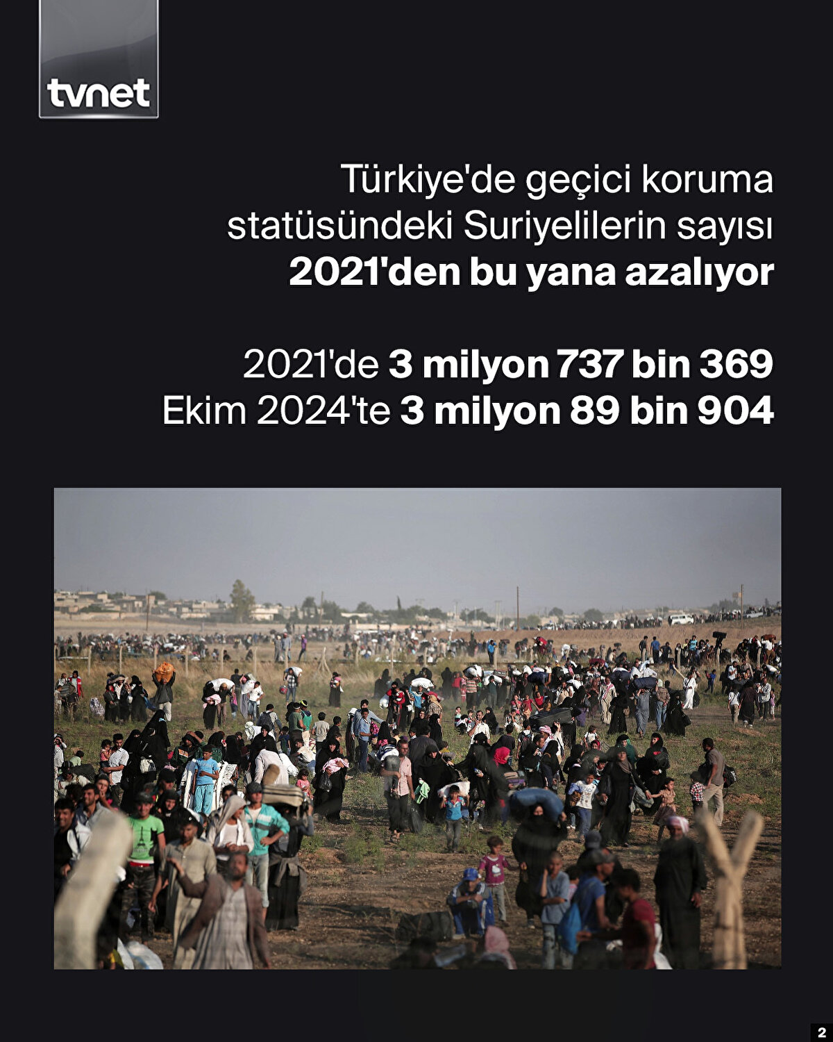 Türkiye'de geçici koruma statüsündeki Suriyelilerin sayısı 2021'den bu yana azalıyor. 2021'de 3 milyon 737 bin 369 kişi ile rekora ulaşan Suriyeli mültecilerin sayısı Ekim 2024'te 3 milyon 89 bin 904 düştü. 1 Aralık'a kadar tanınan ek sürede adres güncellemeyen Suriyelilerin kaydı da silinecek yani sayı daha da azalabilir. Yeni doğumlar da hesaba katıldığında bu ciddi bir düşüş. Uzmanlara göre ana faktör Suriye'ye geri dönüşler, ikincil bir faktör ise Avrupa'ya kaçak geçişler. Uzmanlar ise bu ciddi düşüşü Türkiye'nin göç politikaları değişikliklere bağlıyor. Peki nedir bu değişiklikler?