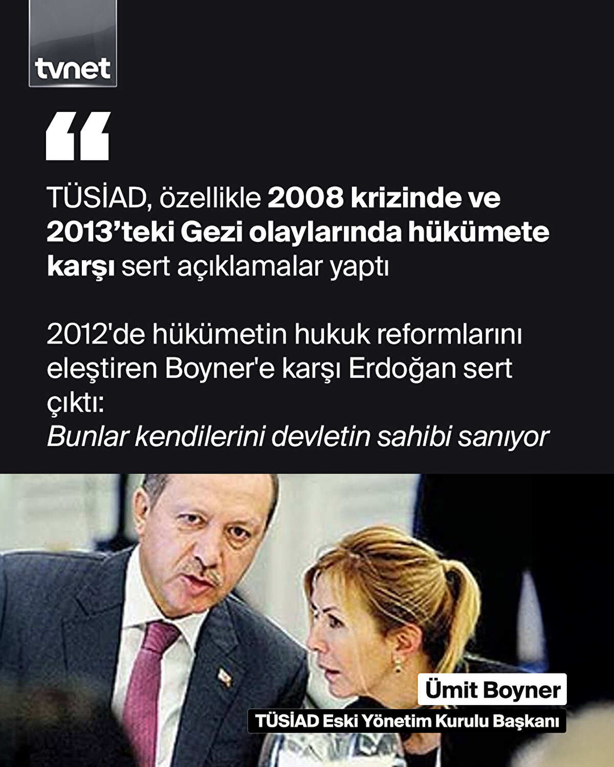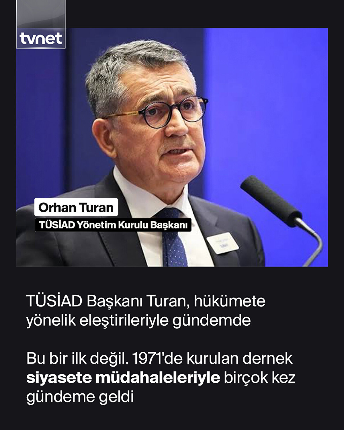 TÜSİAD Başkanı Turan, hükümete yönelik eleştirileriyle gündemde ancak bu bir ilk değil. 1971'de kurulan dernek siyasete müdahaleleriyle birçok kez gündeme geldi.