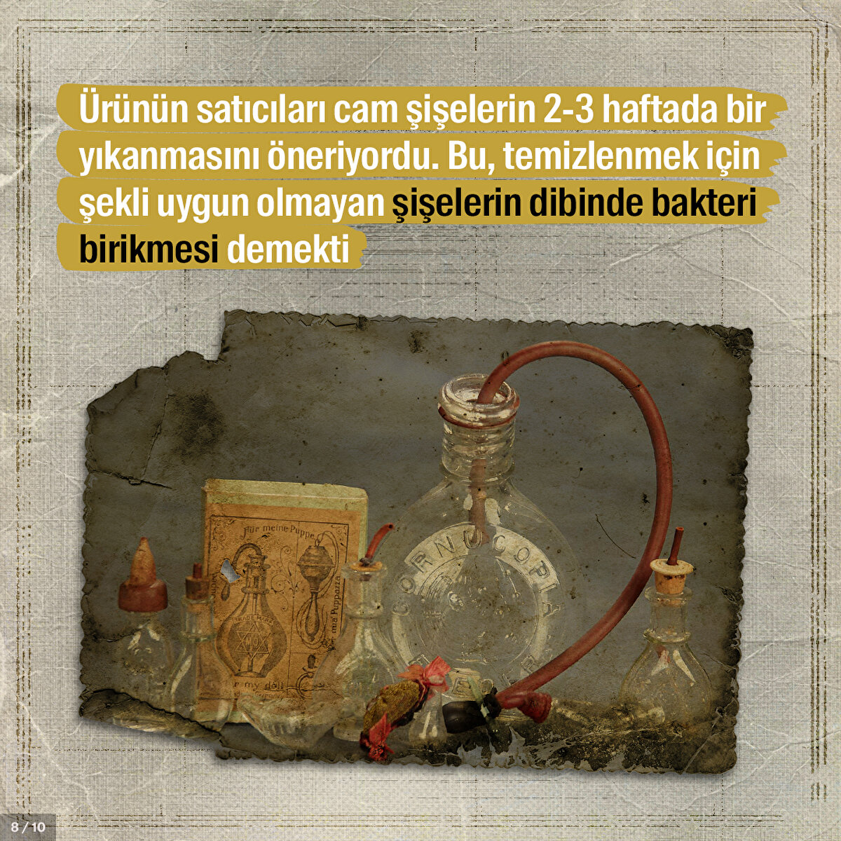 19. yüzyılda İngiltere'deki elit anneler, Kraliçe Viktorya'nın izinden giderek bebeklerini hiç emzirmedi. Aristokrasi sınıfının 'ideal kadın' imajı orta sınıflara da sirayet etmeye başladı. Bebeklerini emzirmeyen anneler için küçük cam şişeler piyasaya sürüldü. Plastik borusu bulunan cam şişelerin temizliği konusunda anneler yeterince bilgilendirilmedi hatta yanlış yönlendirildi. Böylesine kolaylık sağlayan bu cam şişeler için anneler bedel ödeyecek miydi?