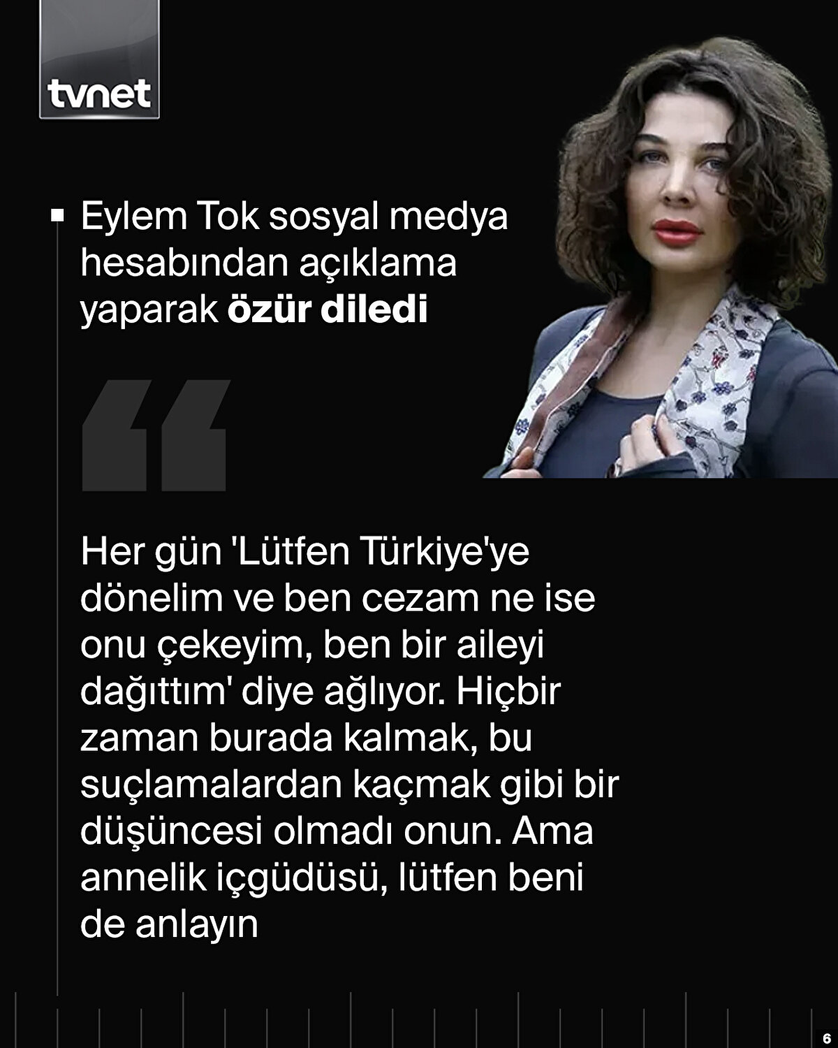 İstanbul Eyüpsultan'da lüks bir araçla emniyet şeridinde arızalanan ATV aracını kontrol eden gruba çarpan ve 1 kişinin ölümüne neden olan 17 yaşındaki ehliyetsiz sürücü, yazar olan annesi Eylem Tok'la birlikte Mısır'a kaçtı. Yazar Eylem Tok ve oğlu hakkında yakalama kararı çıkarıldı.